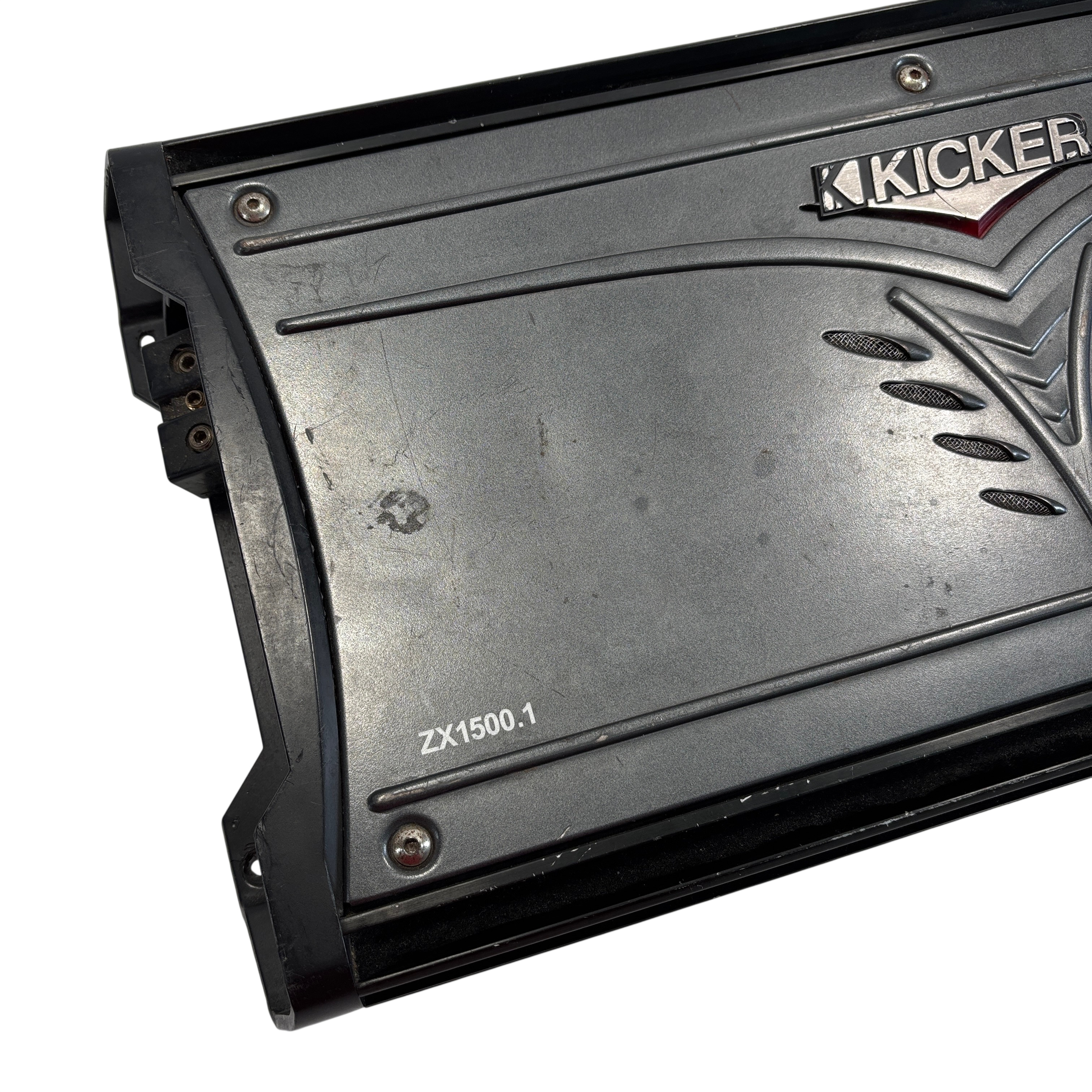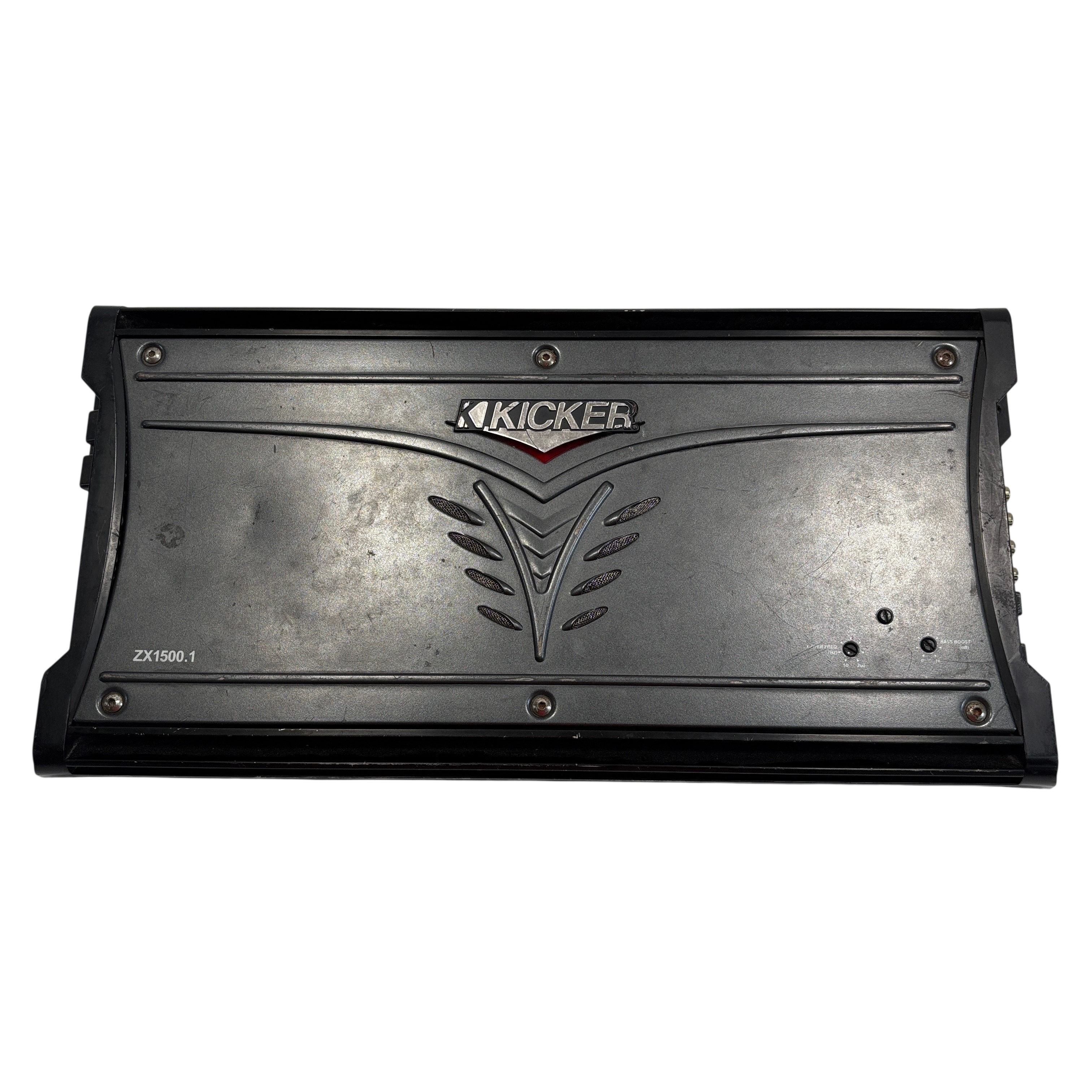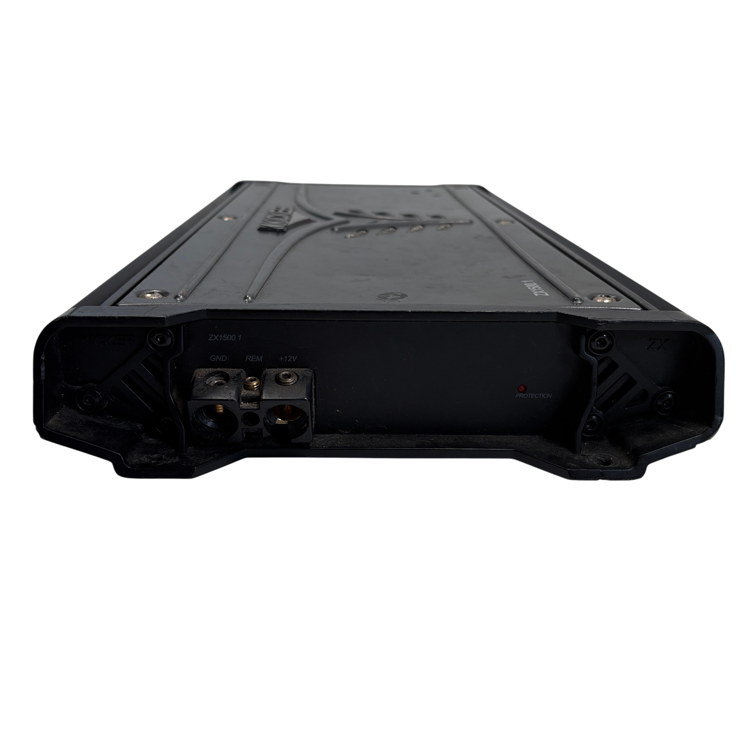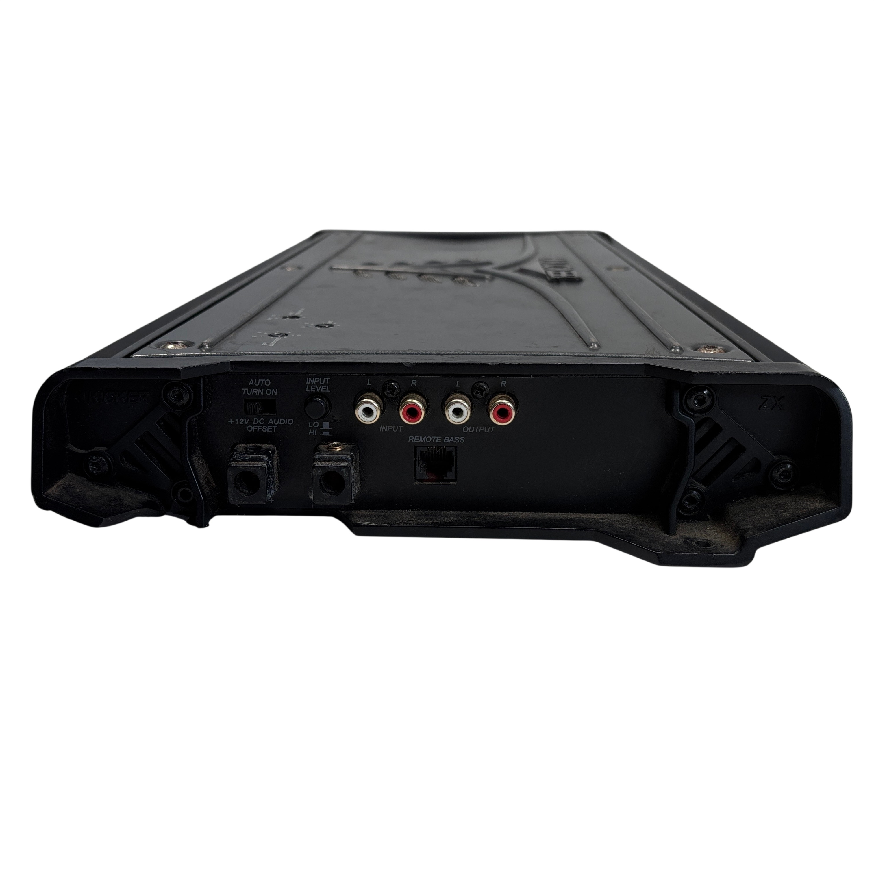 The Kicker ZX1500.1 Mono Car Audio Subwoofer Amplifier is a powerful car audio amplifier designed to deliver up to 1500 watts RMS of clean, high-quality bass output. Featuring RCA inputs and outputs, adjustable input level, and an auto turn-on function, this amplifier is ideal for driving subwoofers in car audio systems. The amplifier is housed in a durable black metal chassis, a solid choice for enhancing your vehicle's audio performance.