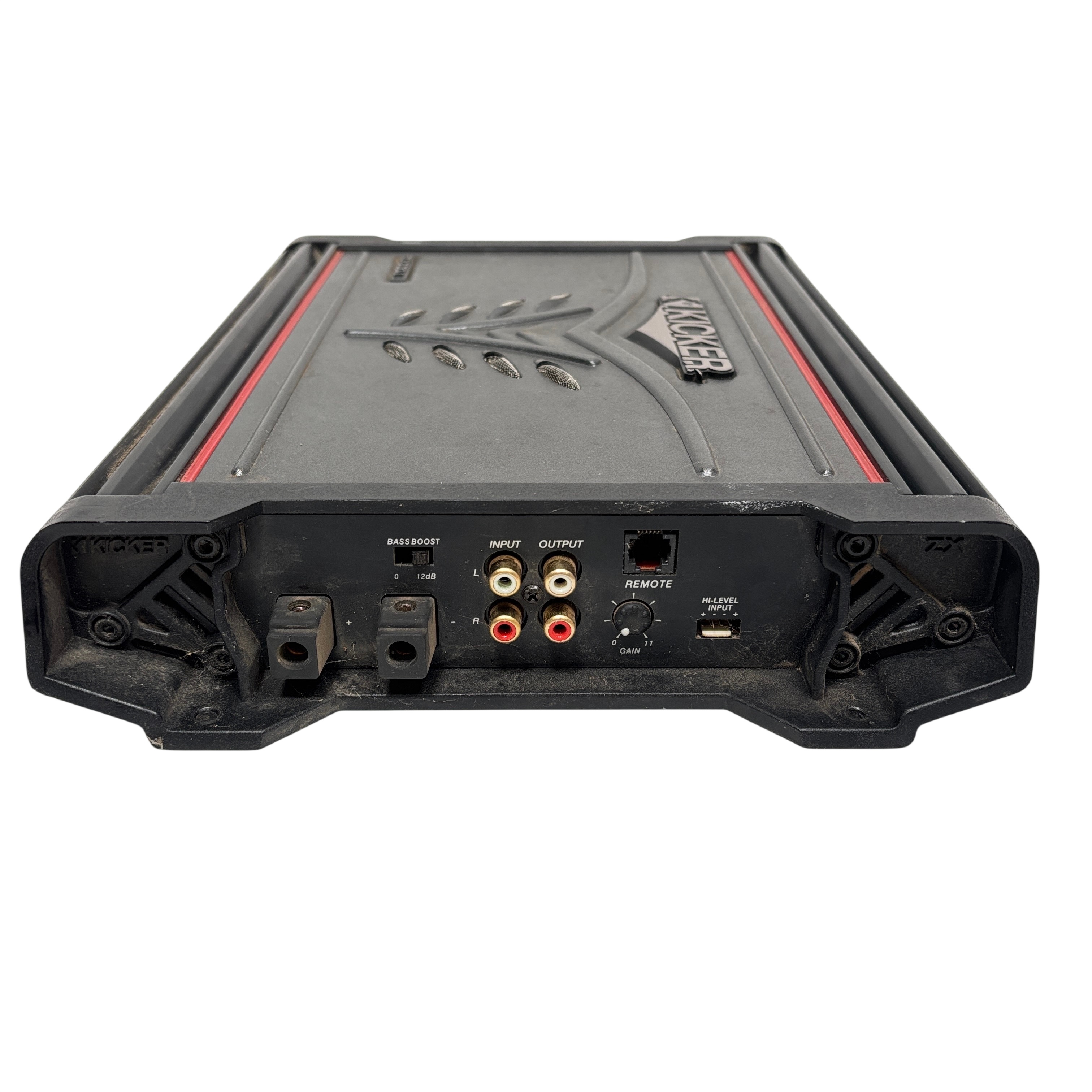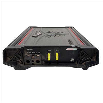 The Kicker ZX300.1 Amplifier is a powerful mono car audio amplifier delivering 300 watts RMS output, designed to enhance your vehicles sound system with deep, clear bass. Featuring both RCA and high-level inputs, it offers versatile connectivity options. The amplifier includes a bass boost control of up to 12 dB and remote gain control for easy tuning. Compact and durable, with dimensions approximately 1.5 inches high, 7.5 inches wide, and 10.5 inches long, this amplifier is ideal for car audio enthusiasts seeking quality sound and reliable performance.