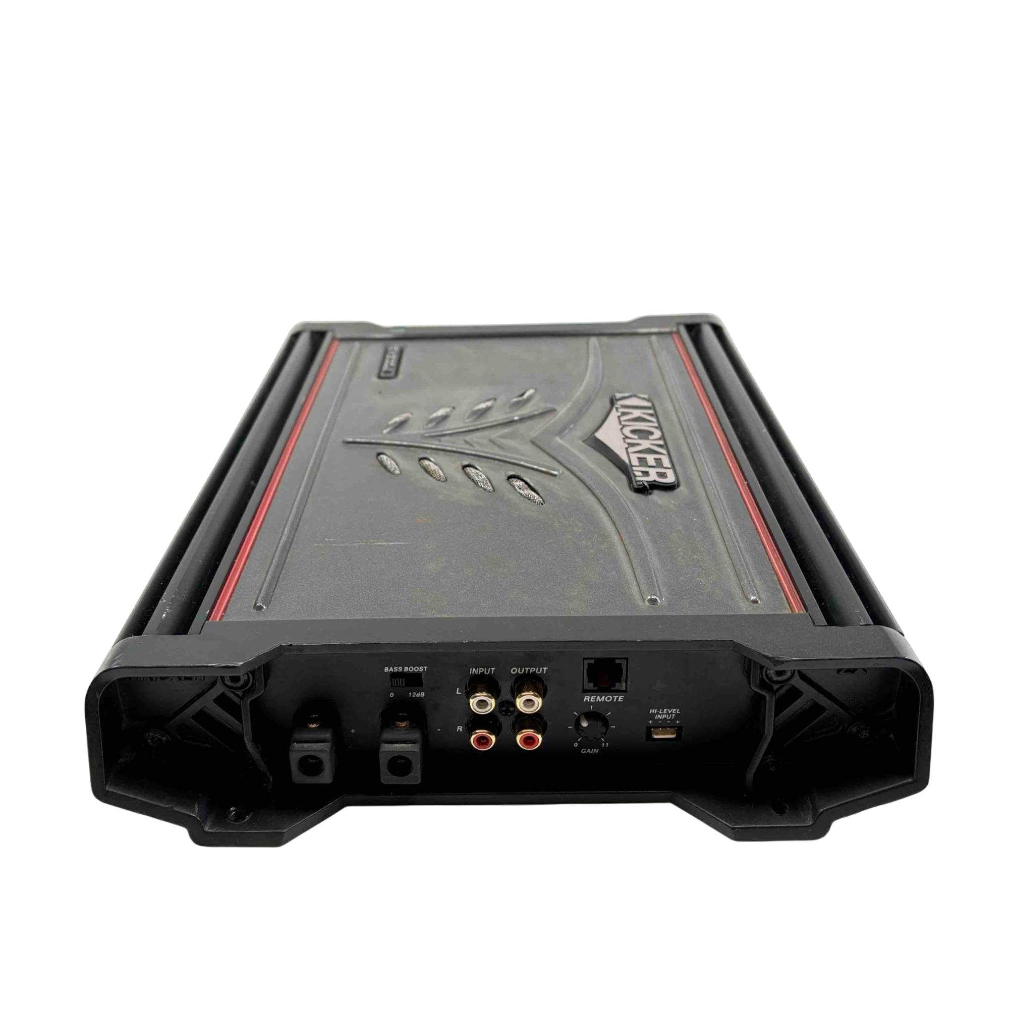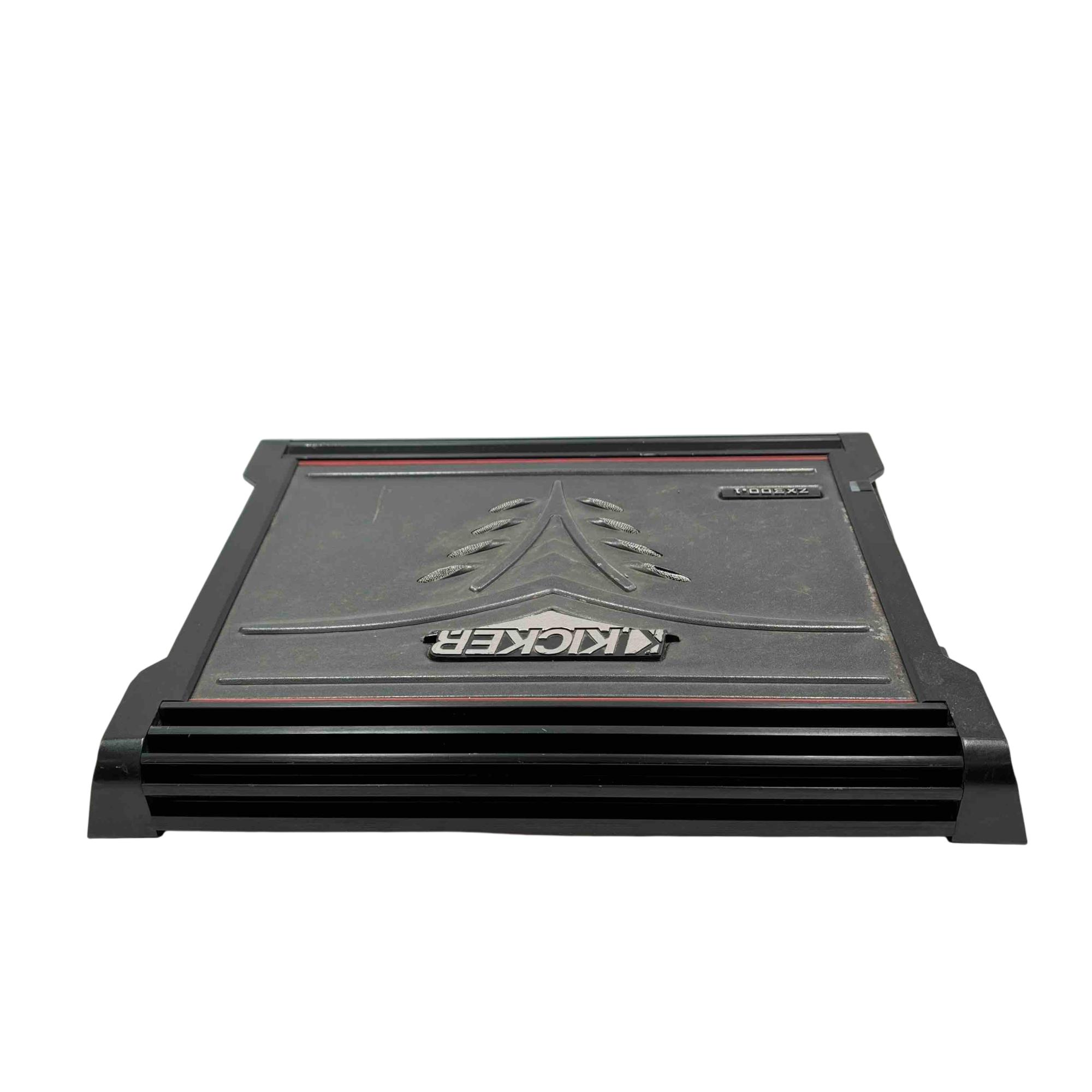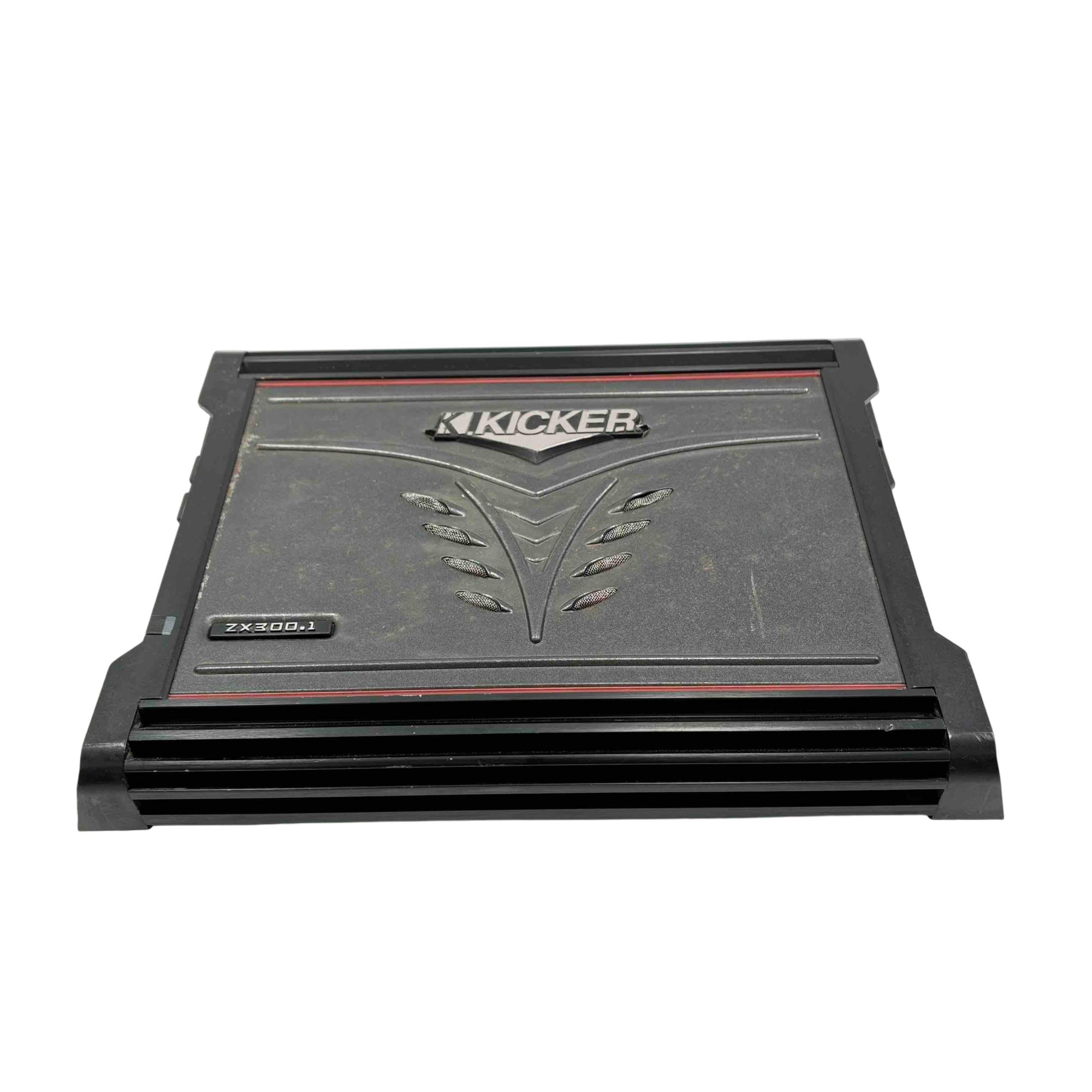 Enhance your car audio experience with the Kicker ZX300.1 Car Audio Amplifier. This sleek, black electronic device is designed to deliver powerful bass boost capabilities and optimal sound quality.