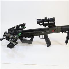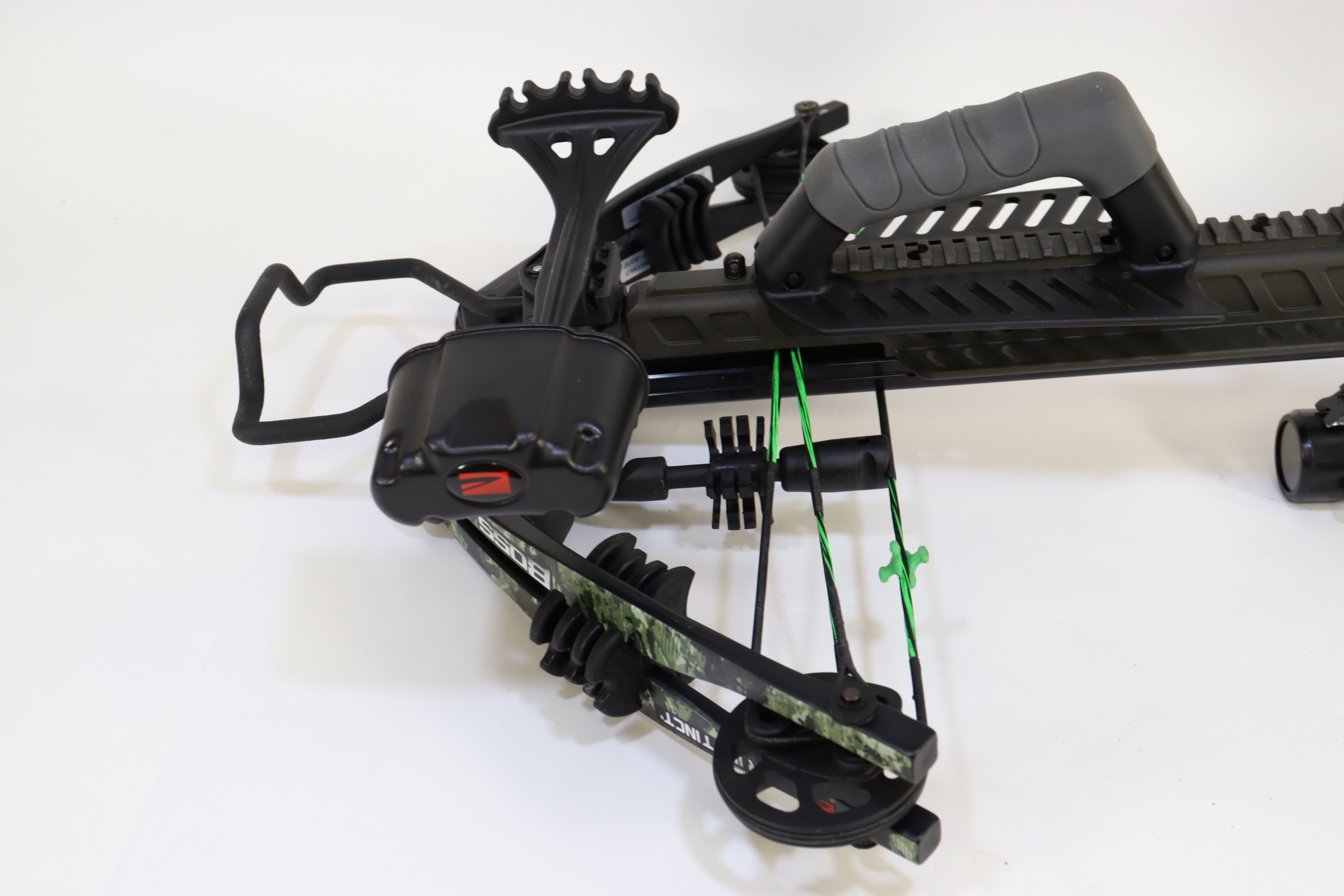 Killer Instinct Boss 405 Chaos AE Crossbow - Package - A deadly combination of high-octane fire power and agility, the BOSS hits targets hard at 405 feet per second. The 6-position AR-style buttstock shortens the crossbows overall length for smaller frame hunters but extends comfortably to fit a variety of medium to taller shooters as well. The dependability and tack driving accuracy Killer Instinct is known for is produced by a new Micro-Lite aluminum barrel that eliminates excess weight while still producing dead-on accuracy. The new X-Lok adjustable foregrip and easy-to-handle narrow frame produces a balanced and compact shooting machine. Finished off with a noise reducing integrated Dead Silent Kit, the Boss 405 is sure to produce deadly results.