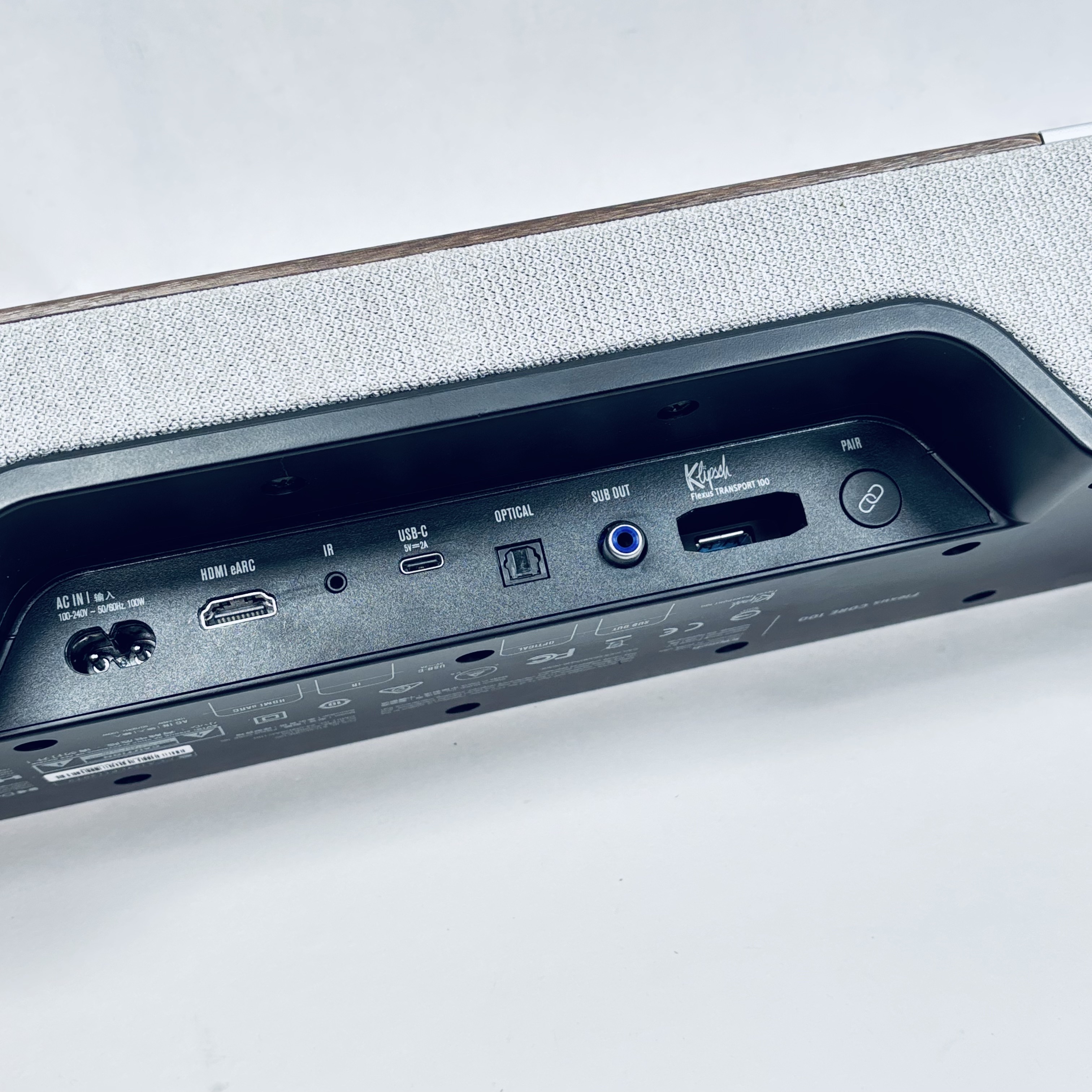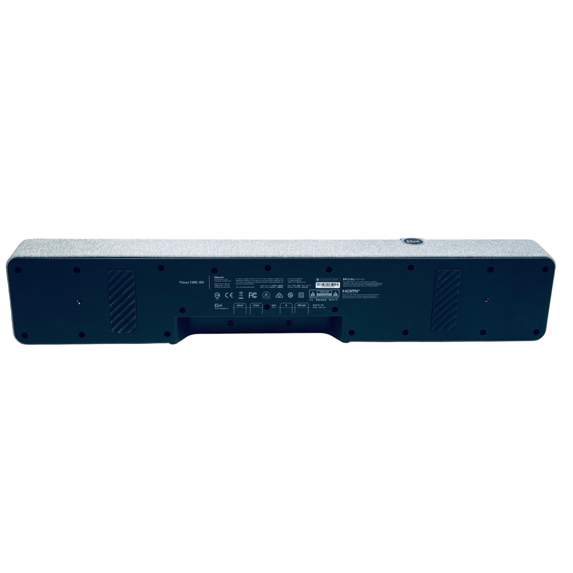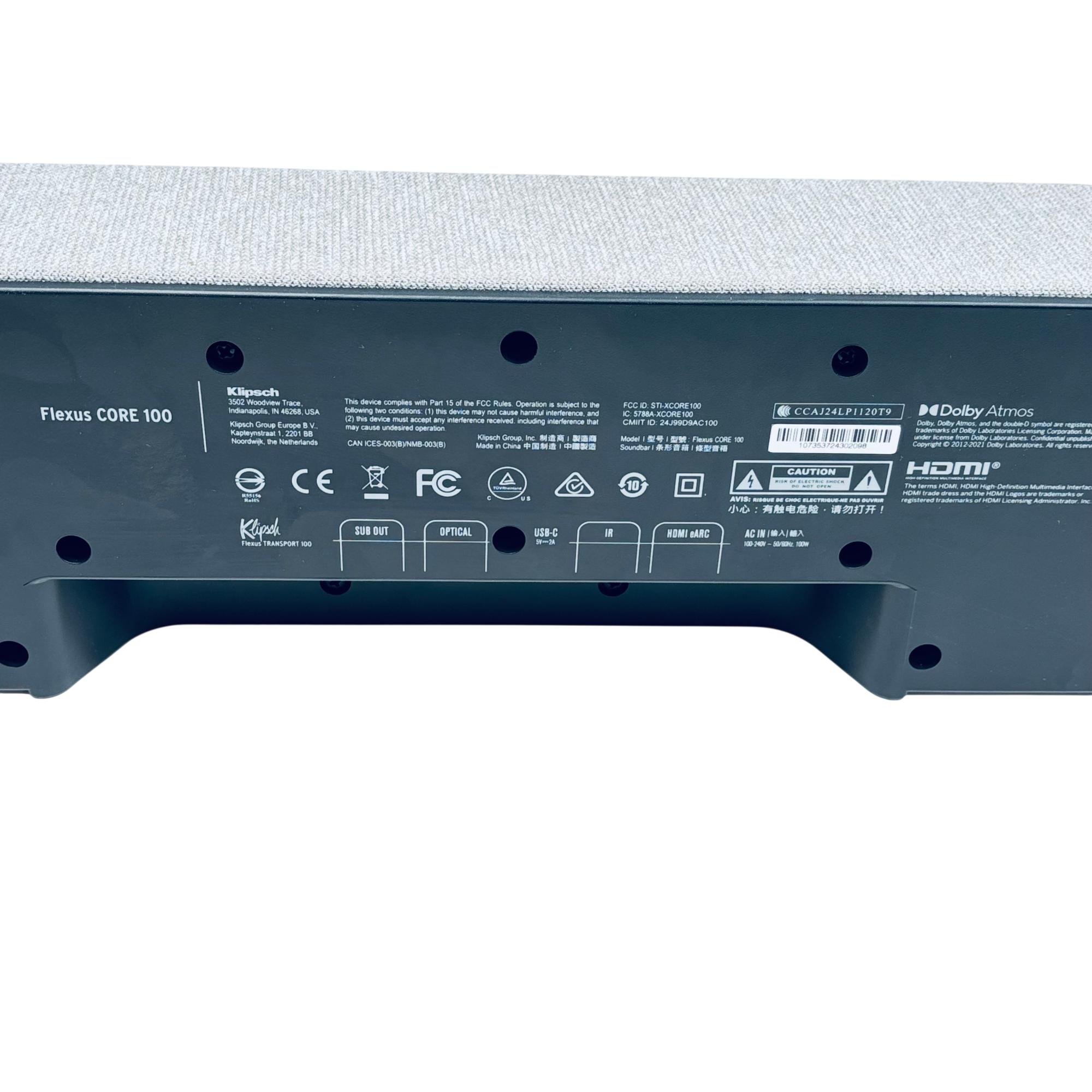 Klipsch Flexus CORE 100 2.1-Channel Dolby Atmos Soundbar (Walnut, No Remote) delivers immersive audio with rich, detailed sound enhanced by Dolby Atmos technology. Featuring a sleek rectangular design with a walnut wooden finish and a black-and-white speaker grille, this soundbar seamlessly blends modern aesthetics with premium acoustic performance. Ideal for elevating home entertainment setups with clear dialogue and dynamic bass response.