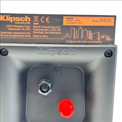 Klipsch R-52C Center Channel Speaker delivers clear, dynamic sound designed to enhance home theater systems with exceptional dialogue clarity and immersive audio performance. Featuring a sleek black rectangular design with a durable enclosure, this speaker integrates seamlessly into various entertainment setups, providing rich midrange tones and detailed sound reproduction.