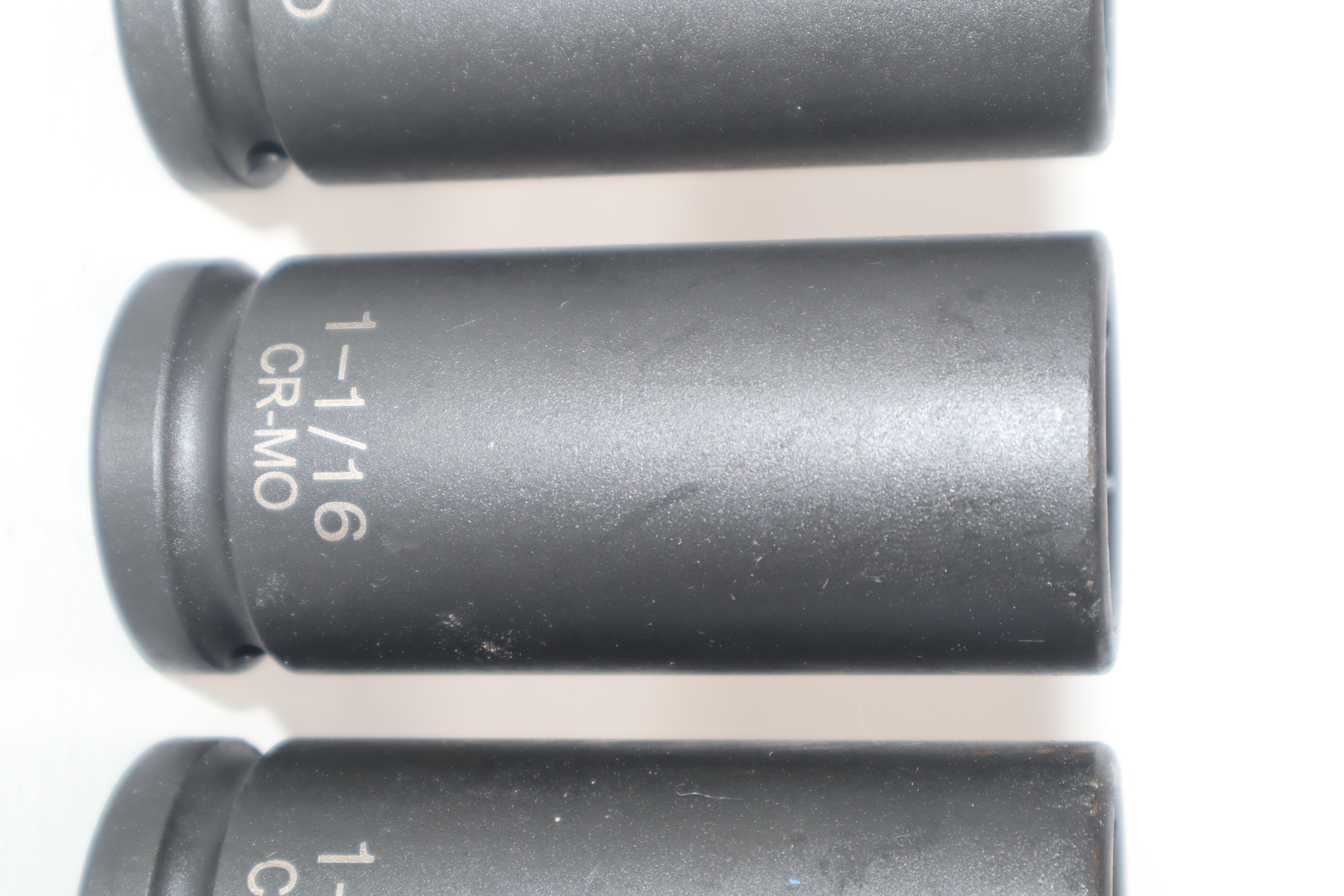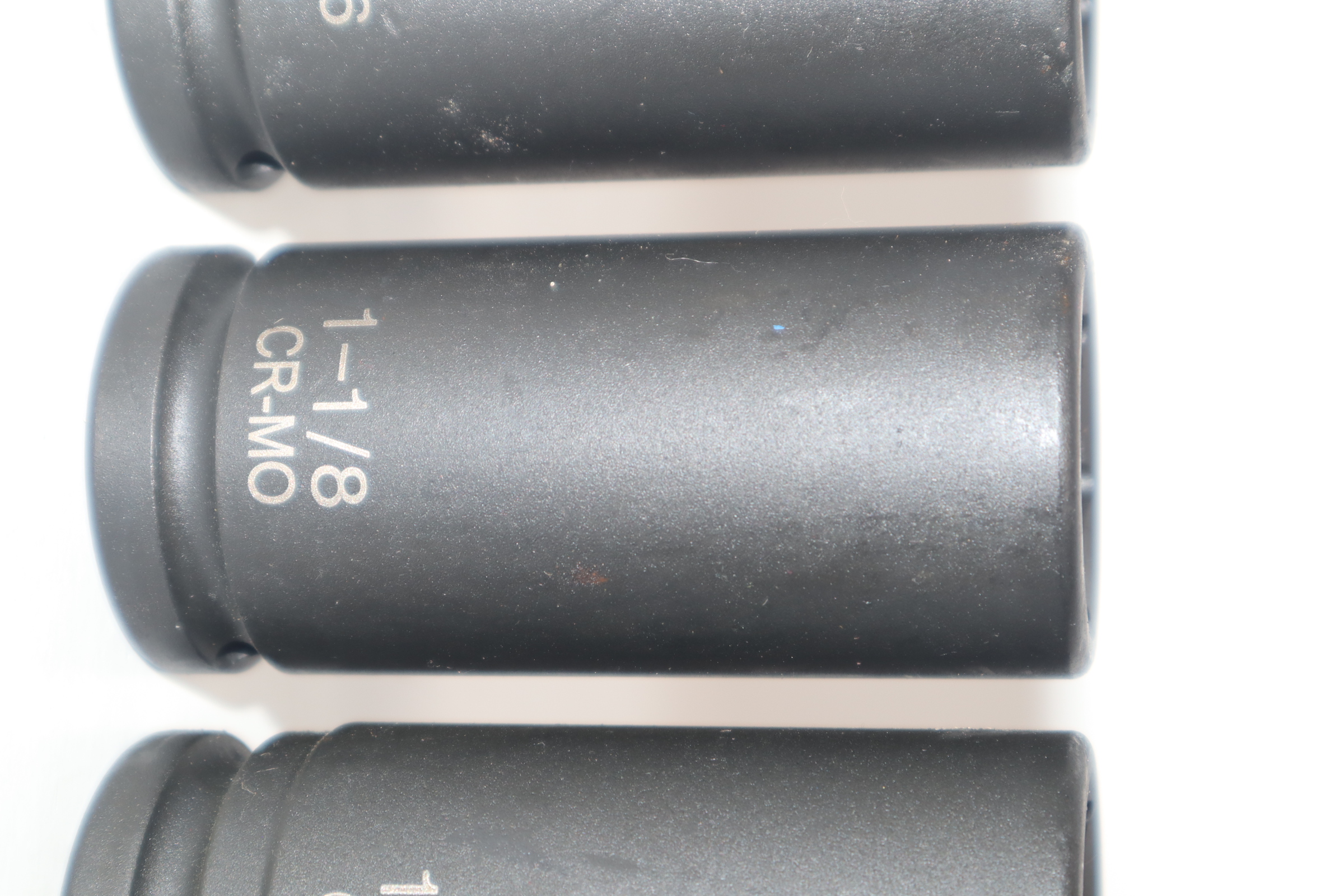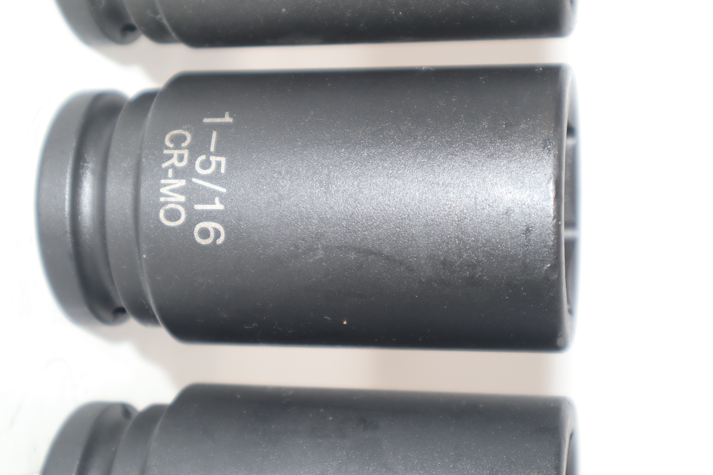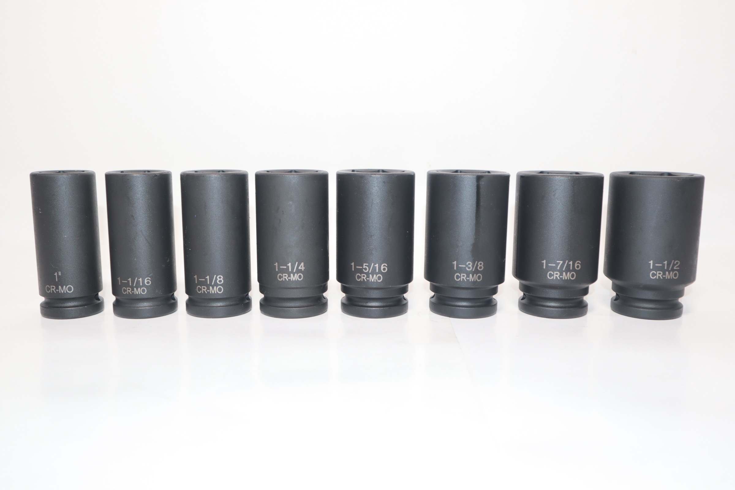 The Klutch 8-Pc. 3/4in. Drive Deep Impact Socket Set is constructed of rugged chrome molybdenum steel alloy for long-lasting durability. Drive Size: 3/4 in, Drive Size (SAE): 3/4 in, Material: Chrome Molybdenum, Measurement Standard: Standard (SAE), Pieces (qty.): 8, Points (qty.): 6, Storage Type: Plastic Case Sizes: 1in., 1 1/16in., 1 1/8in., 1 1/4in., 1 5/16in., 1 3/8in., 1 7/16in., 1 1/2in. Plastic carrying case.