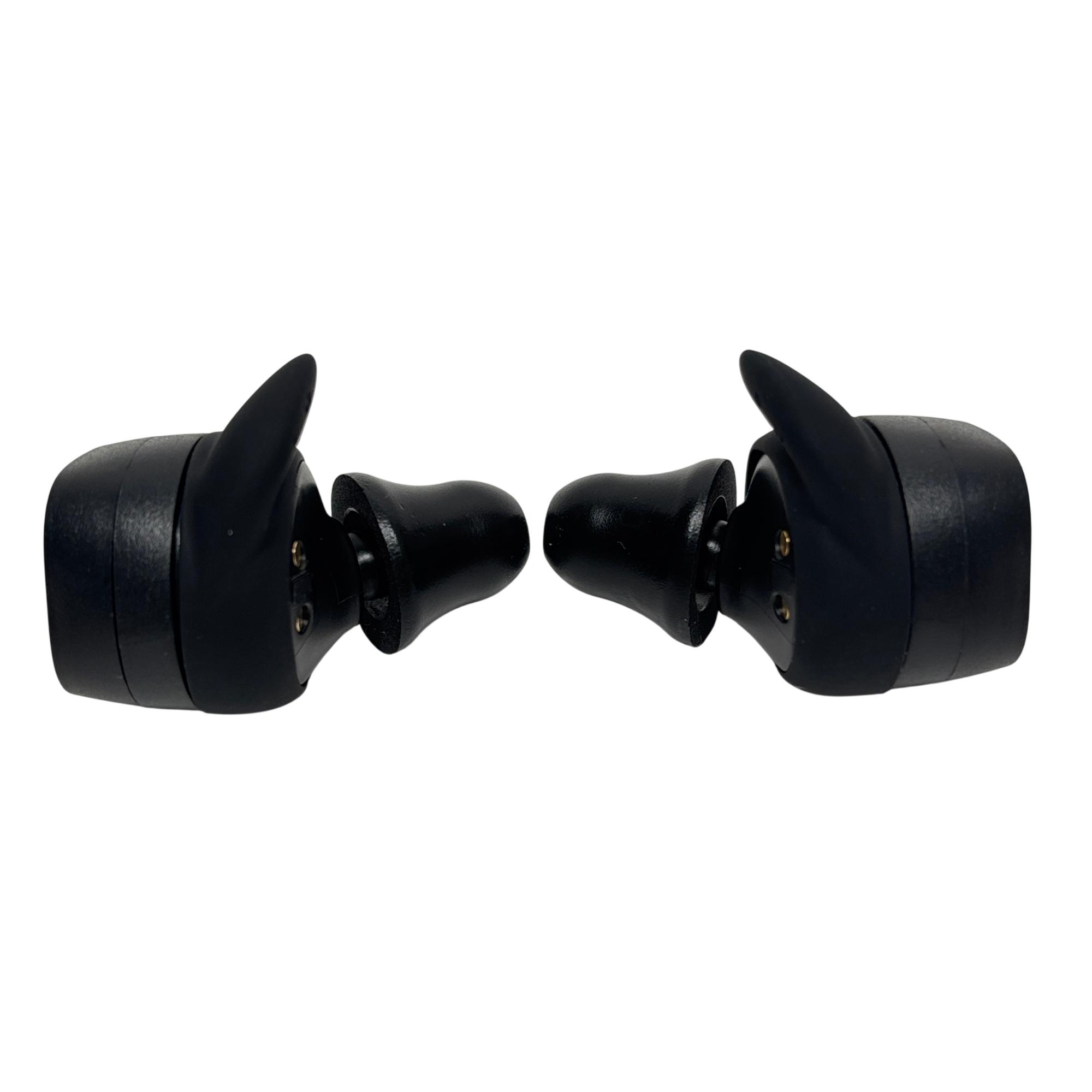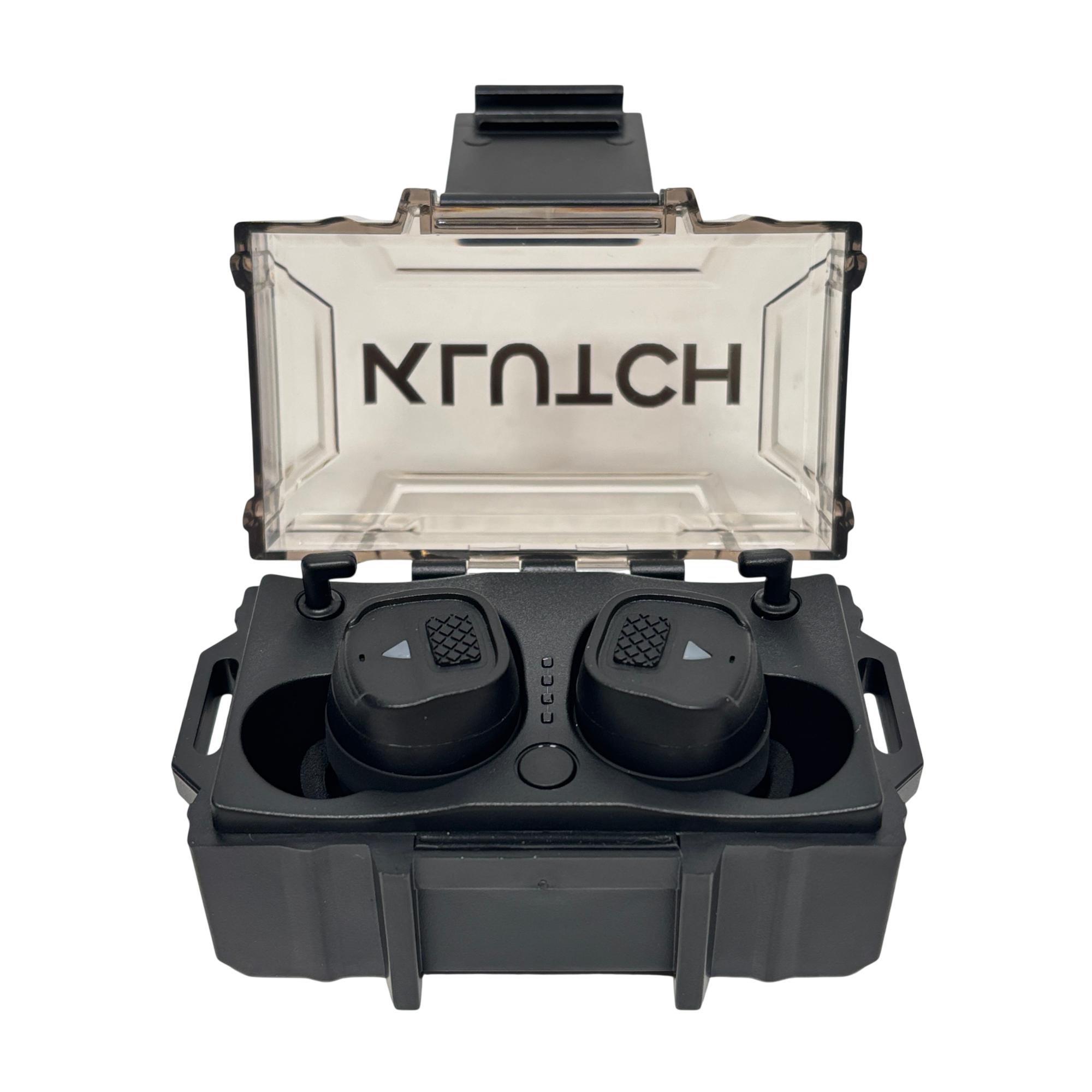 Klutch M20T Pro Noise Cancelling Bluetooth Earbuds feature advanced noise reduction technology designed to protect hearing in loud environments while delivering clear wireless audio. These black earbuds offer a secure in-ear fit with intuitive blue-button controls and come with a durable charging case that ensures convenience and portability for everyday use.