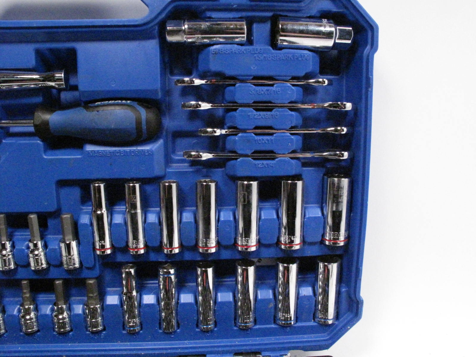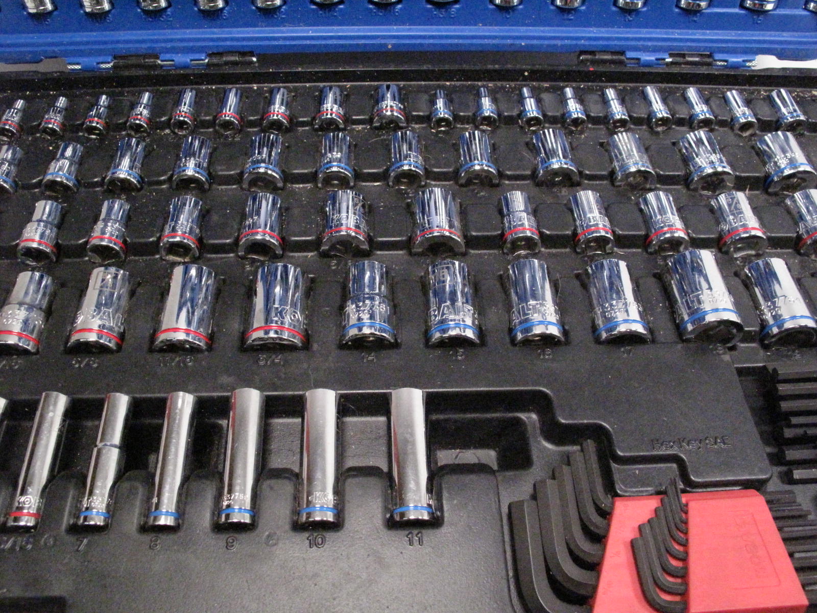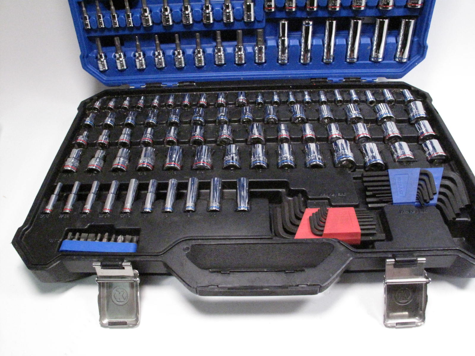 This 154 piece set contains 86 shallow and deep, metric and SAE sockets, 3 ratchets, 2 extensions, a magnetic bit driver, 10 insert bits, 8 12-point combination wrenches, and 28 hex keys Newly Improved Precise Pro90 Ratchet Our 90-tooth gear delivers a 4° precision swing that offers improved mobility in tight work spaces