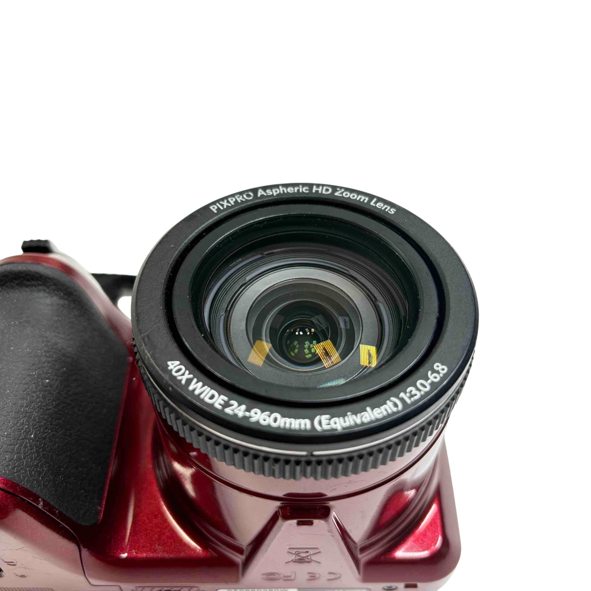 Unleash your photography potential with the Kodak PIXPRO AZ405 Digital Camera. Featuring a stunning 20MP resolution and an impressive 40X wide 24-960mm Aspheric HD Zoom Lens, this sleek red camera is perfect for capturing vibrant, detailed photos from any distance. Whether youre a beginner or an experienced photographer, the AZ405 combines advanced functionality with user-friendly operation, ensuring every shot is a masterpiece.