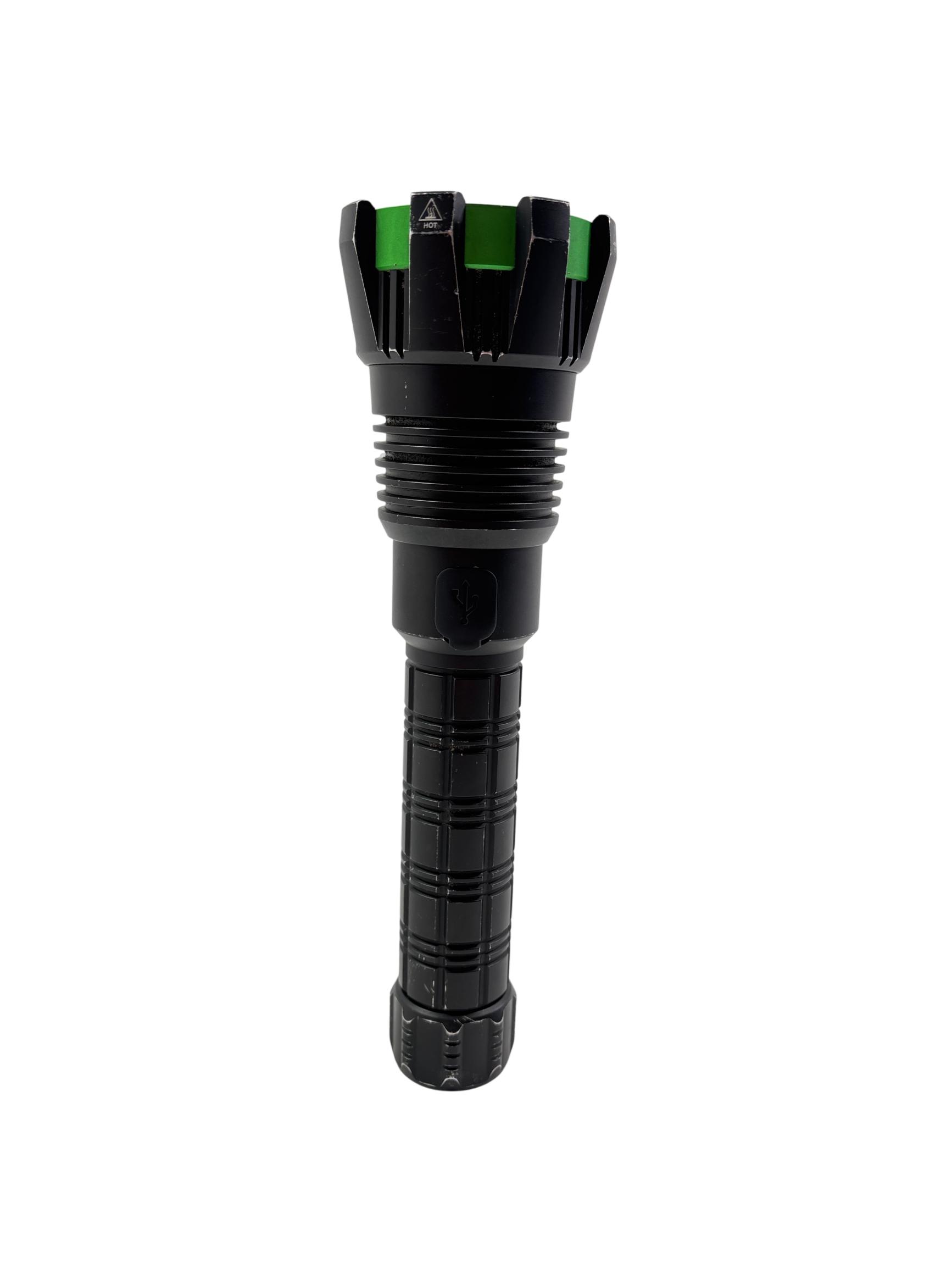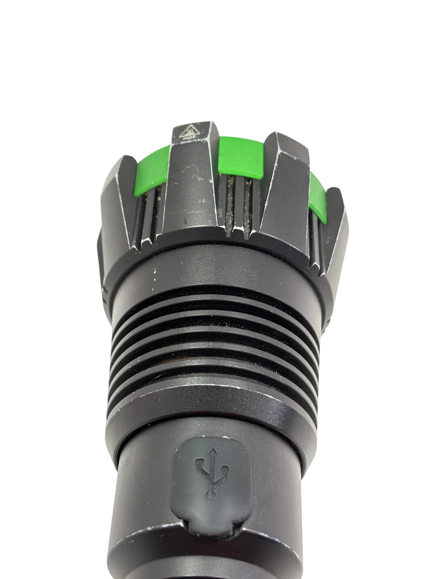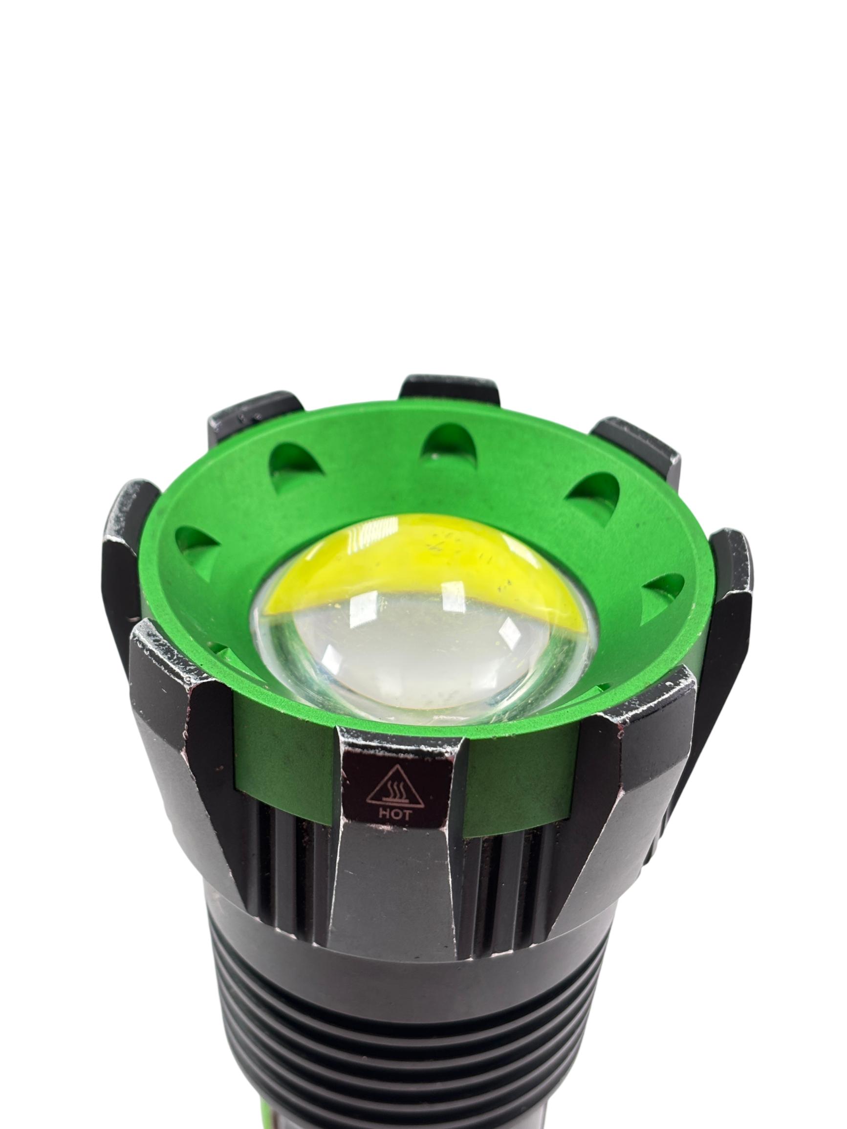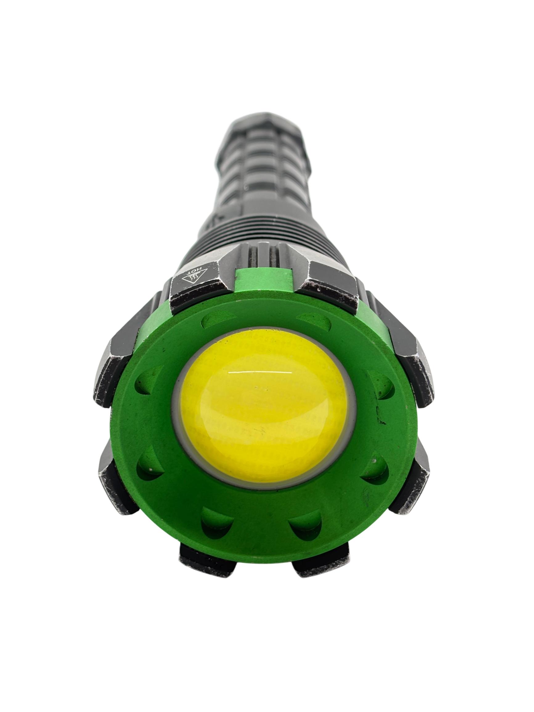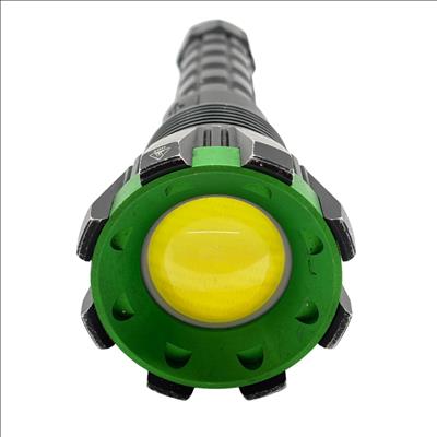 Kodiak Kolossus 15000 Lumen Rechargeable Tactical Flashlight delivers an exceptionally powerful beam with its high-output LED, designed for tactical, outdoor, and emergency use. Featuring a durable black and green polymer body, this flashlight offers superior grip and impact resistance, making it reliable in demanding conditions.