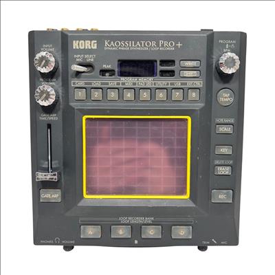Korg Kaossilator Pro+ Dynamic Phrase Synthesizer / Loop Recorder is a versatile electronic music device featuring a responsive touchpad interface, multiple programmable effects, and real-time phrase sequencing capabilities. It offers dynamic tempo control, a range of scale and key settings, and integrated loop recording functions, making it ideal for live performance and electronic music production.