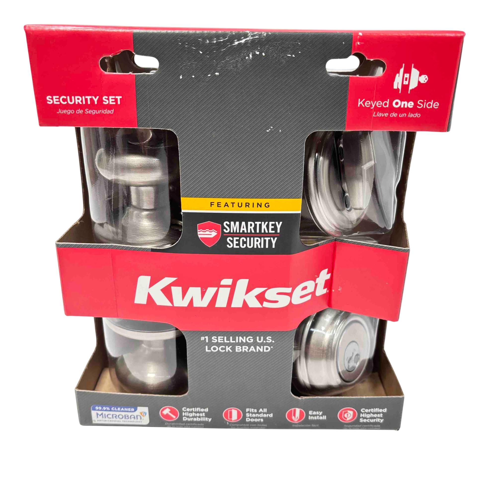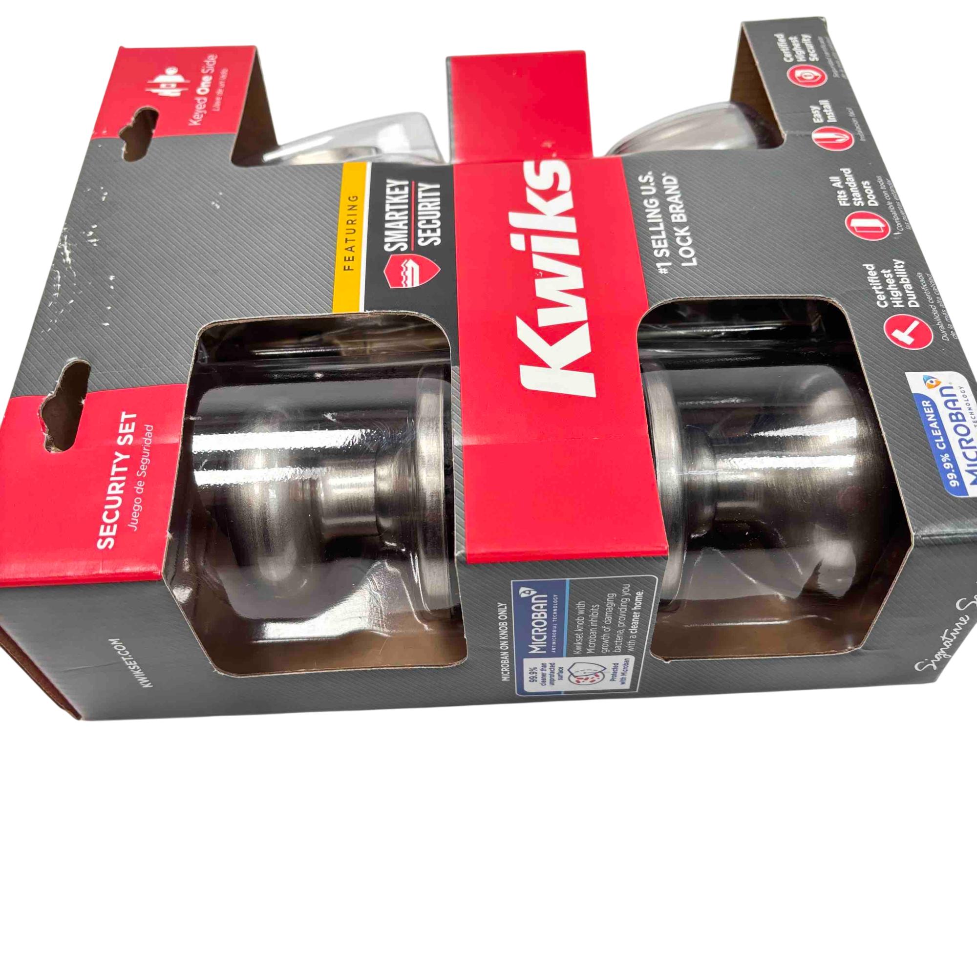 Enhance your home security effortlessly with the Kwikset SmartKey Security Handleset. Designed with the advanced SmartKey Security, it offers superior protection against key bumping and other advanced break-in techniques. Featuring Microban antimicrobial technology, it keeps your home up to 99.9% cleaner than unprotected surfaces. This easy-to-install handleset, in a stylish Satin Nickel finish, is the perfect combination of security and convenience.