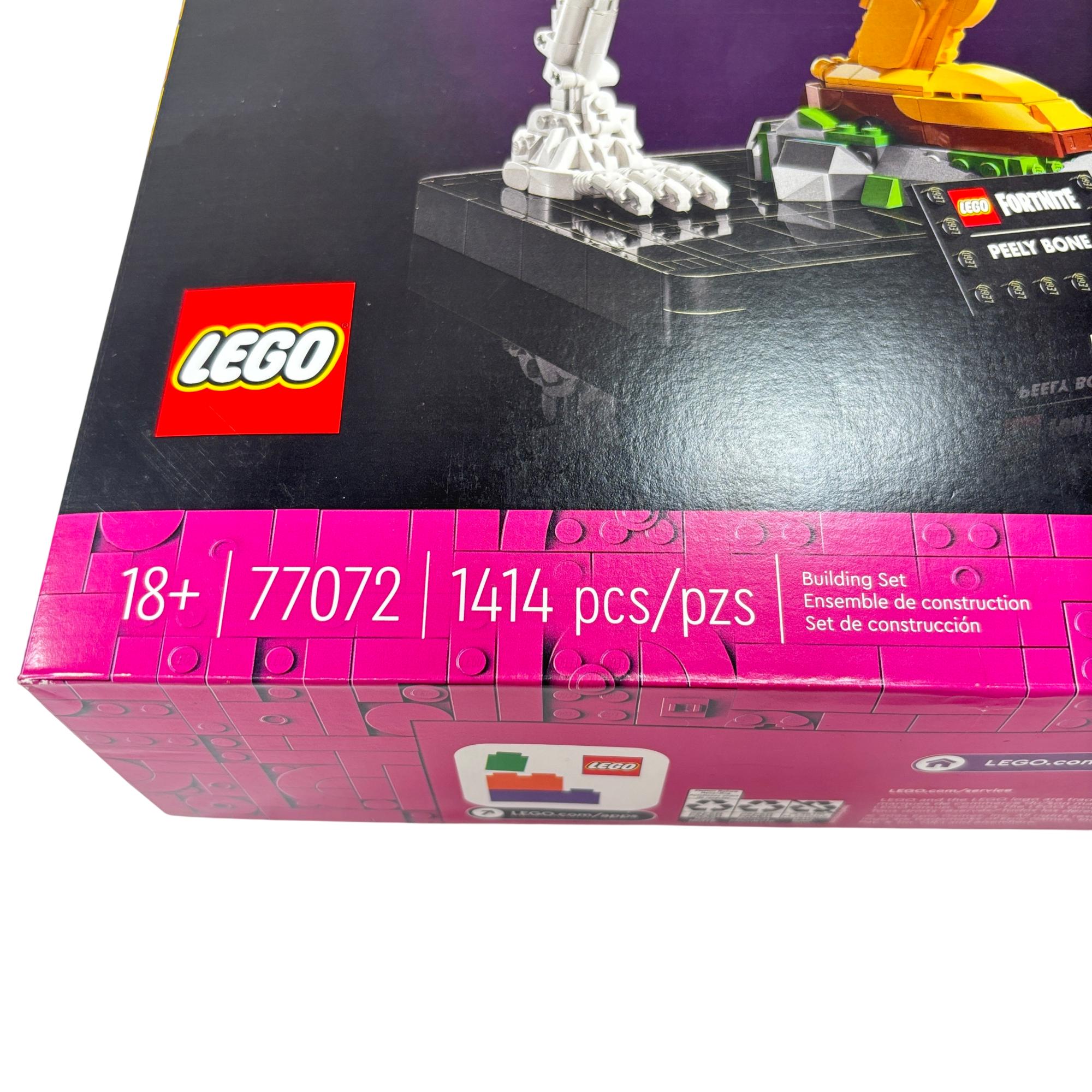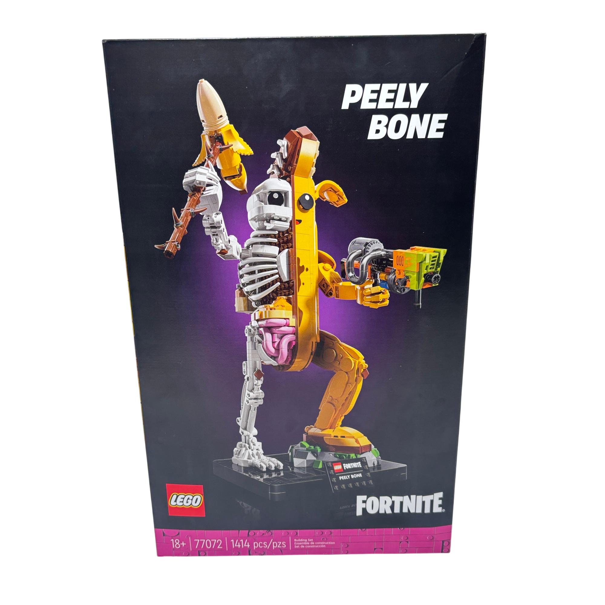 LEGO Fortnite Peely Bone Collectible Building Set (77072) features an intricate design with 1414 pieces that captures the iconic Fortnite character Peely in a unique skeletal form. This highly detailed set offers a challenging and engaging building experience, perfect for adult collectors and fans of the Fortnite universe. Crafted with premium LEGO elements, it blends creative construction with popular gaming culture for a standout display piece.