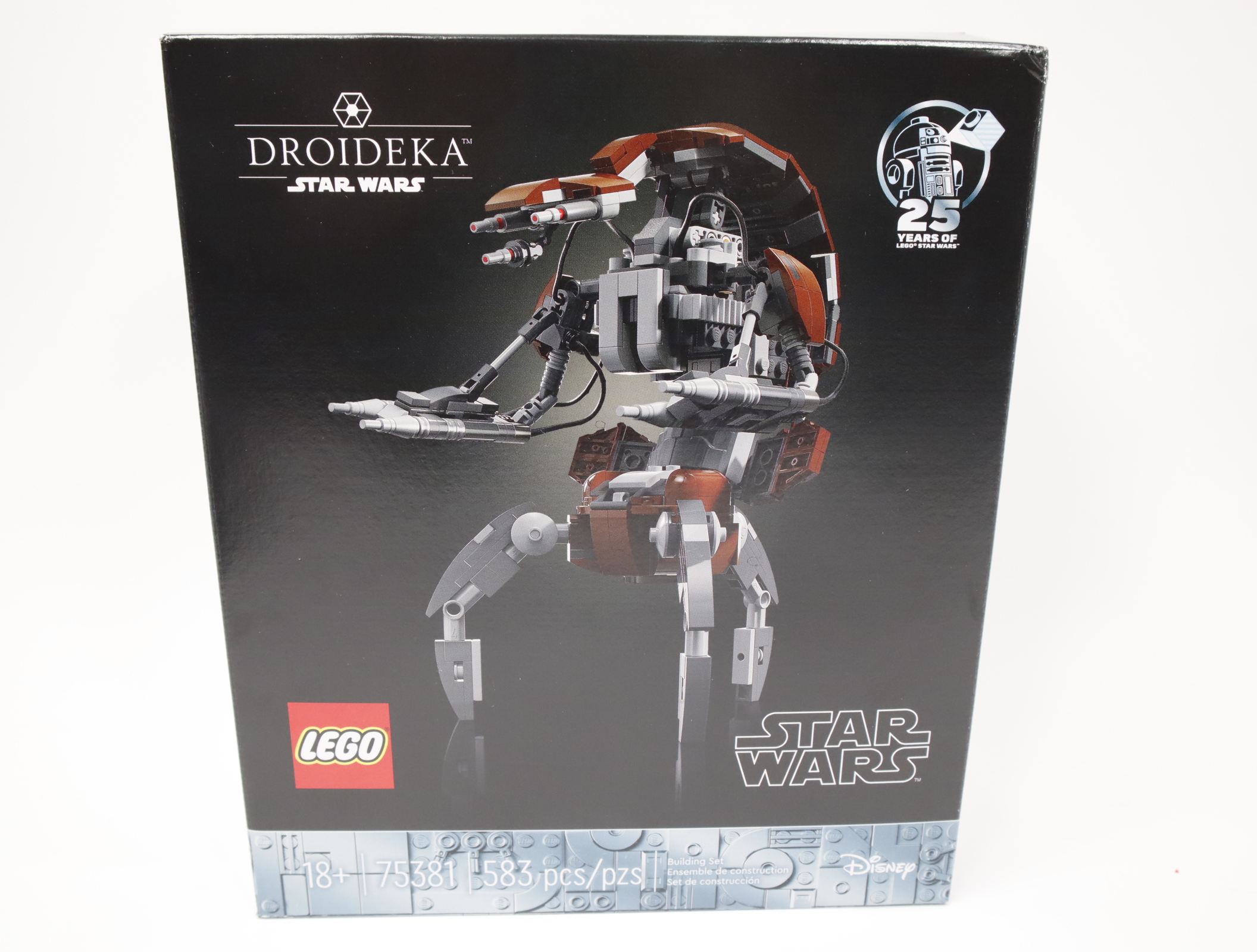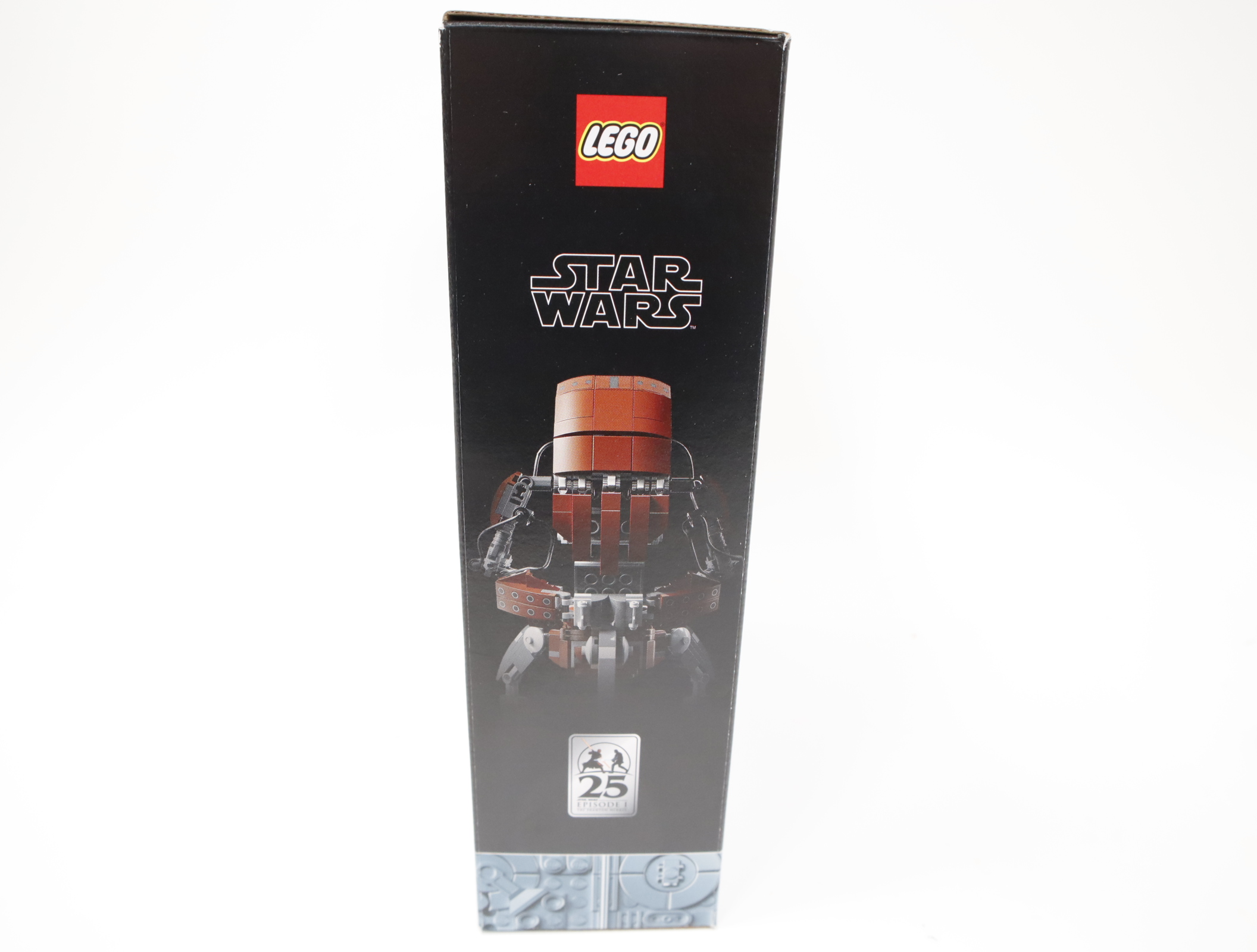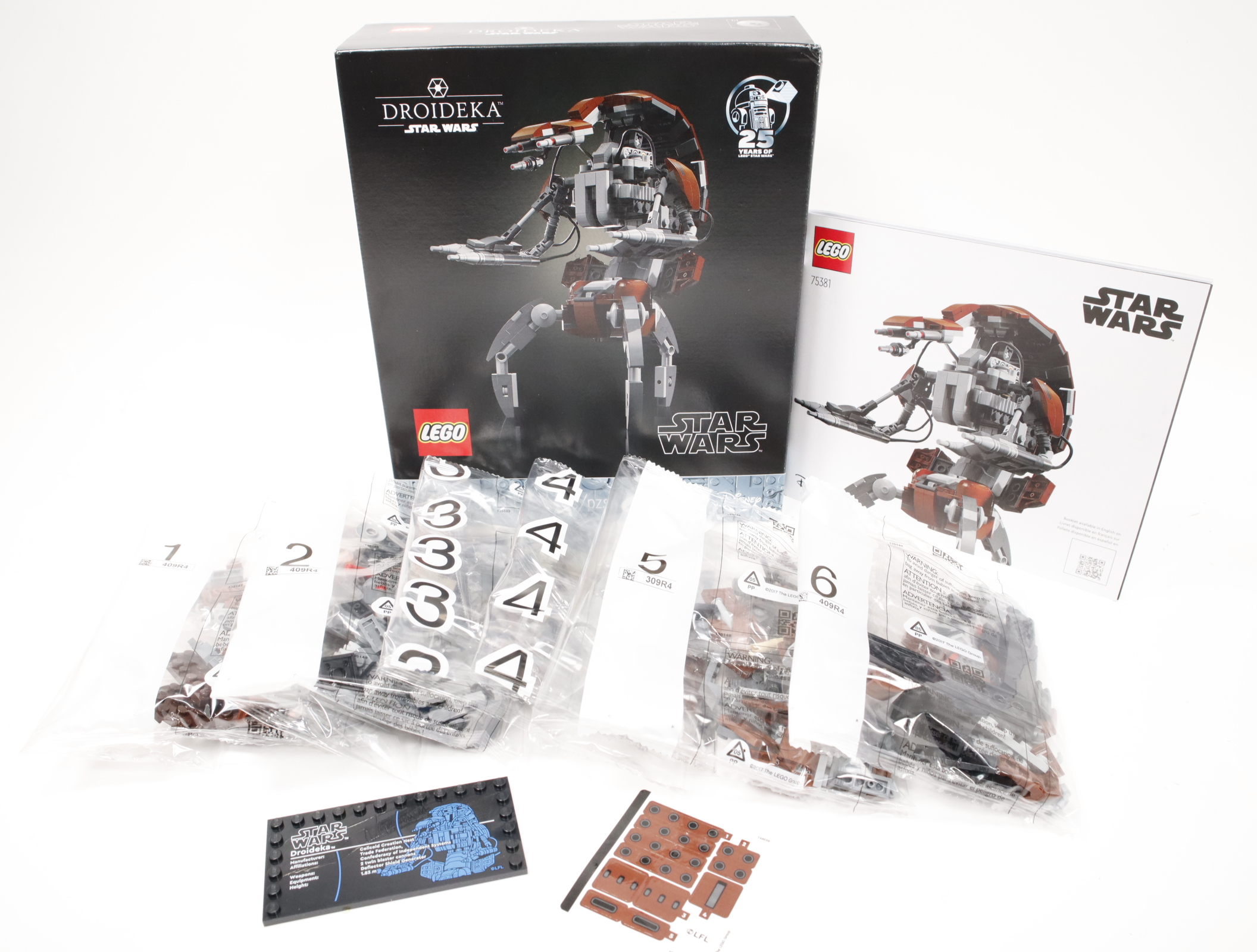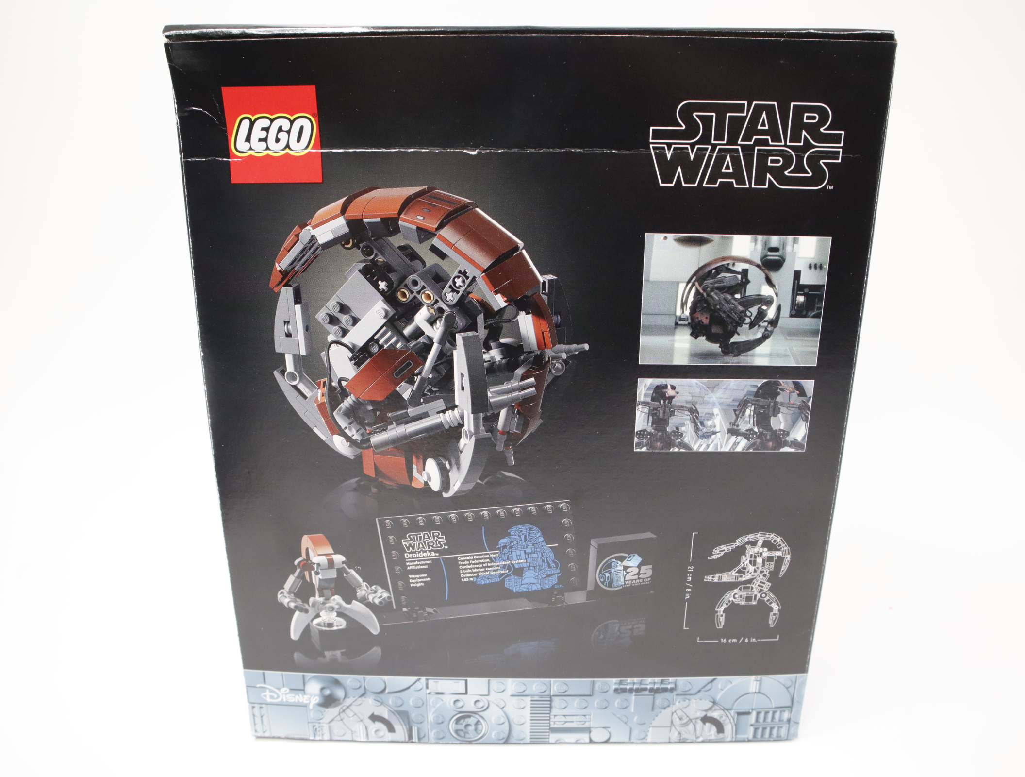 This unique set for build and display includes a stand with space for the small LEGO Droideka figure, a Droideka information plaque and a LEGO Star Wars 25th anniversary brick