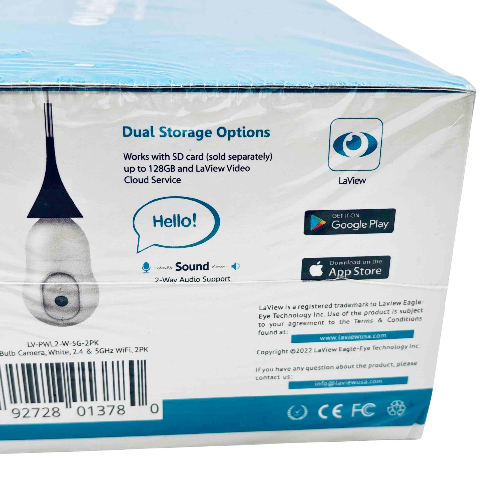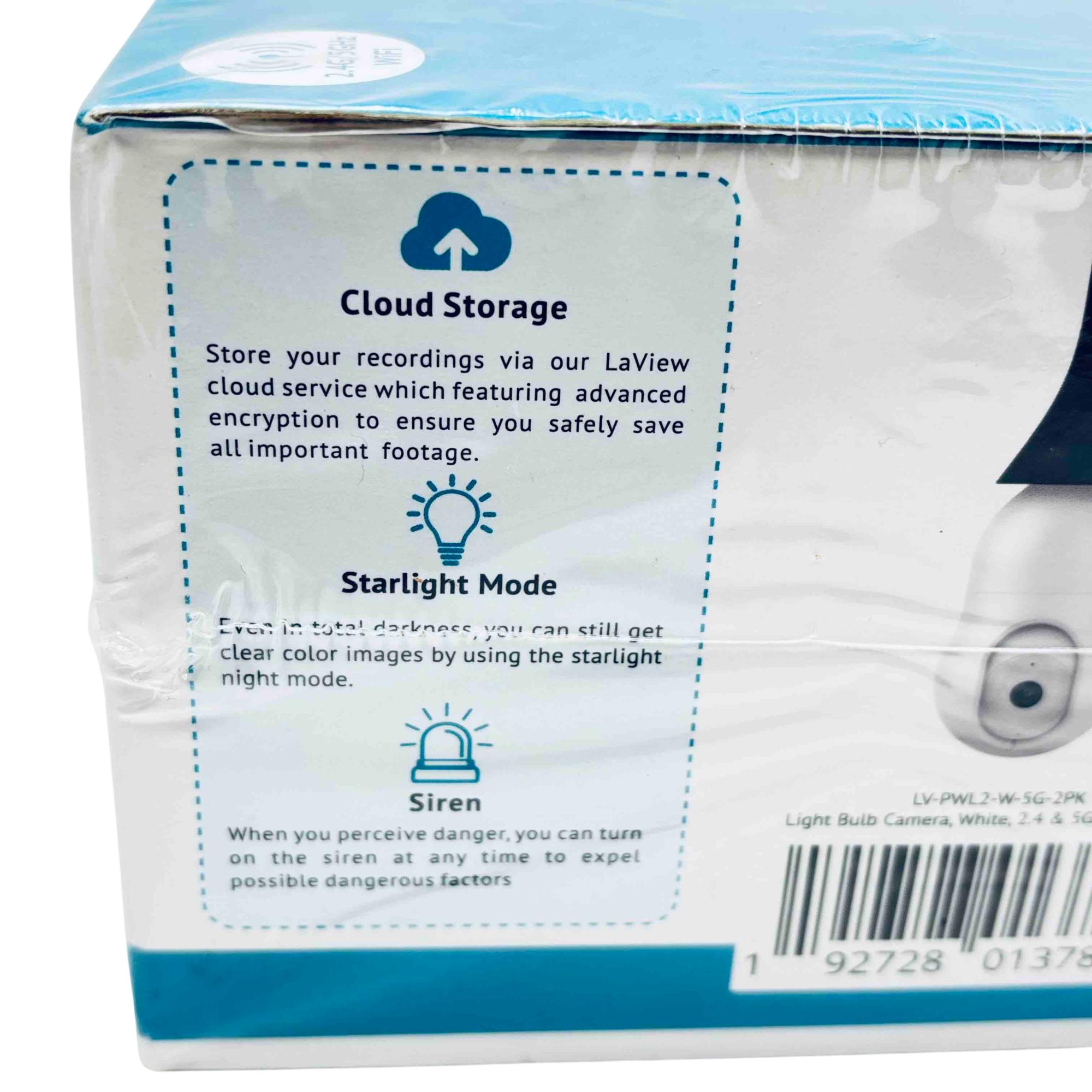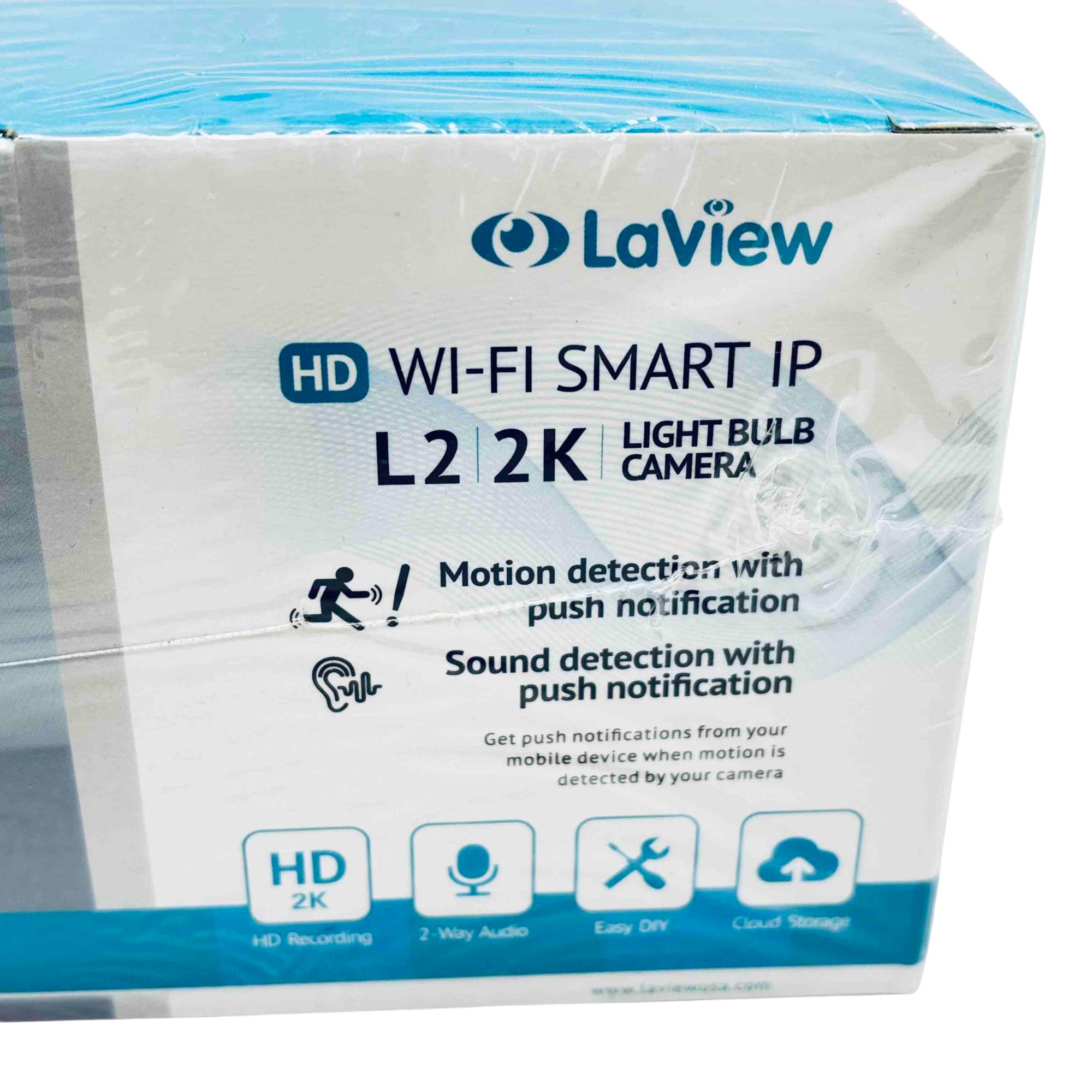 Upgrade your home security with the LaView HD Wi-Fi Smart IP L2 2K Light Bulb Camera. This smart surveillance device offers 2K HD video, motion and sound detection with instant push notifications, two-way audio, and easy installation that fits directly into a standard light socket. Enjoy cloud storage options, starlight night vision, and dual-band Wi-Fi connectivity for seamless, smart home protection.
