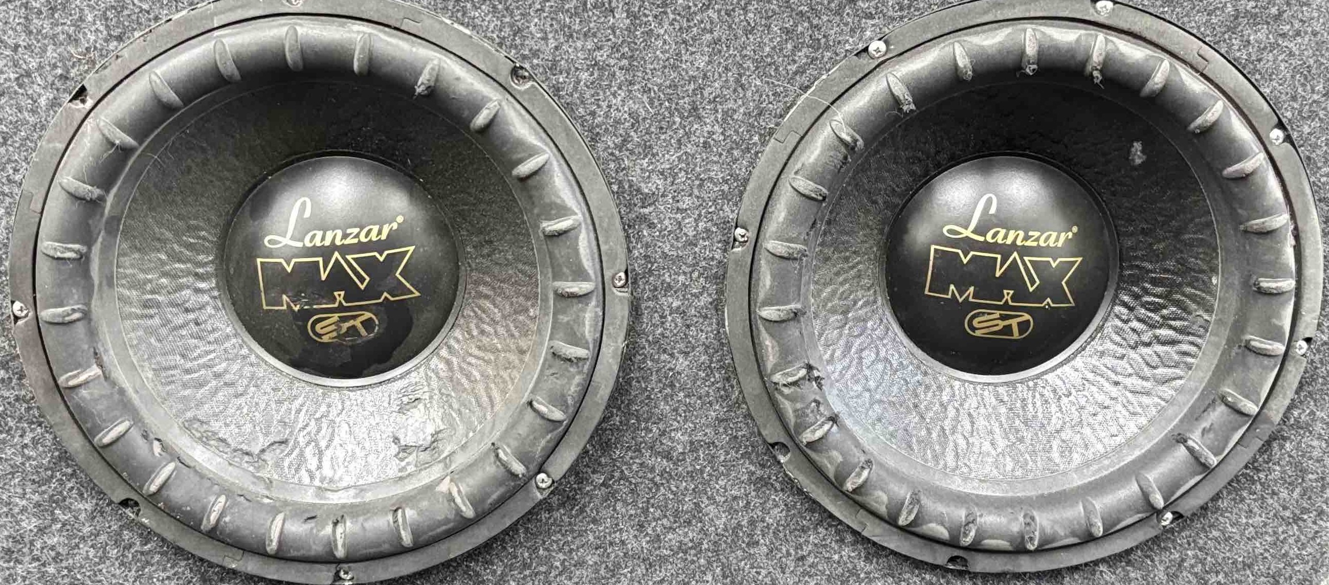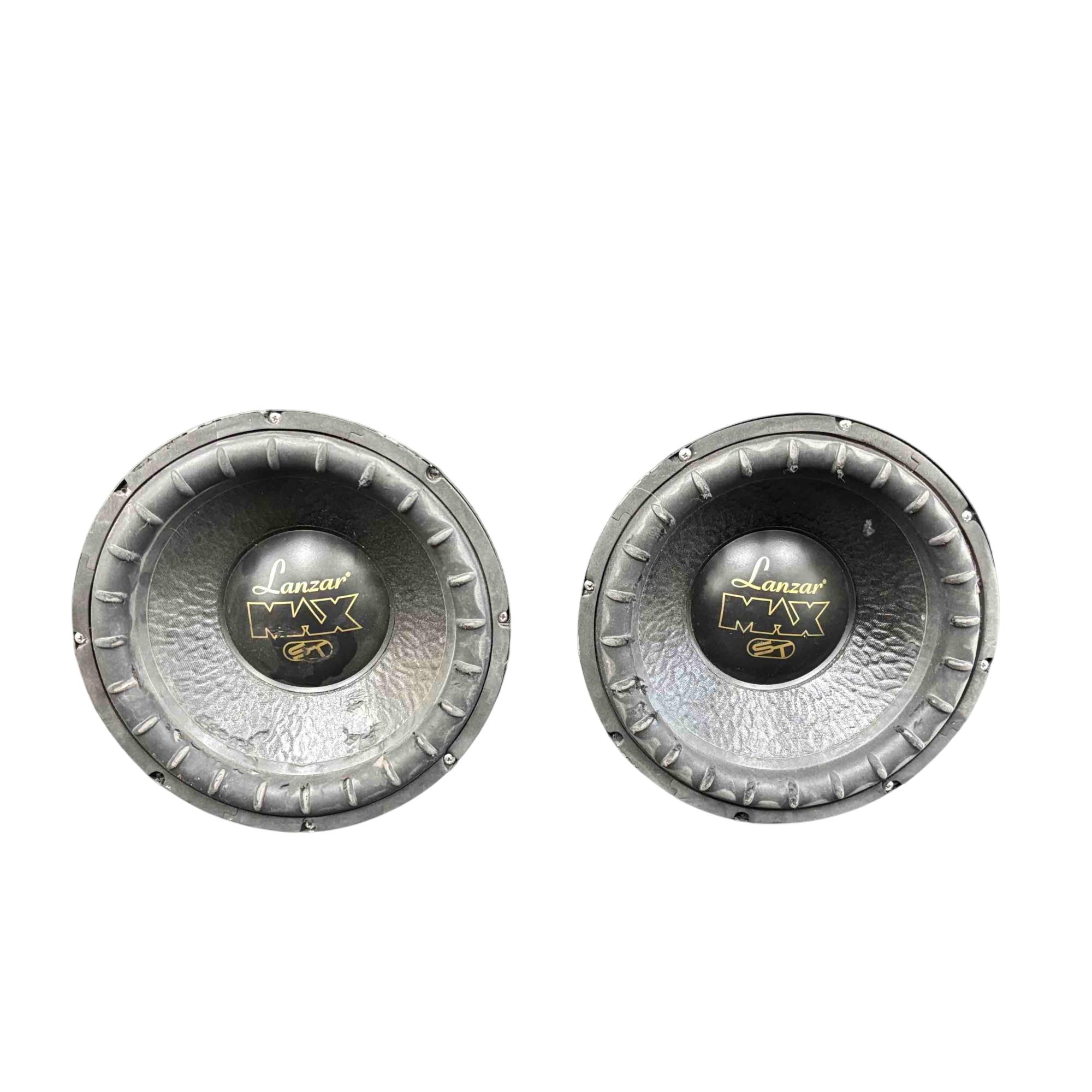 Unleash the power of sound with the Lanzar MAX ST Subwoofer Pair. These sleek black subwoofers, adorned with elegant gold lettering and a striking yellow logo, deliver unbeatable audio clarity and deep bass that will elevate your listening experience. Perfect for audiophiles looking to enhance their home or car audio setup with a touch of style.
