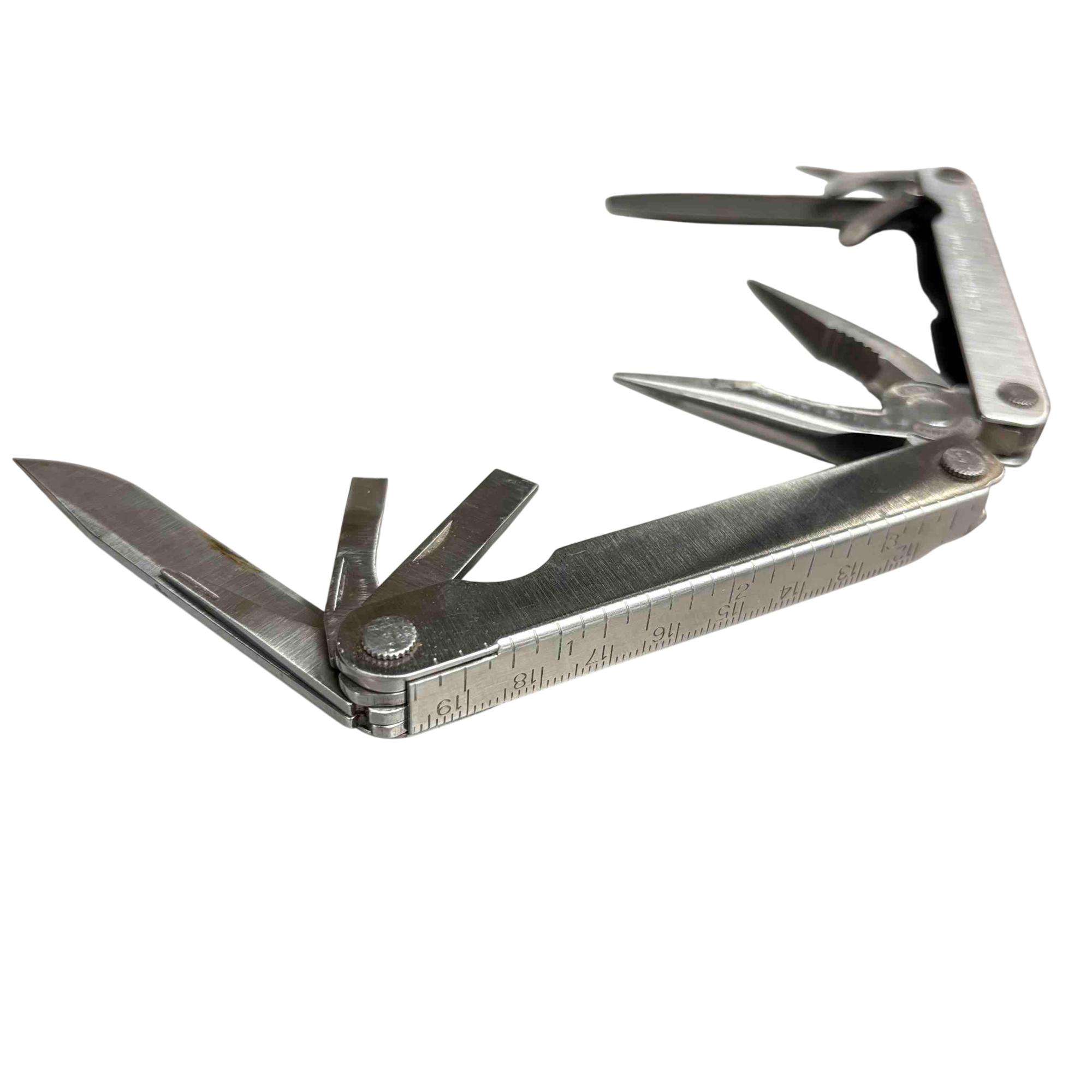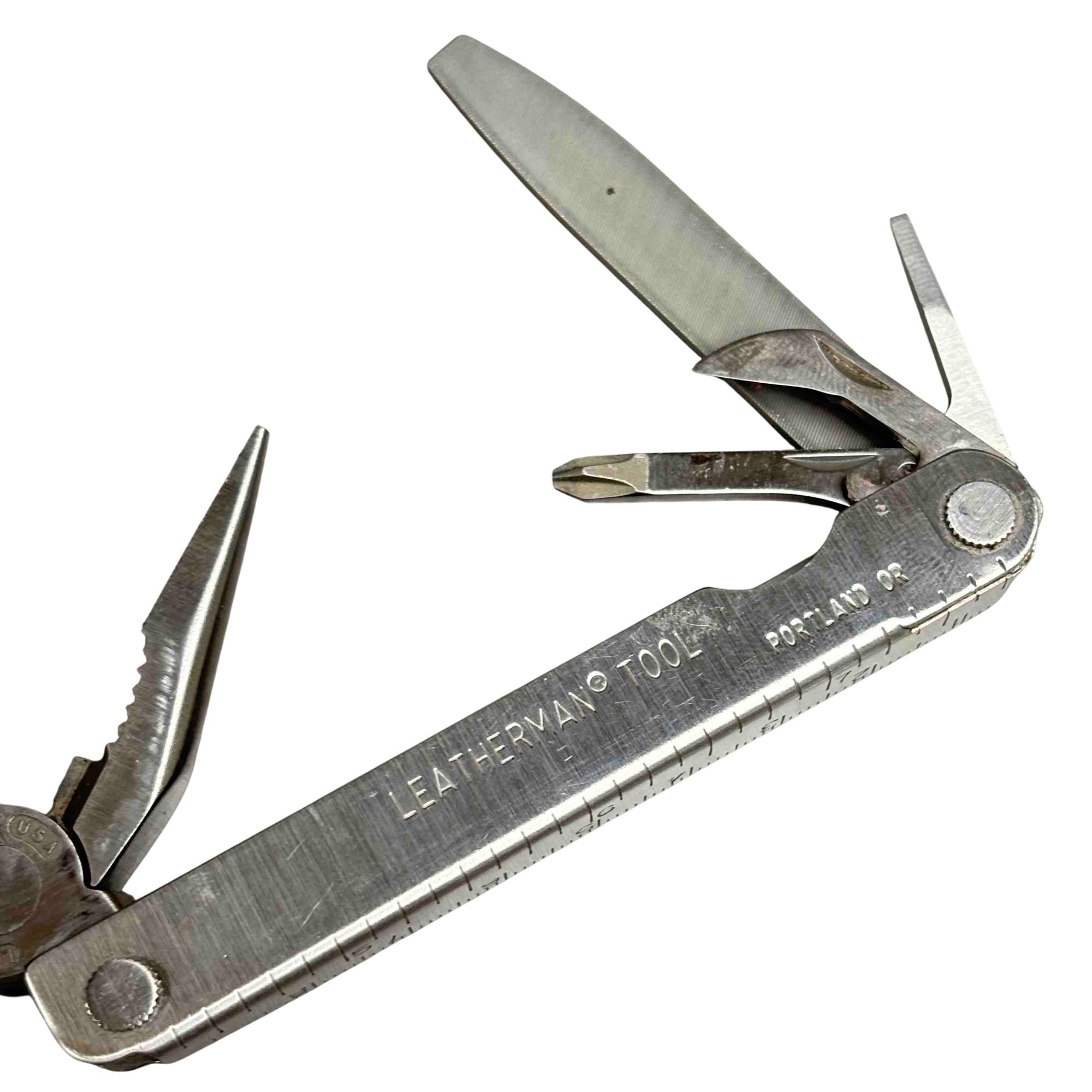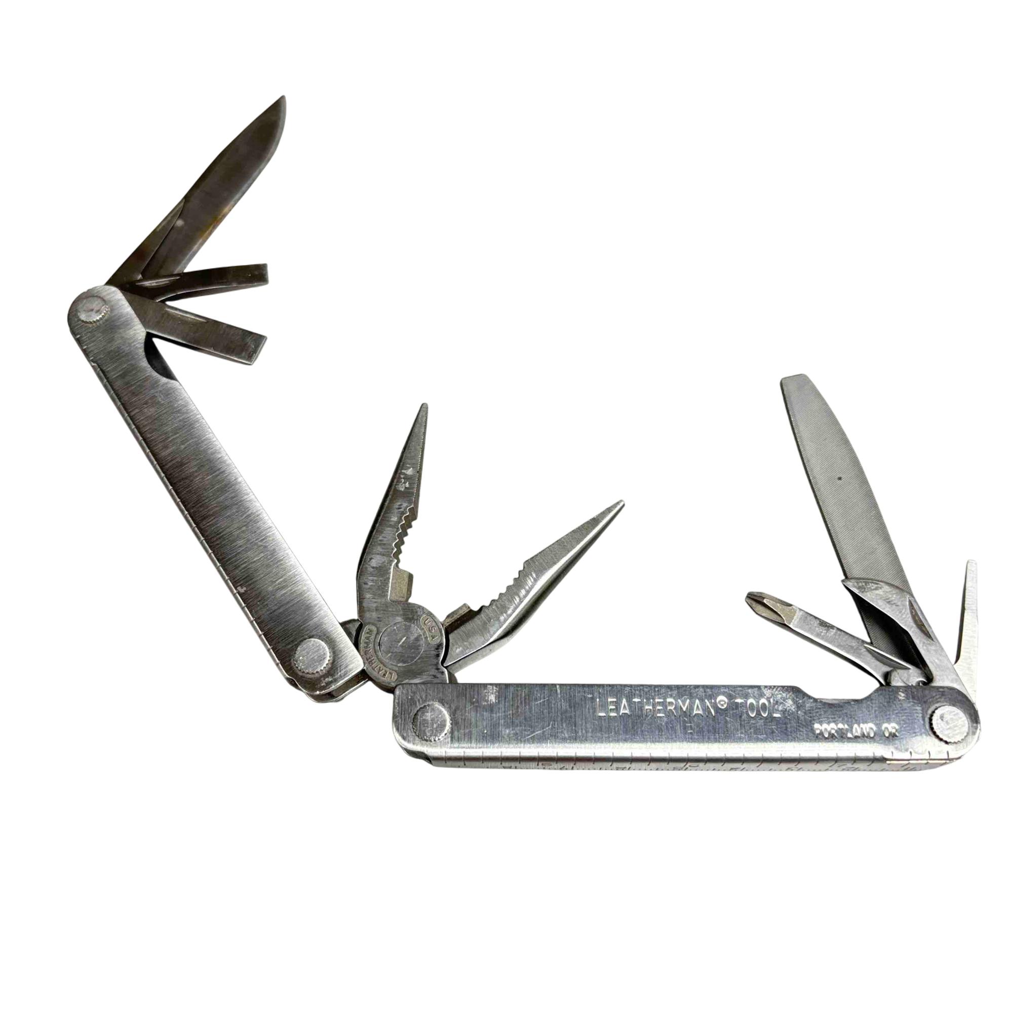 Discover the versatility and reliability of the Leatherman PST Multi-Tool! Equipped with pliers, a knife, scissors, and more, this compact tool is your perfect companion for any adventure. Complete with a durable leather sheath, its designed for both convenience and durability, making it an essential addition to your toolkit.