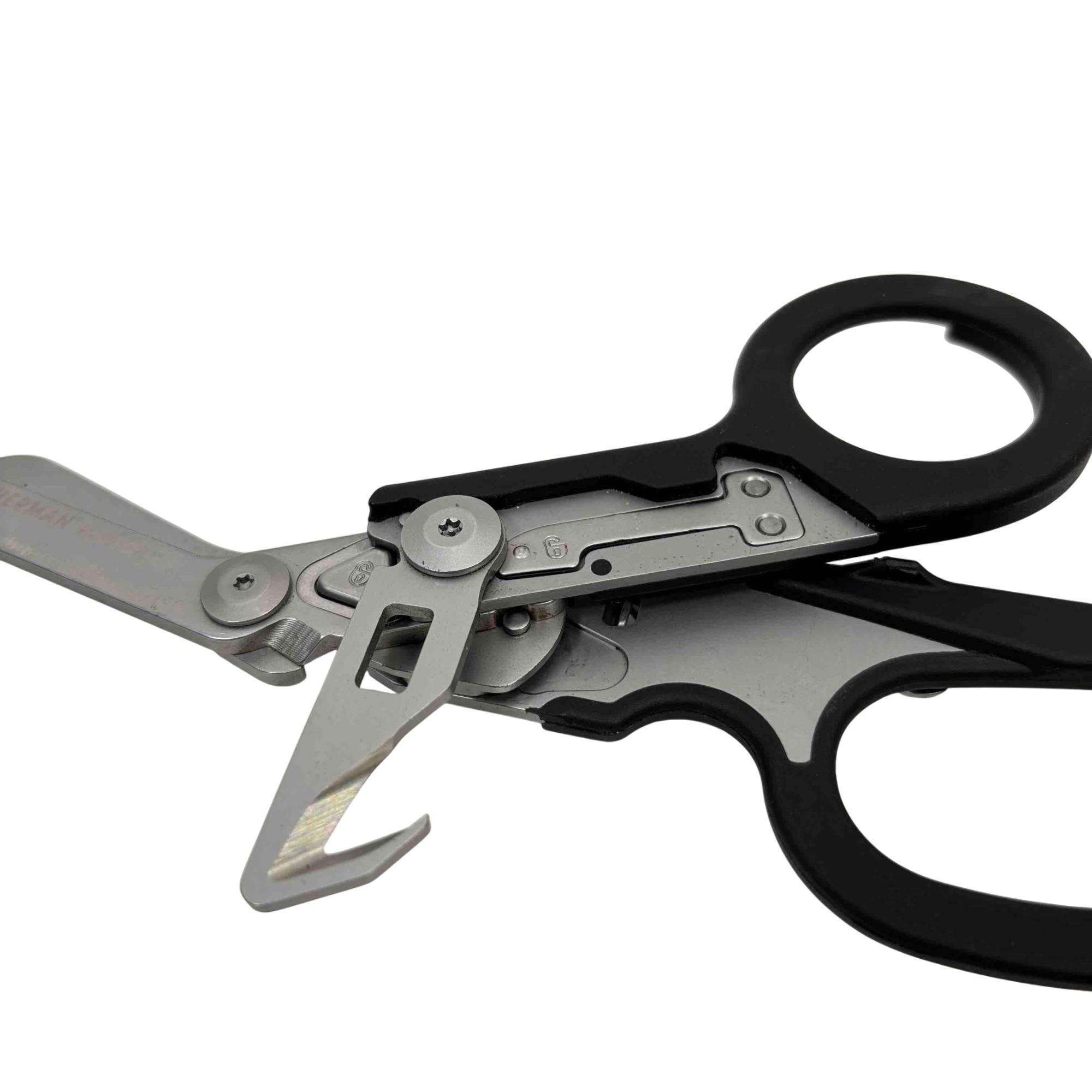 Unleash the power of precision with the Leatherman Raptor Emergency Response Trauma Shears. Perfect for medical professionals, these versatile shears come equipped with black handles and a durable holster for easy access. Designed to handle emergency situations, this multi-tool includes features like a strap cutter and ring cutter, making it an essential tool for swift, efficient rescue operations.