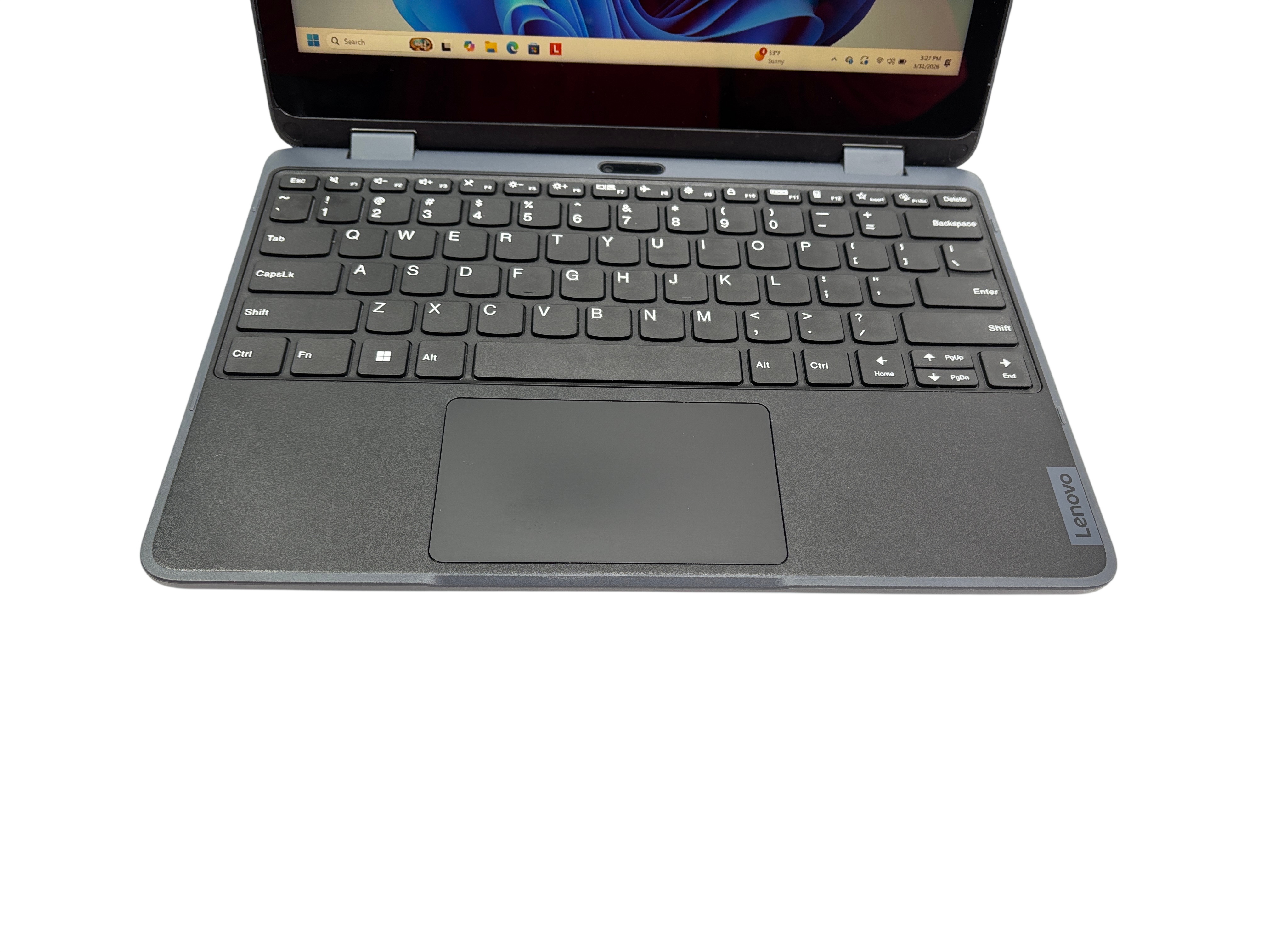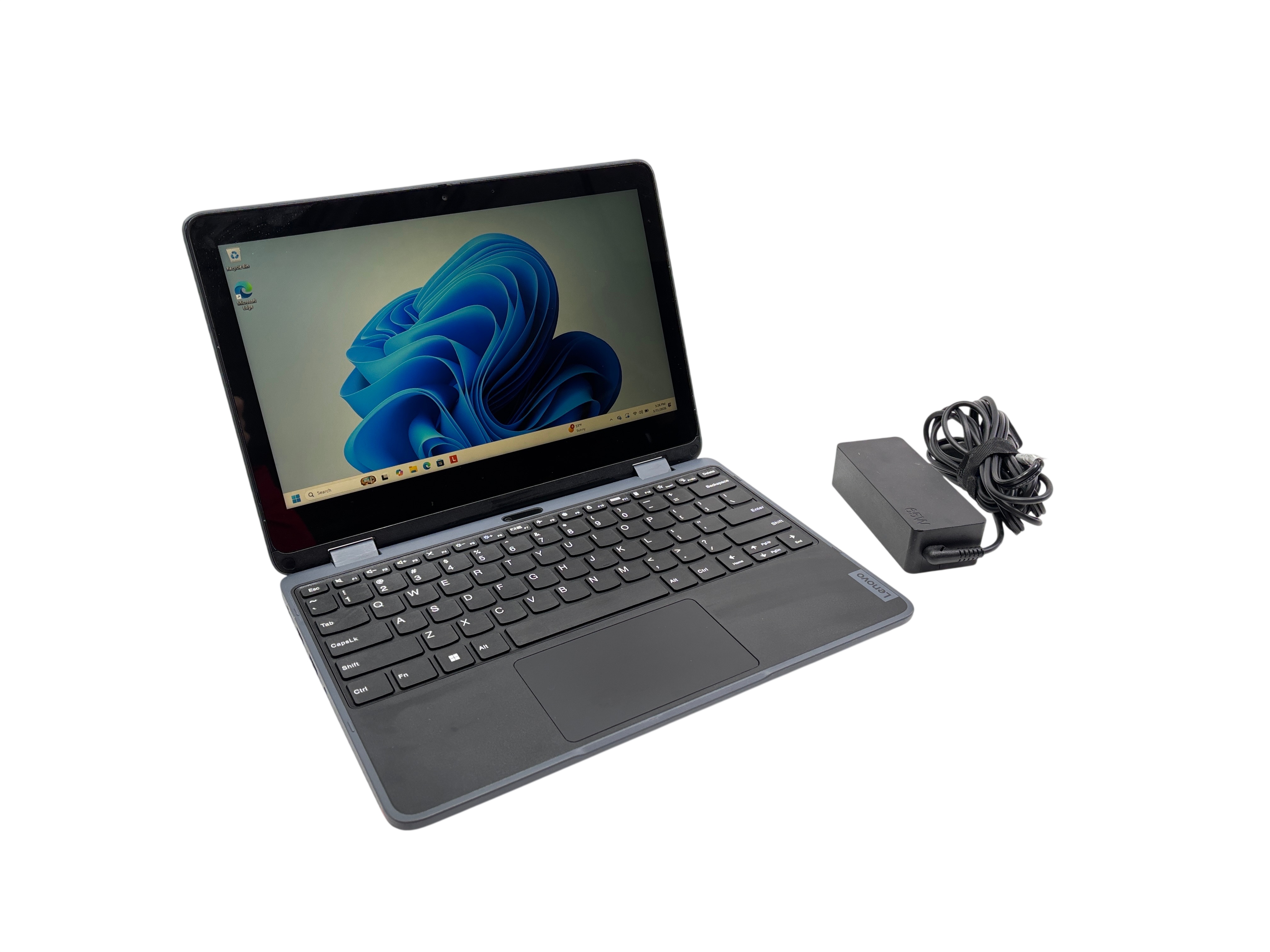 The Lenovo 300W Yoga Gen 4 is a versatile 2-in-1 laptop featuring a 128GB SSD for fast storage and a compact touchscreen display ideal for productivity and entertainment. This model comes with its original charger. Its convertible design allows easy switching between laptop and tablet modes, making it perfect for users seeking flexibility and portability in a lightweight device.