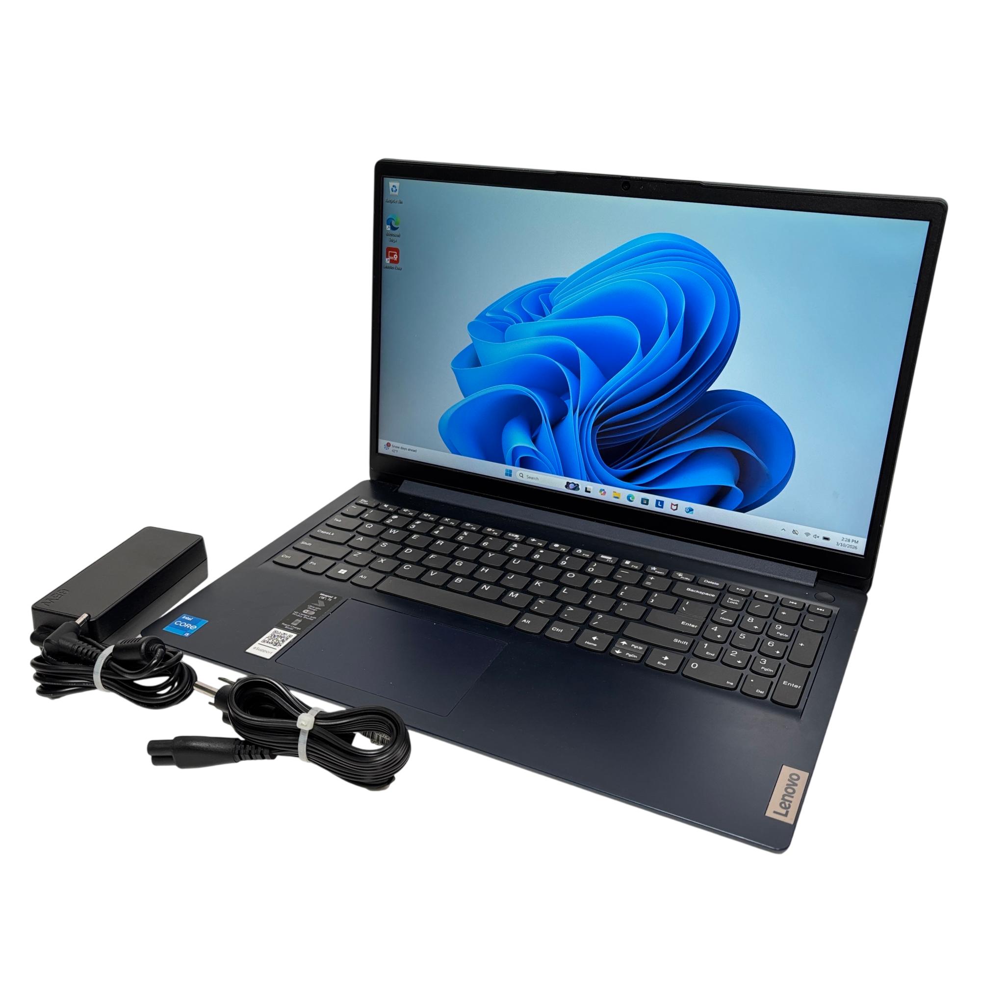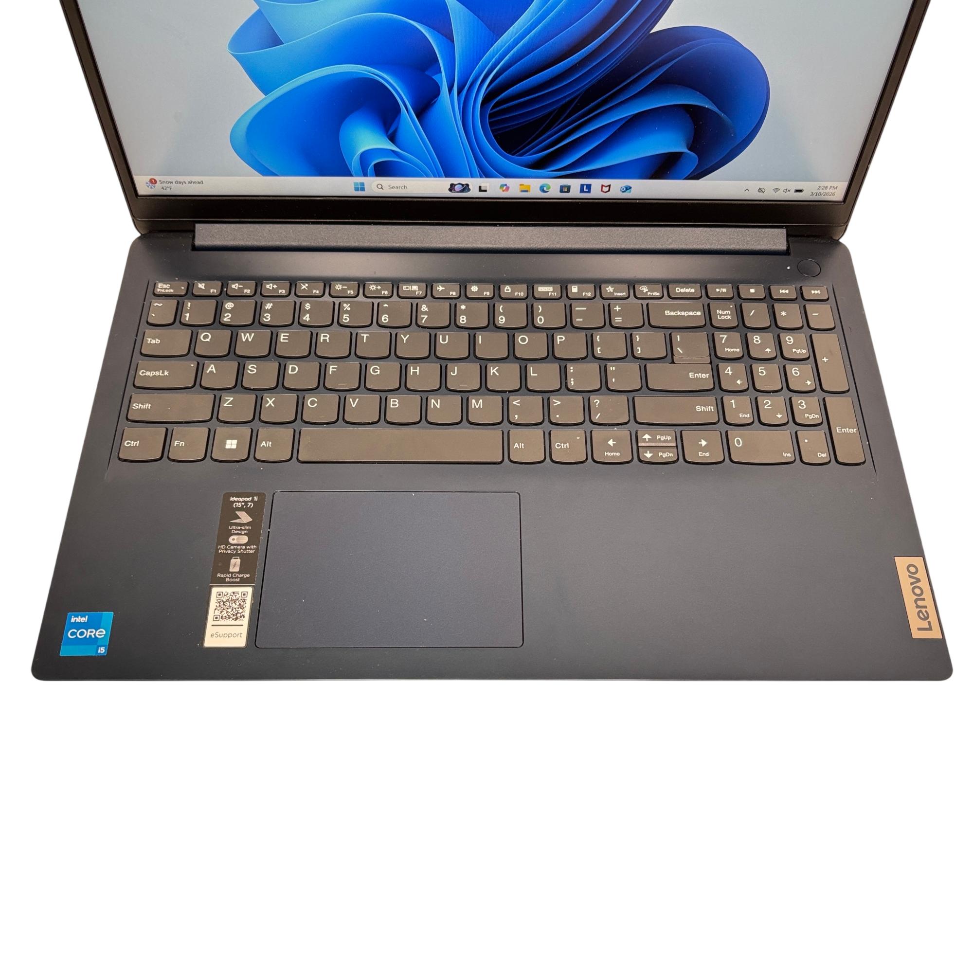 Lenovo IdeaPad 1 15IAU7 15.6 inch Laptop features a sleek design with a vibrant display showcasing detailed visuals such as a blue flower. Powered by an Intel Core i5 processor and running Windows 11, this laptop offers reliable performance suitable for everyday computing tasks and productivity needs.