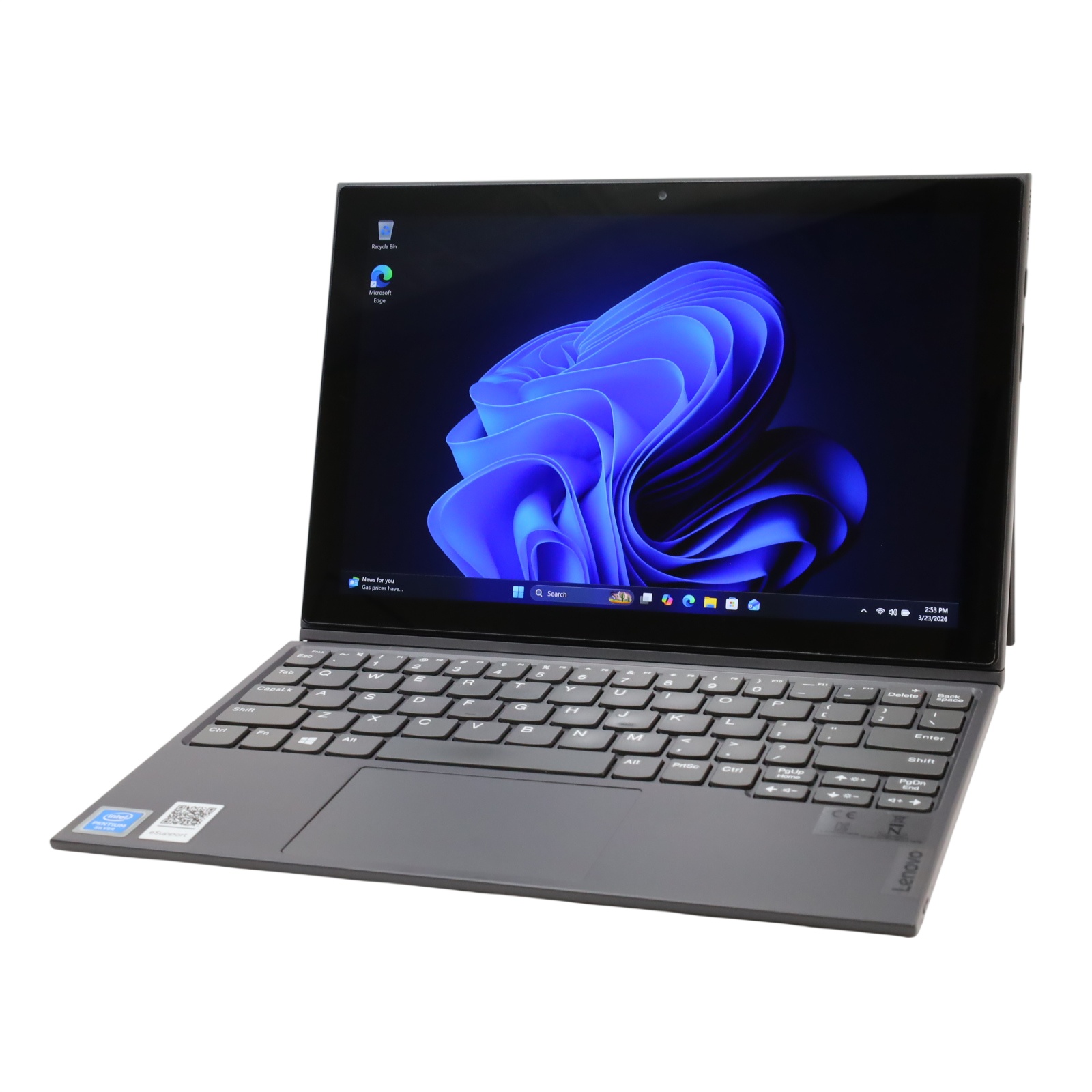 A compact computing device featuring a 10.3-inch touchscreen with a resolution of 1920 x 1200. It operates on an Intel Pentium N5030 Quad-Core processor with a base clock speed of 1.10GHz and is paired with 8GB of DDR4 RAM and 128GB eMMC storage. Visual processing is managed by Intel UHD Graphics 605. Wireless capabilities include Bluetooth 5.1 and Wi-Fi 5, along with LTE Wireless support. The unit includes a 2MP front-facing camera and a 5MP rear-facing camera. Connection interfaces consist of two USB 3.2 Gen 2 Type-C ports and a standard headphone and microphone jack.