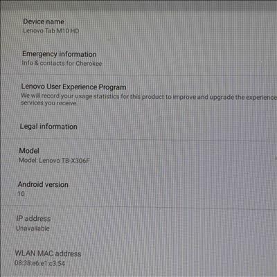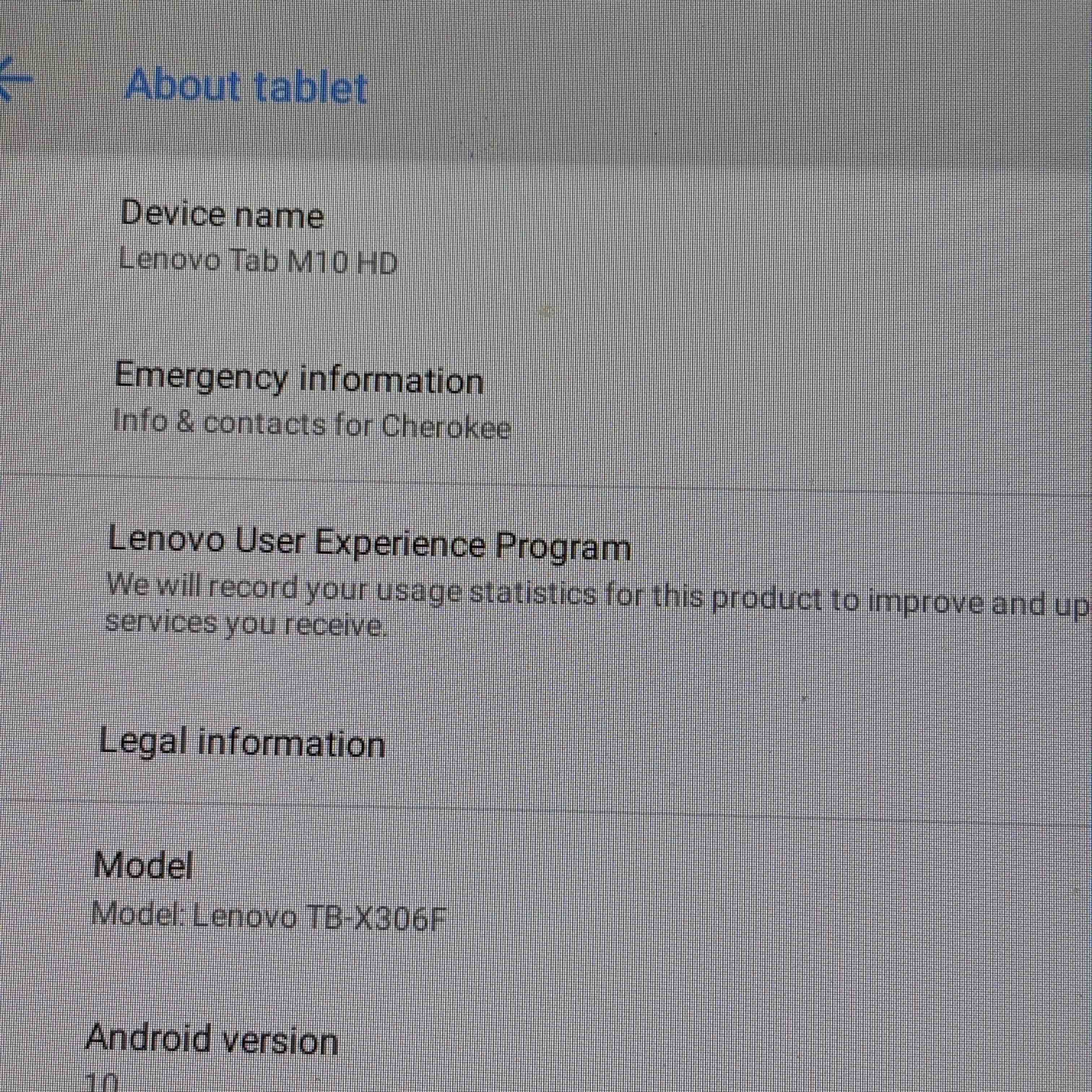 Lenovo Tab M10 HD TB-X306F Gray 2GB RAM 32GB Handheld Tablet NY0R / 10.1" Screen