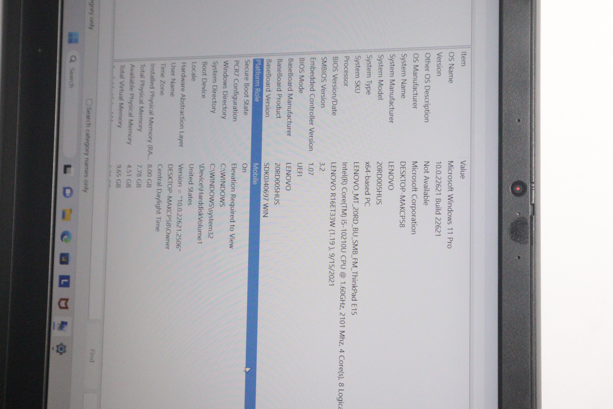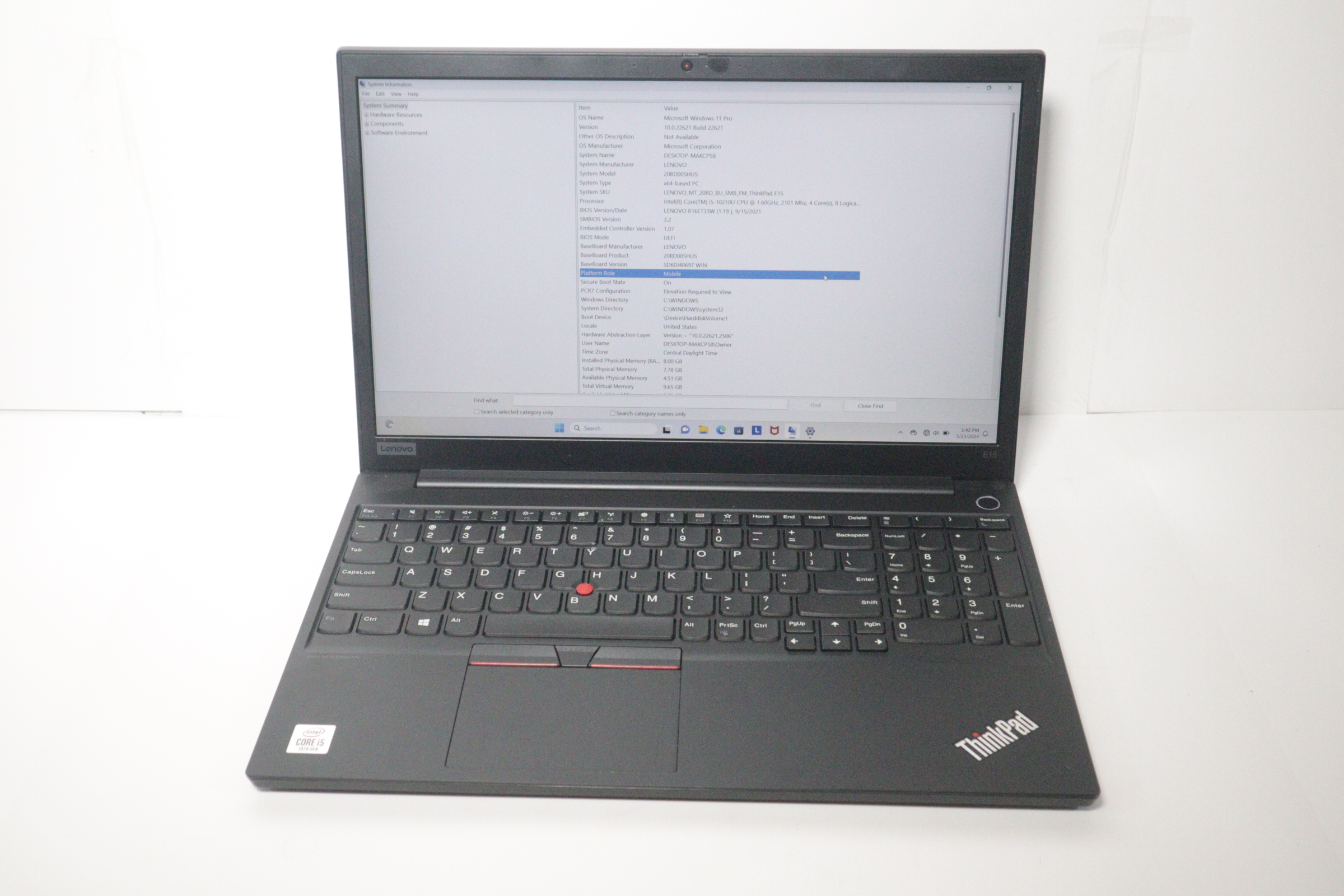 Model: ThinkPad E15 20RD005HUS