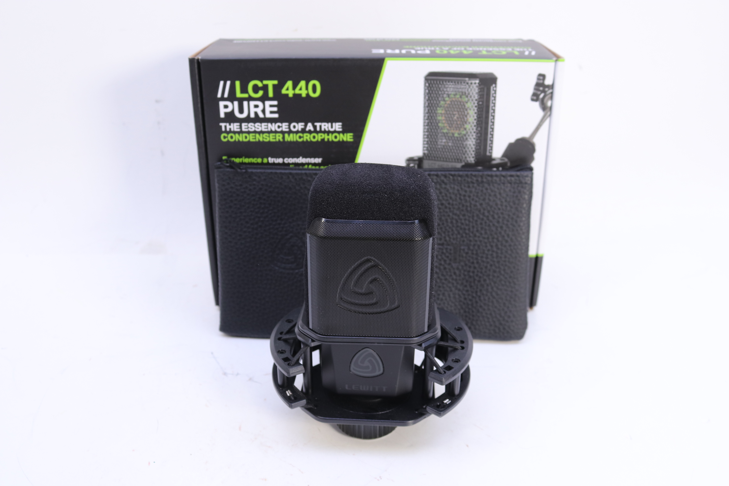 Boasting components and design ported from their top-shelf models, the Lewitt LCT 440 PURE is a side-address true condenser microphone that offers a rewarding studio-class sound on anything from vocals and acoustic instruments to drums and guitar cabs. It features a gold-sputtered 1" large-diaphragm capsule and high-end circuitry, so it can produce polished sonics and handle punishing SPLs before distorting. Supplied with a shockmount, foam windscreen, and pop filter, the LCT 440 PURE is a capable mic package for the studio or stage.