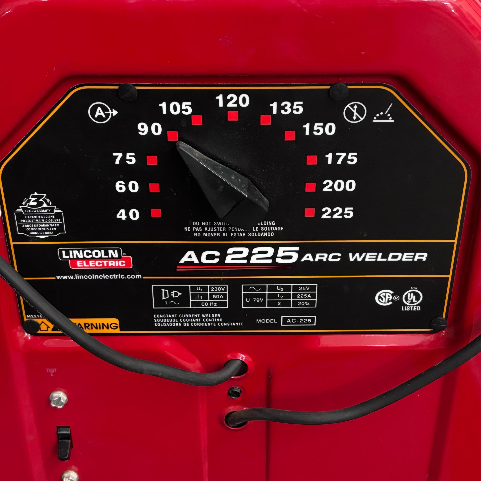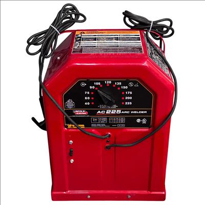 The Lincoln Electric AC-225 Arc Welder, Model AC-225, is a powerful stick welder designed for heavy-duty welding tasks. It operates on 230 volts and delivers a maximum output of 225 amps, providing consistent current suitable for various metal fabrication and repair applications. Engineered for durability and efficiency, this welder is ideal for both professional and industrial use.