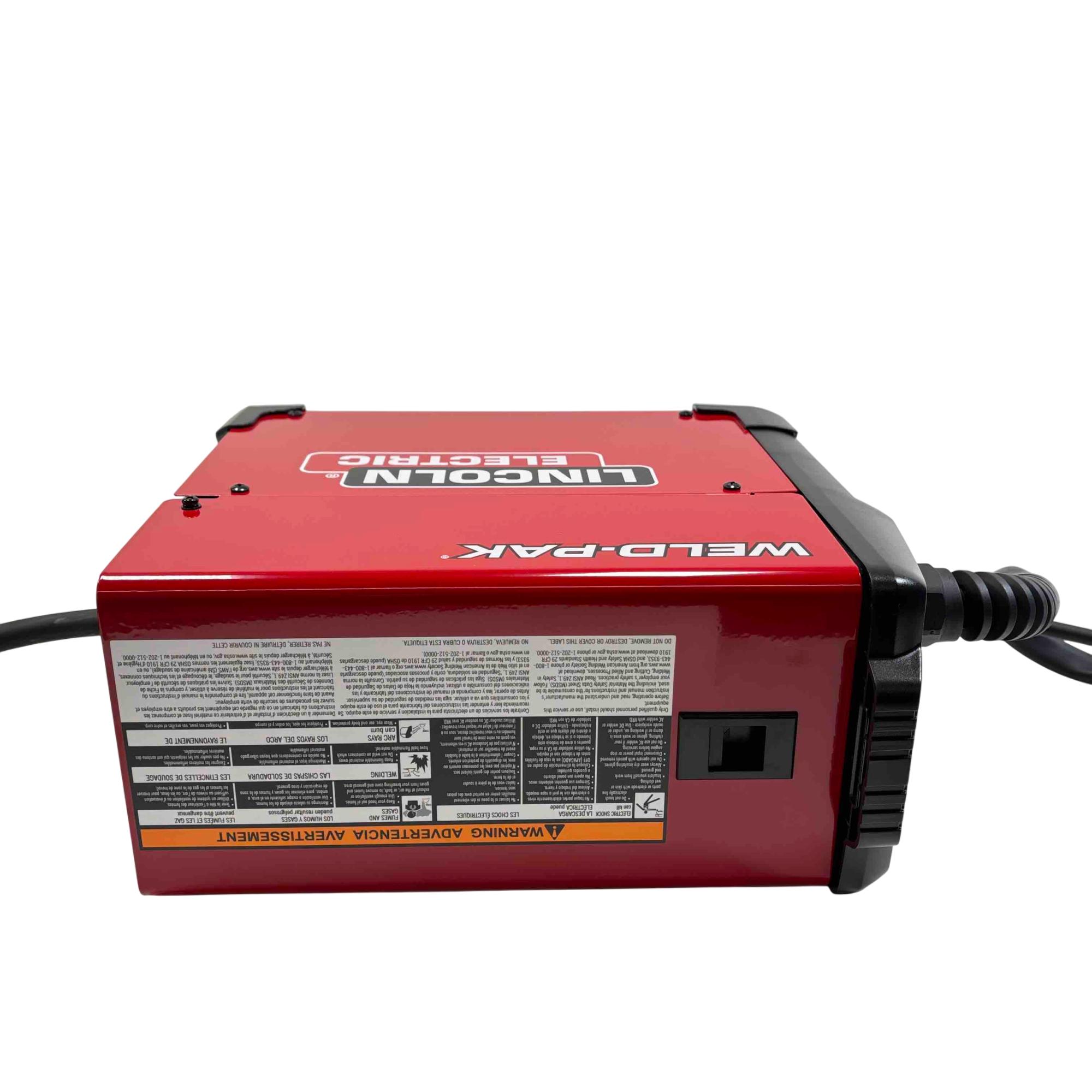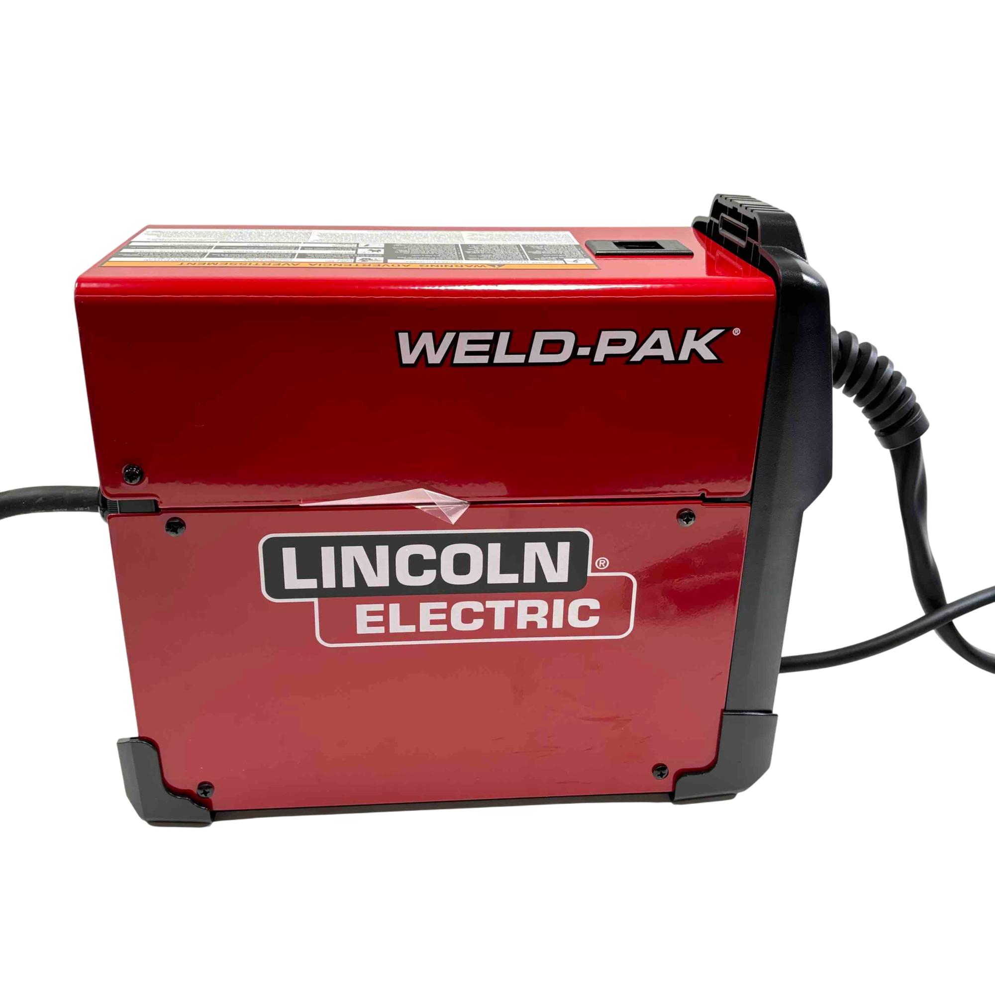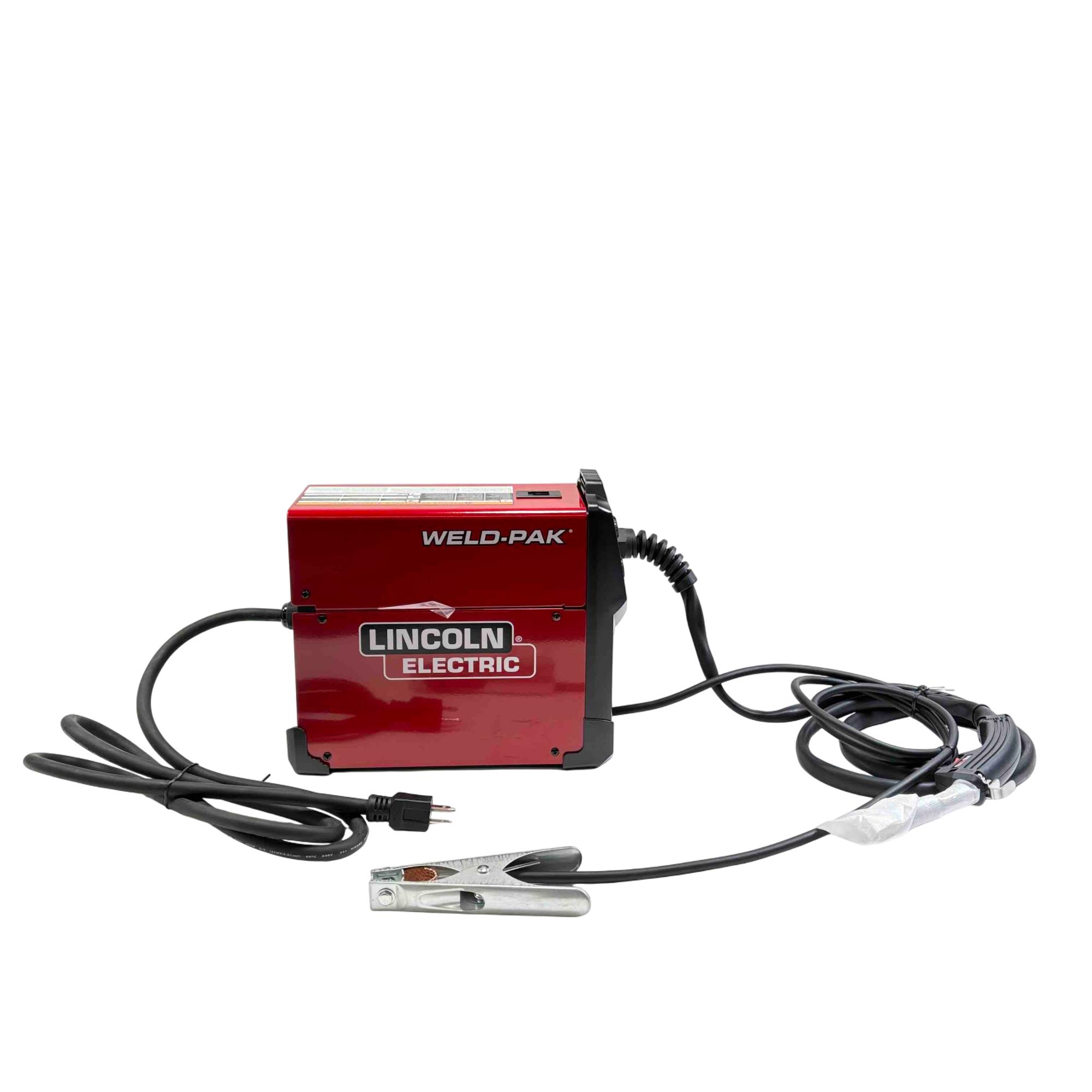 Introducing the Lincoln Electric Weld-Pak 90i FC, a flux-cored wire feed welder designed for both indoor and outdoor use without the need for external shielding gas. This lightweight, portable welder features inverter technology for energy efficiency and precise control, making it perfect for welding steel up to 1/4" thick. With adjustable voltage and wire speed, reinforced gun connection, and included flux-cored gun and ground clamp, this welder is ready to handle your toughest welding tasks.