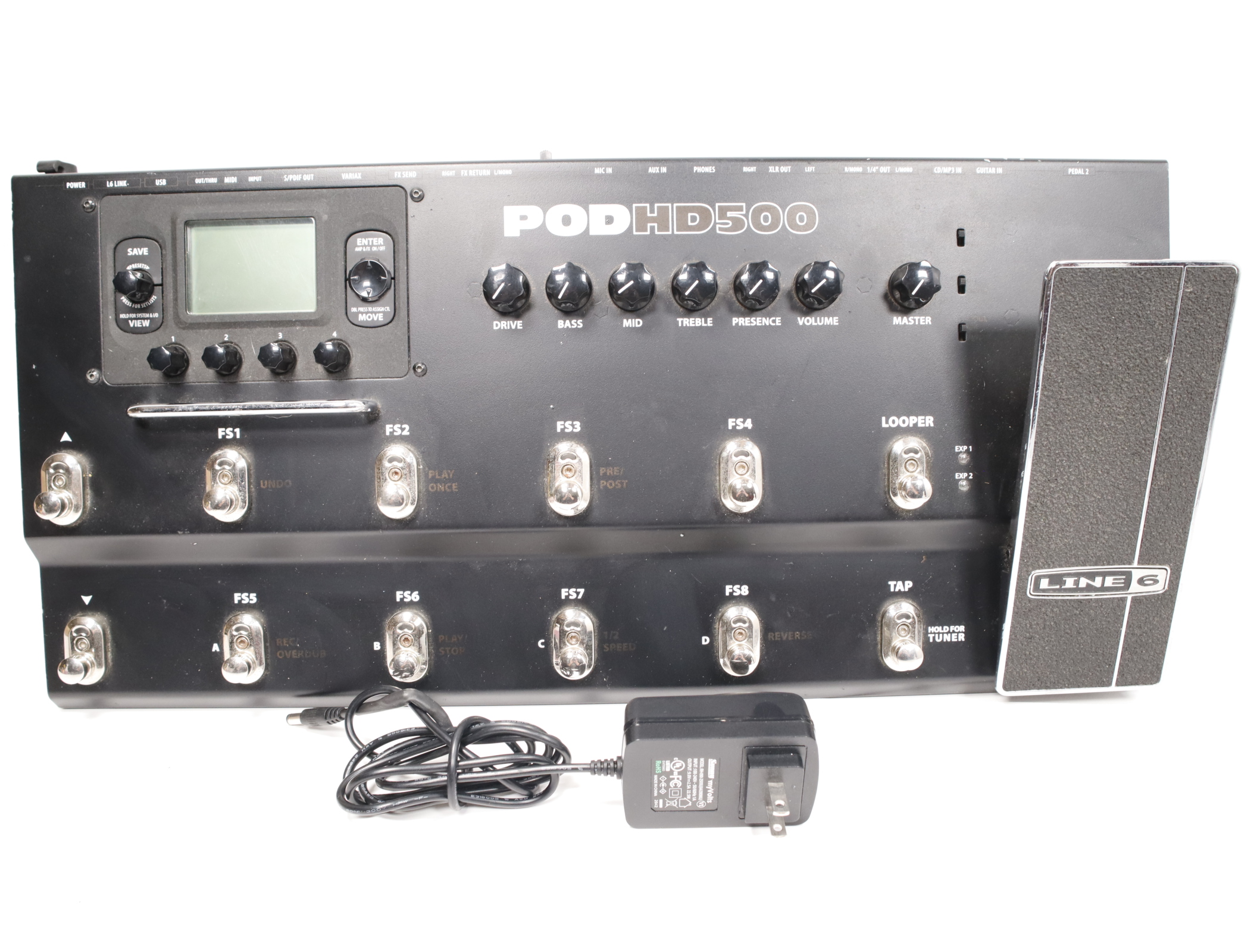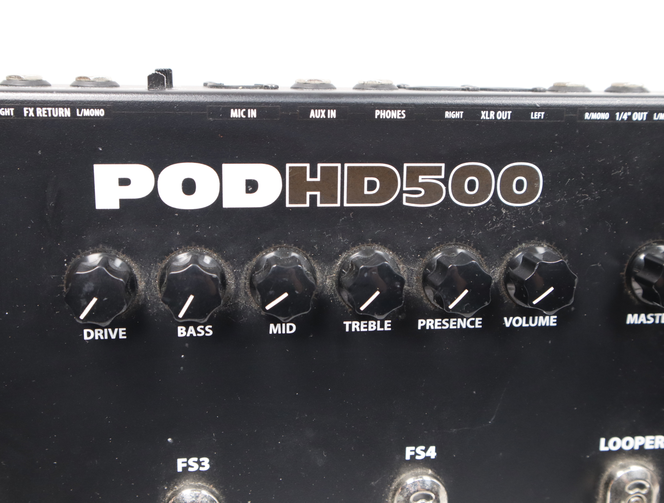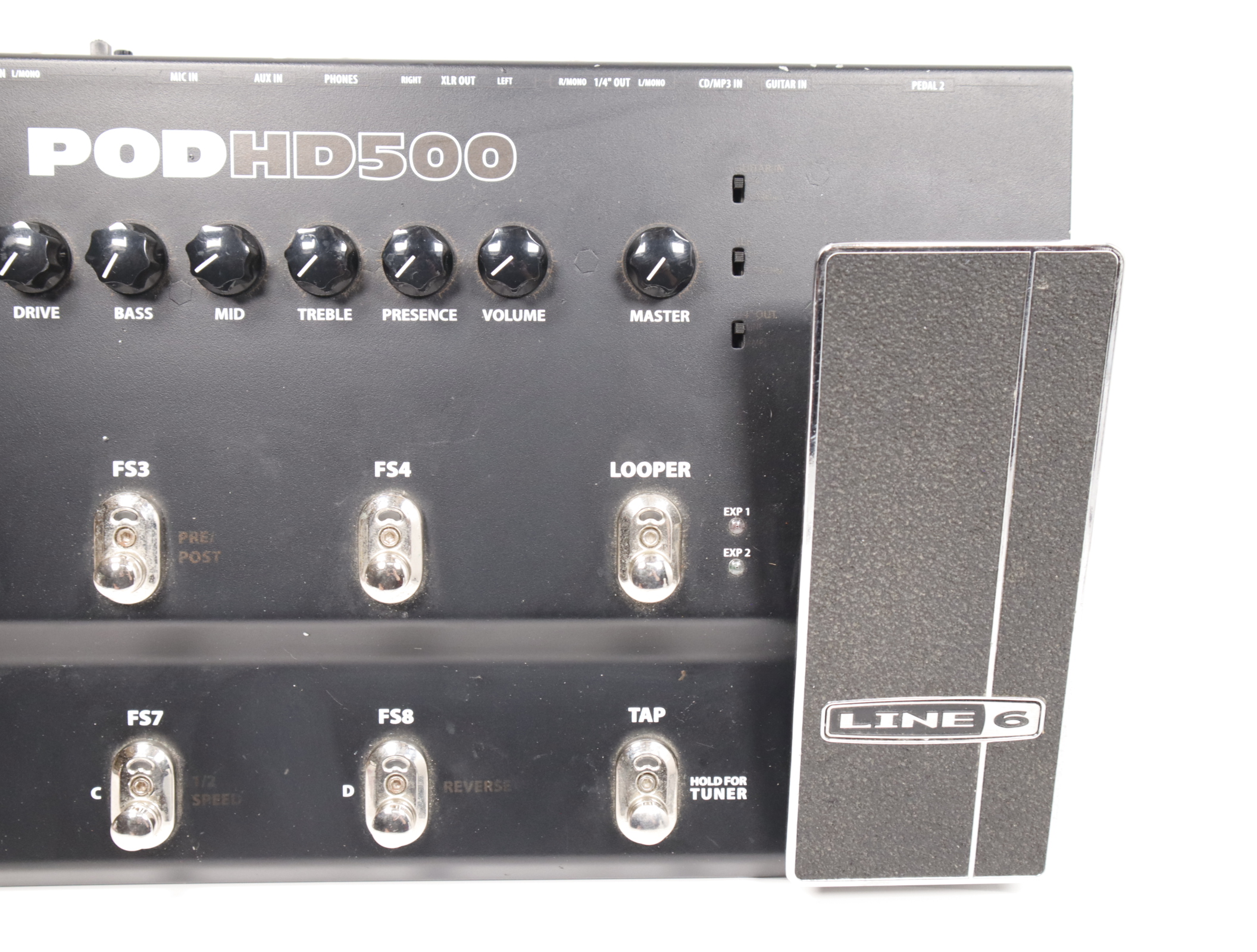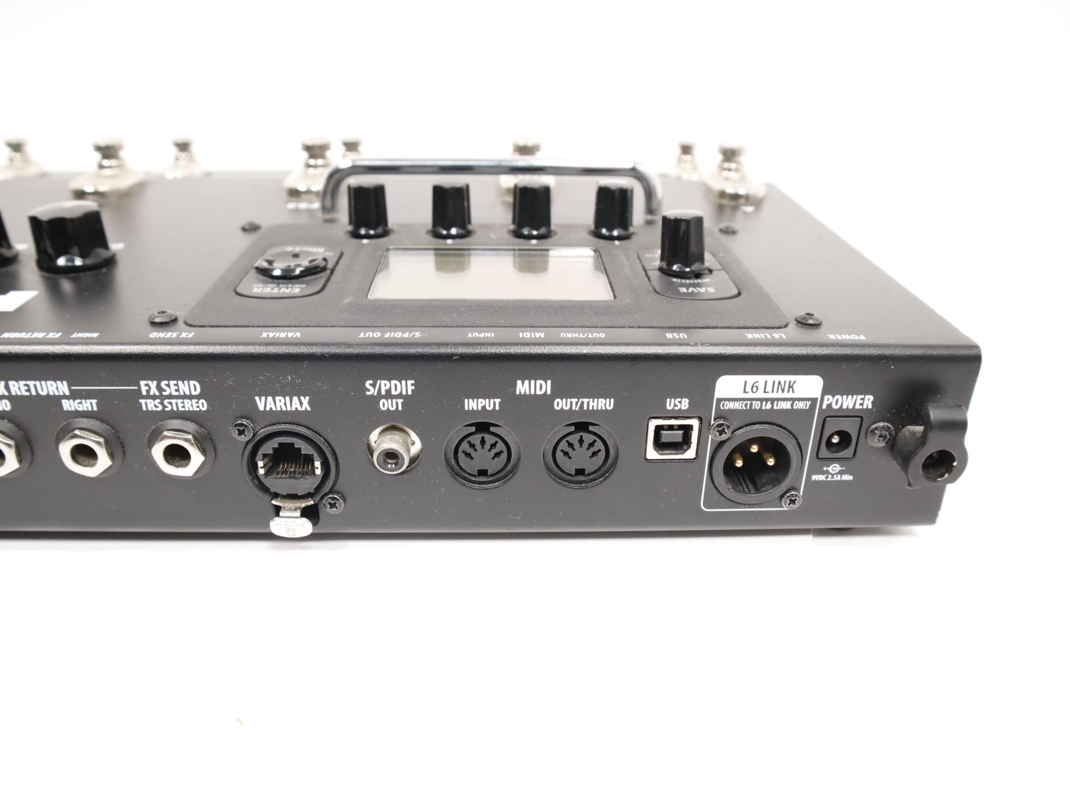 When it comes to connectivity, the HD500 has it all. There's a quarter-inch guitar input jack, a quarter-inch aux input jack, a mini-jack stereo input for MP3 players and a balanced XLR mic input with gain trim (but, alas, no phantom power). There's also a digital input for a Line 6 Variax Guitar, and MIDI connections (In and Out/Thru) on two DIN sockets. On the output side, there are two balanced XLRs for the left and right channels (which are duplicated on unbalanced quarter-inch jacks), a stereo effects loop and a quarter-inch stereo headphone jack.