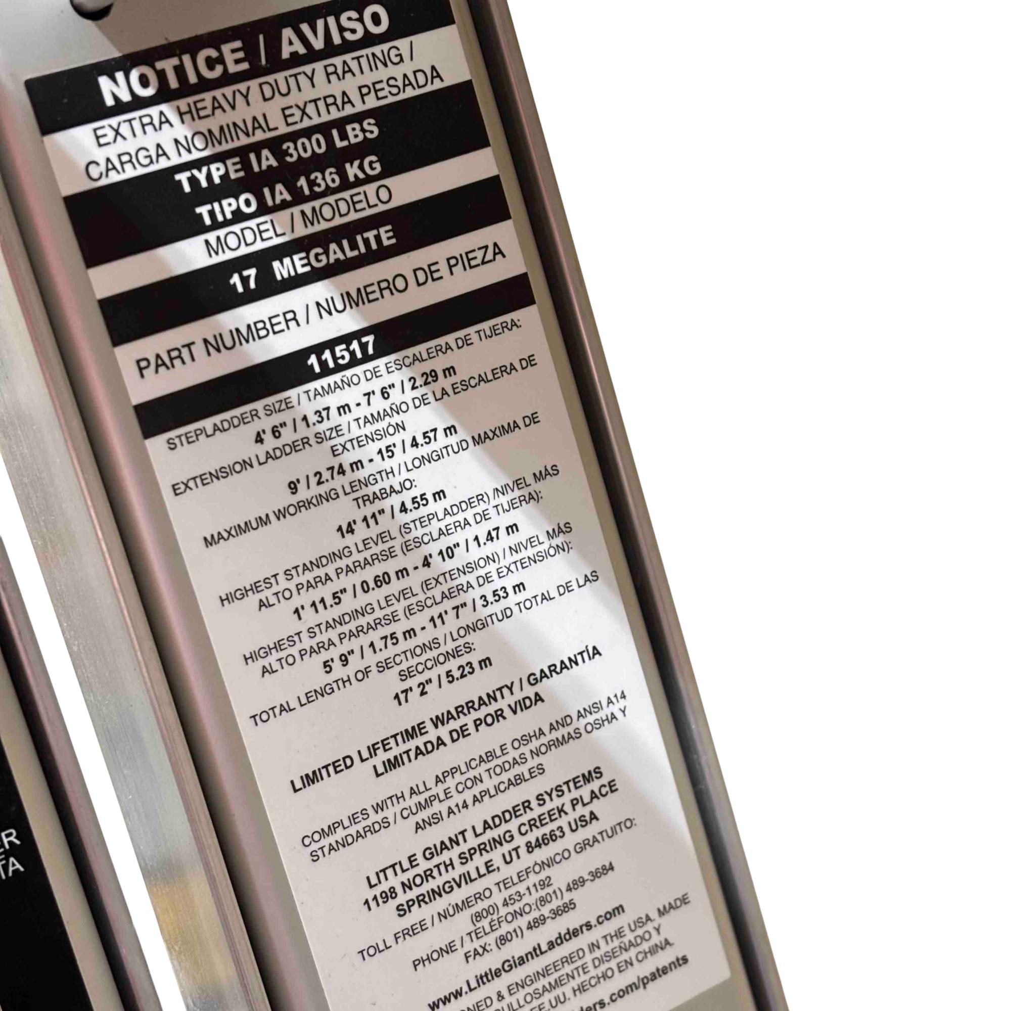 Elevate your work with the Little Giant Megalite 17ft Multi-Position Ladder. Perfect for any job site or DIY project, this versatile ladder supports up to 300 lbs, ensuring maximum stability and safety. With its multiple configurations, you can easily tackle any task at any height.