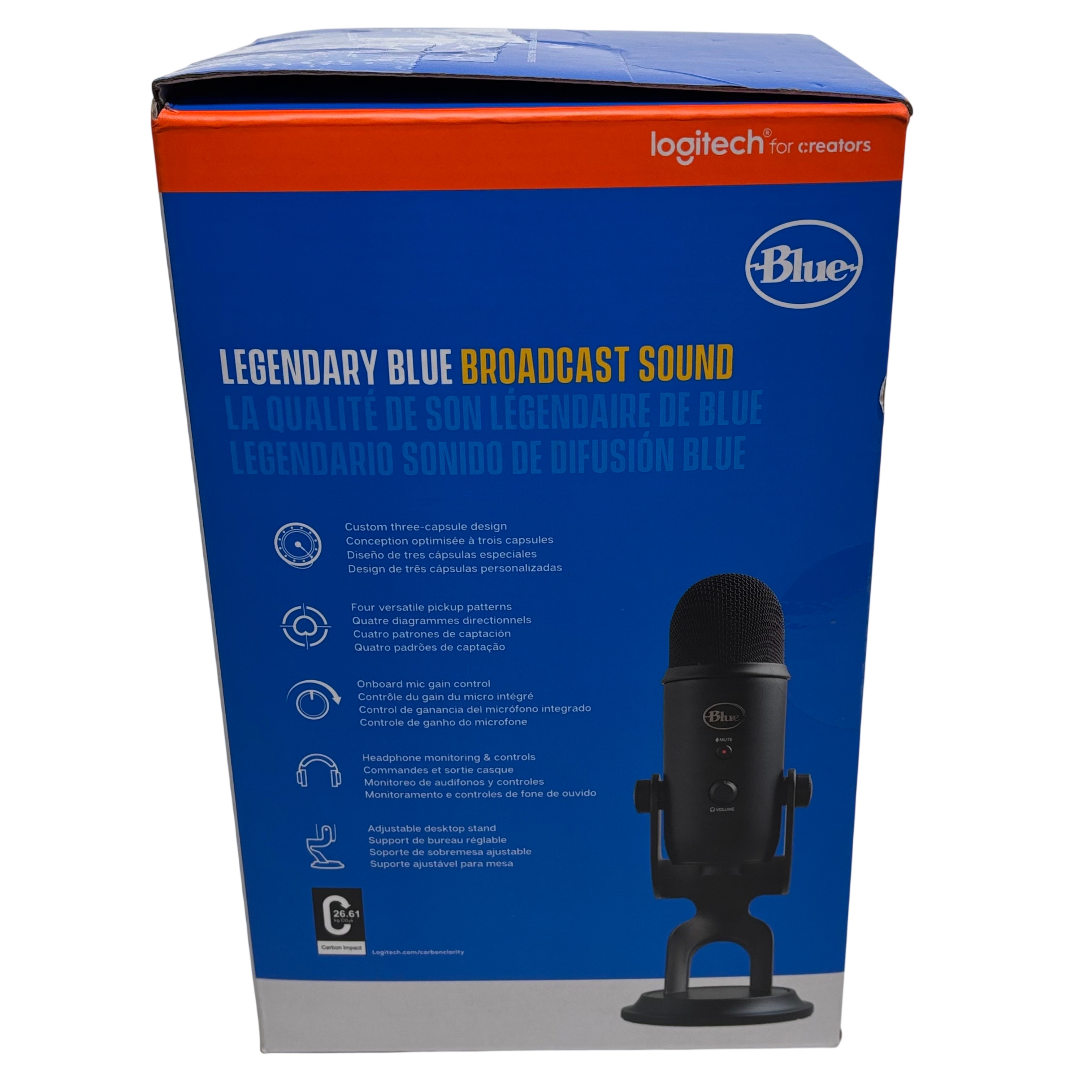The Logitech Blue Yeti 2643 USB Microphone delivers legendary broadcast sound with a custom three-capsule design and four versatile pickup patterns for professional-grade audio capture. Featuring onboard mic gain control, headphone monitoring with controls, and an adjustable desktop stand, this microphone is ideal for gaming, streaming, podcasting, and content creation. USB powered and easy to use, the Blue Yeti 2643 combines high-quality sound with versatile functionality for creators seeking premium audio performance.
