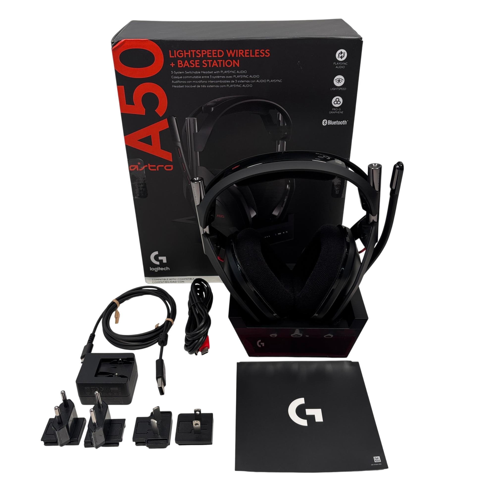 The Logitech ASTRO A50 Multi-Platform Wireless Gaming Headset A00186 offers immersive high-fidelity audio with 3-system switchable compatibility for Xbox, PC, and PlayStation. Designed with stylish black and red accents, it features advanced wireless technology and an intuitive base station for seamless connectivity and superior sound performance optimized for gaming.