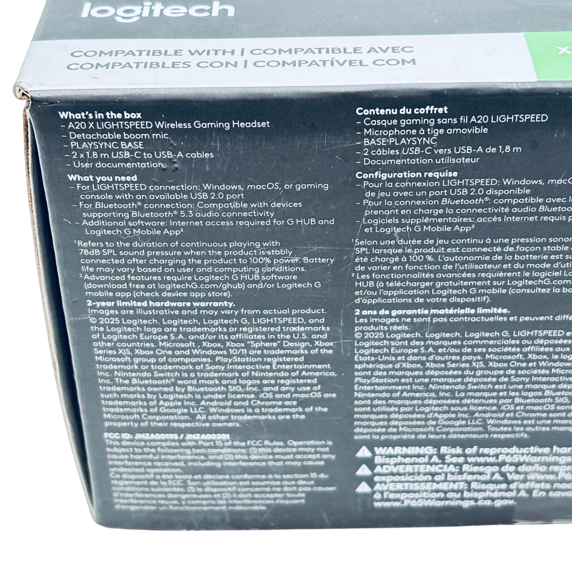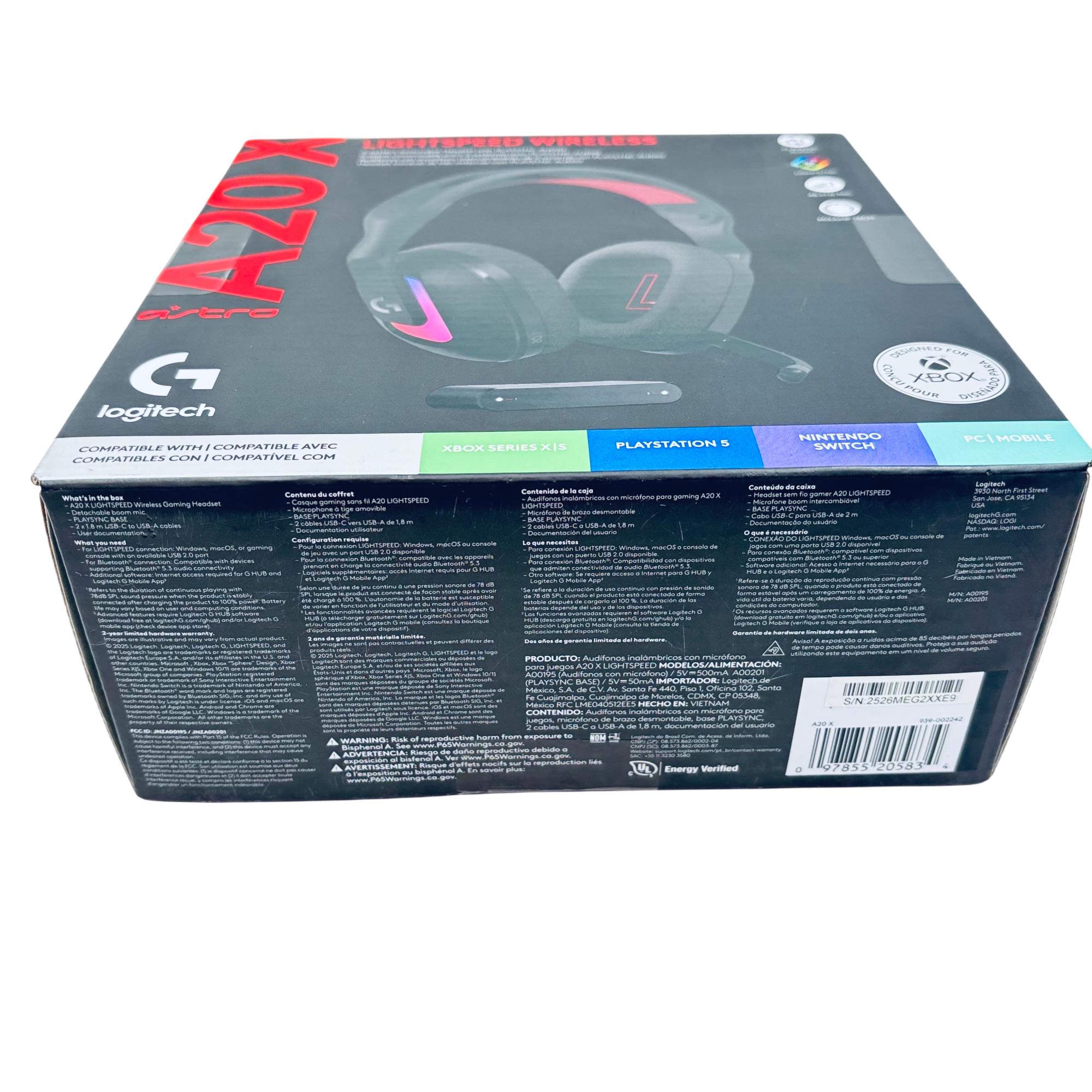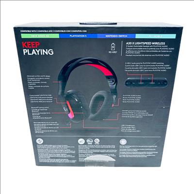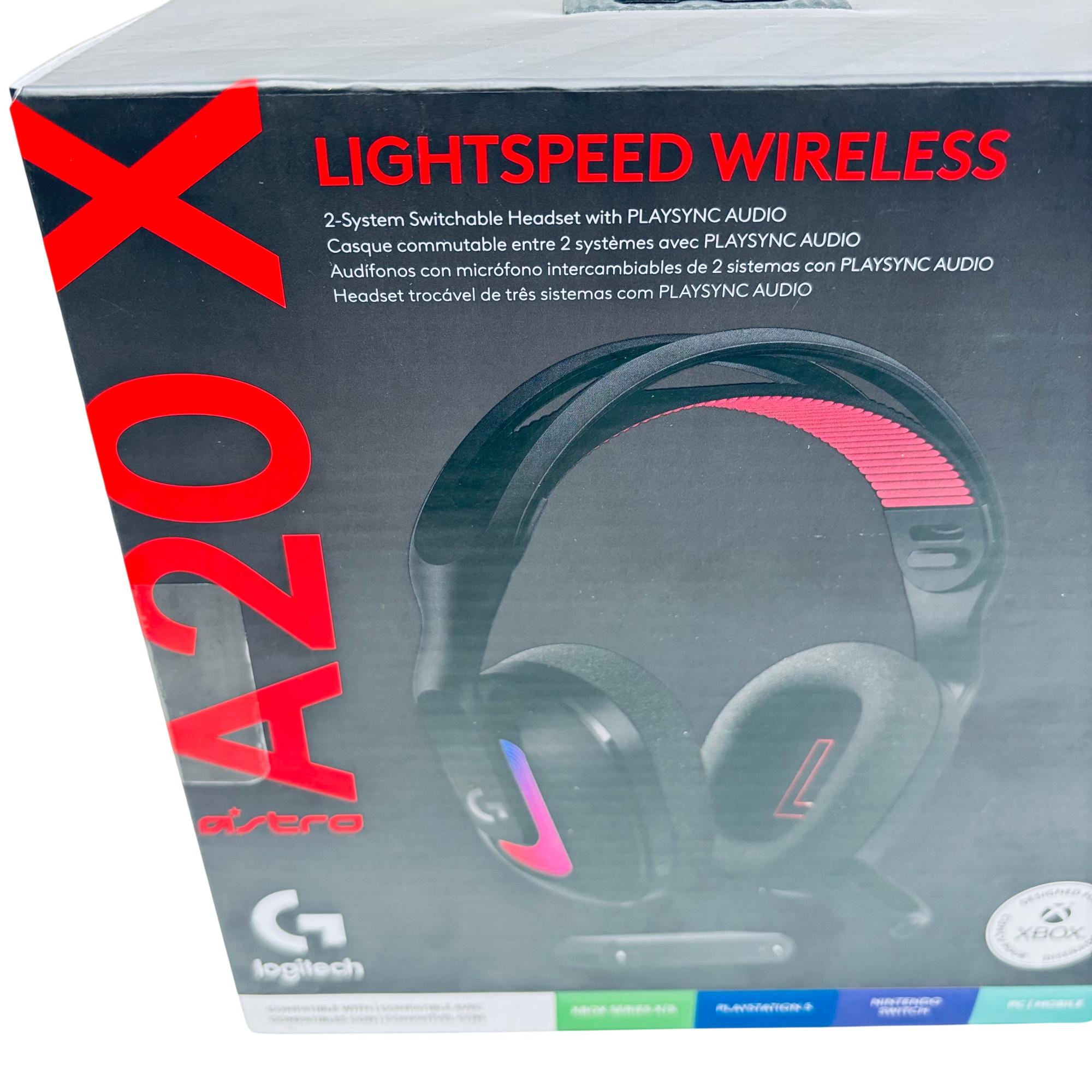 Logitech Astro A20 X LIGHTSPEED Wireless Gaming Headset offers high-fidelity audio with LIGHTSPEED wireless technology for a lag-free, immersive gaming experience. It features PLAYSYNC audio for seamless switching between two systems and a 48 kHz microphone for clear communication, making it compatible with multiple platforms including Xbox, PlayStation 5, Nintendo Switch, PC, and mobile devices.