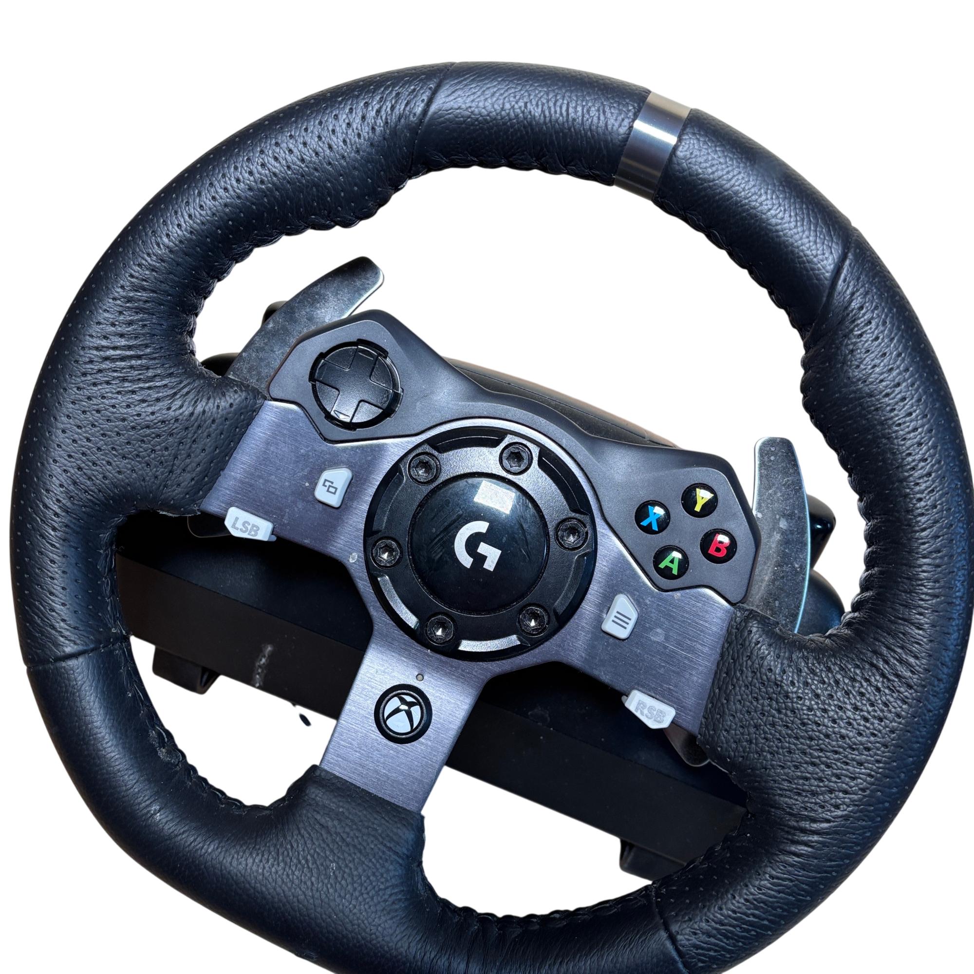 The Logitech G920 Driving Force Racing Wheel and Pedals Set delivers precise force feedback and realistic control designed for immersive racing simulation on Xbox and PC. Featuring responsive pedals and a durable steering wheel with a textured grip, this racing wheel setup enhances gameplay with accurate and smooth input response.