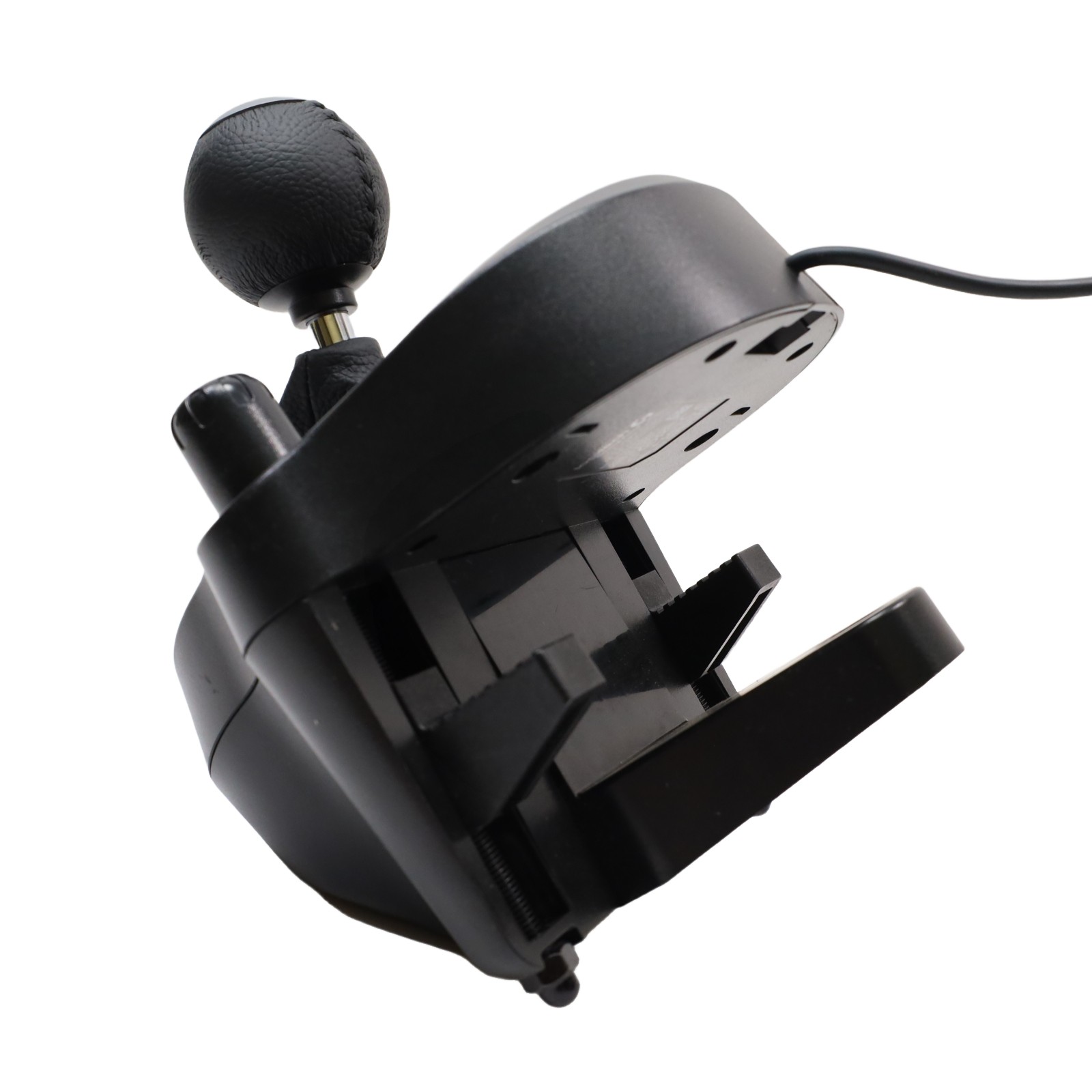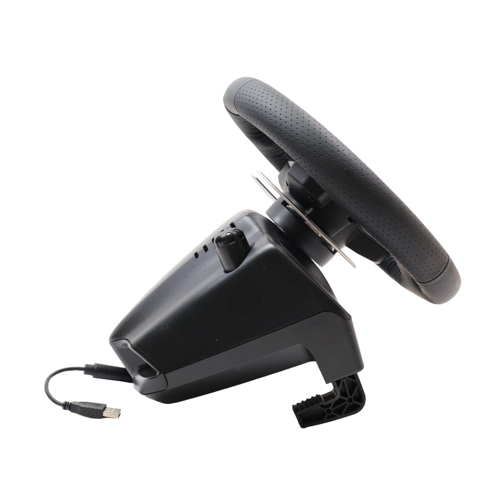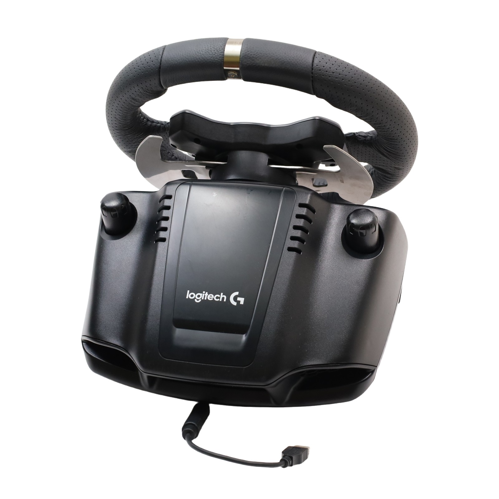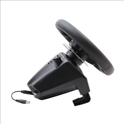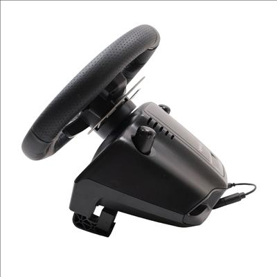 Features a 10.24" wheel covered in hand-stitched leather, 900° steering rotation, and dual-motor force feedback. It includes a responsive 3-pedal set with throttle, brake, and clutch pedals designed to mimic an actual car, along with a nonlinear brake pedal for precise braking. The wheel and pedals are constructed with solid steel ball bearings and stainless steel components, and helical gearing with anti-backlash ensures smooth, quiet operation. Compatible with Microsoft Xbox One and Windows PCs, the G920 offers easy access to game controls via a directional pad and Xbox One buttons. The set mounts securely to tables or racing rigs and features rubber feet for hard surfaces and a retractable grip system for carpets.
