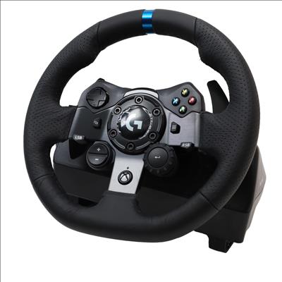 Rev up realism with the G923 TRUEFORCE Sim Racing Wheel and Pedals for PC, Xbox X|S & Xbox One from Logitech G. Designed to improve immersion, this racing wheel features TRUEFORCE force feedback technology that syncs with game engines and physics for realism you can feel. Likewise, the close-loop motor control matches voltage to in-game physics output for precise torque. Adjust the torque, traction, and brake force using a 24-point selection dial. Integrated console controls on the steering wheel allow for controller-like commands without leaving the driver's seat. Use the dual-clutch launch assist to get over the starting line faster.