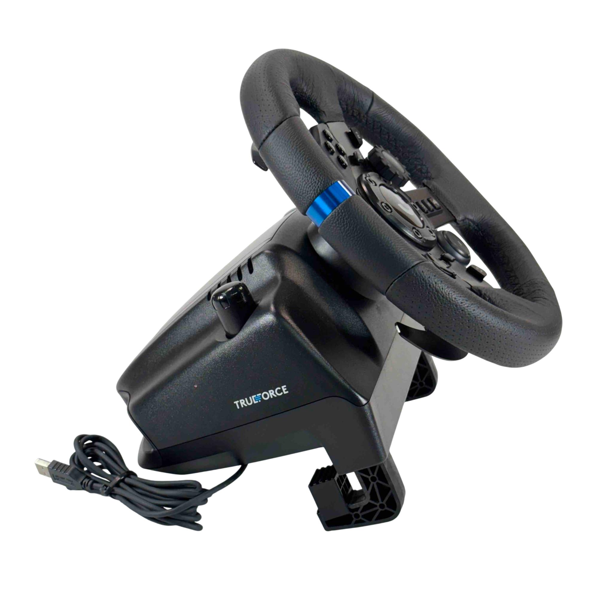 This racing wheel combo is previously owned and inspected fully. There are surface marks and wear on the pieces from use and handing. Unable to test fully. See images for details.