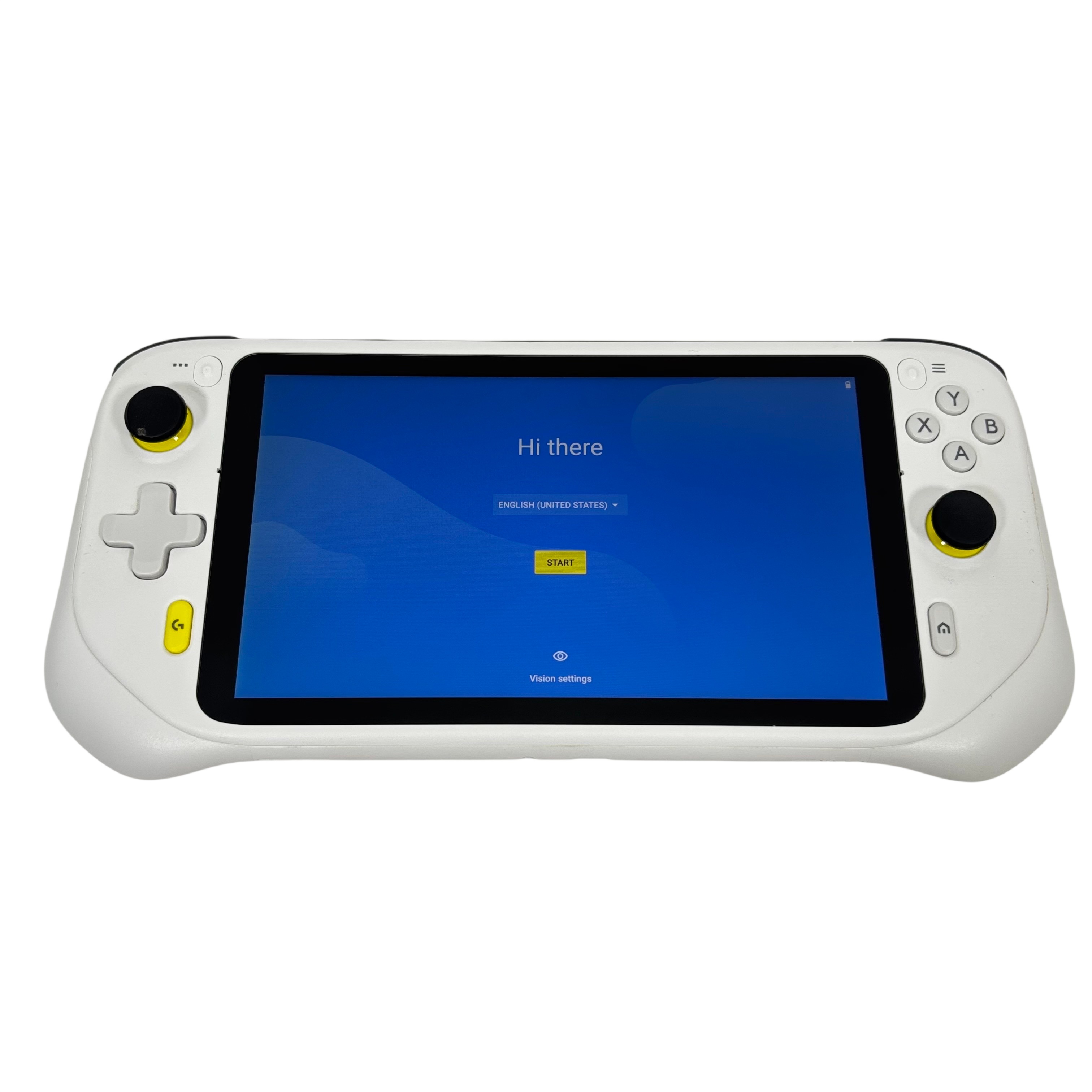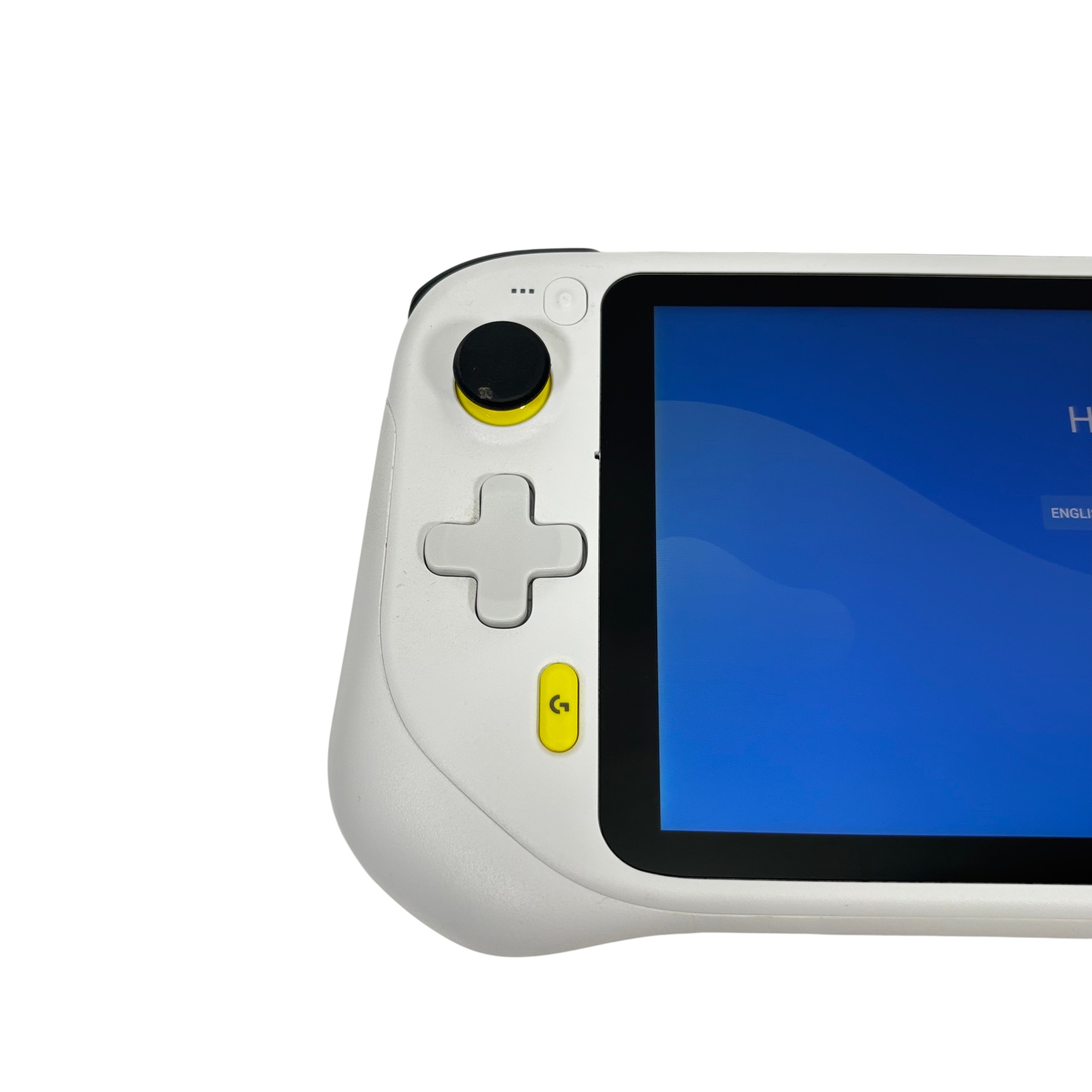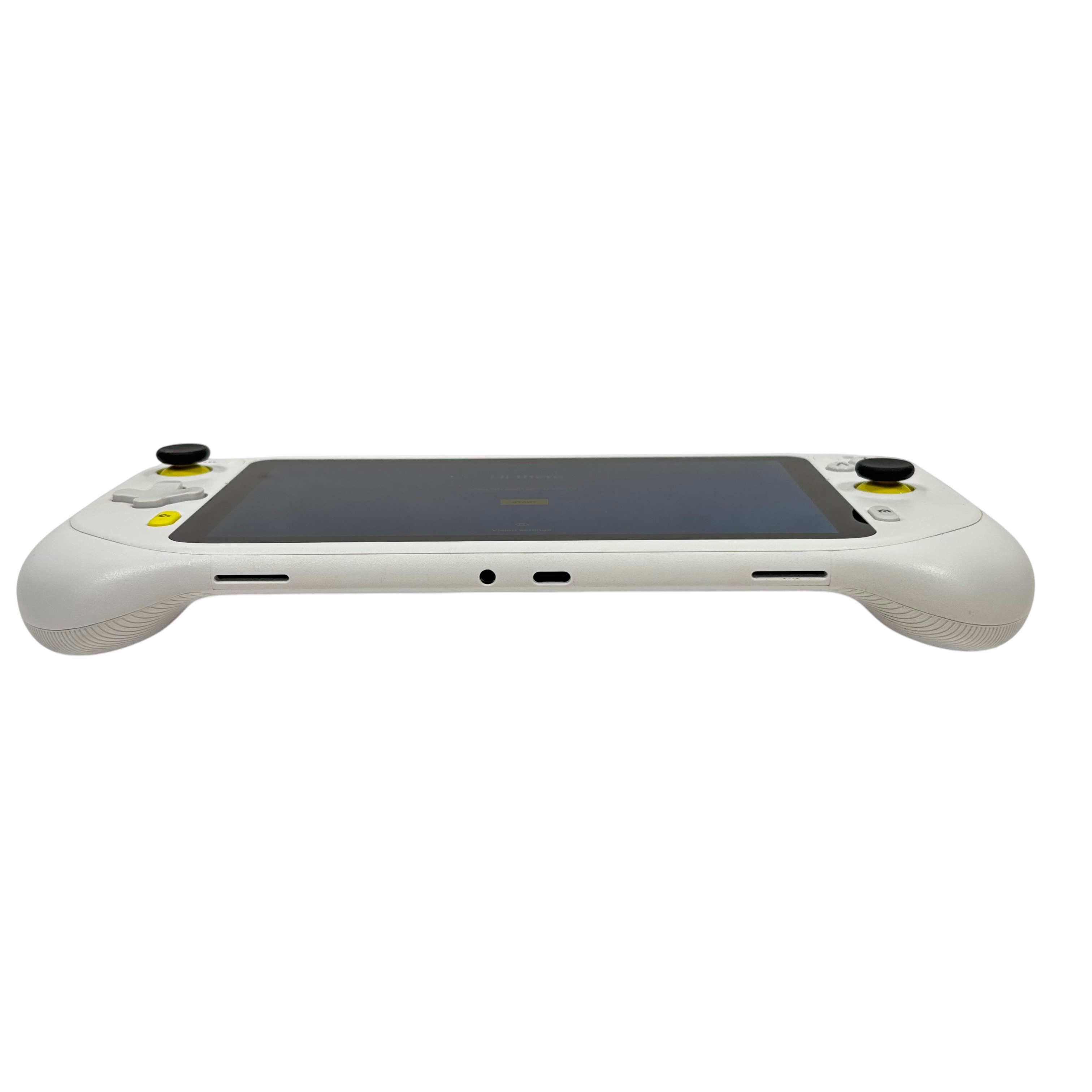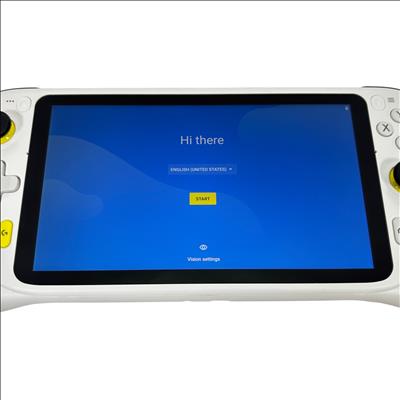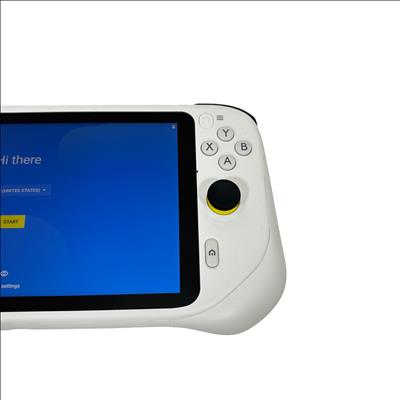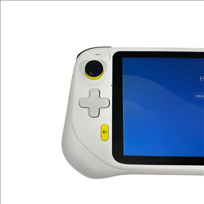 The Logitech GR0006 Cloud Gaming Handheld is a versatile portable gaming device designed for cloud-based gaming experiences. Featuring a 7-inch touchscreen and ergonomic white casing with yellow and black accents, this handheld console offers dual analog sticks, a D-pad, and ABXY buttons for precise control. Powered by a rechargeable battery and running an Android-based operating system, it enables access to a wide range of cloud gaming services. Compact and lightweight, it is ideal for gamers seeking mobility and convenience.