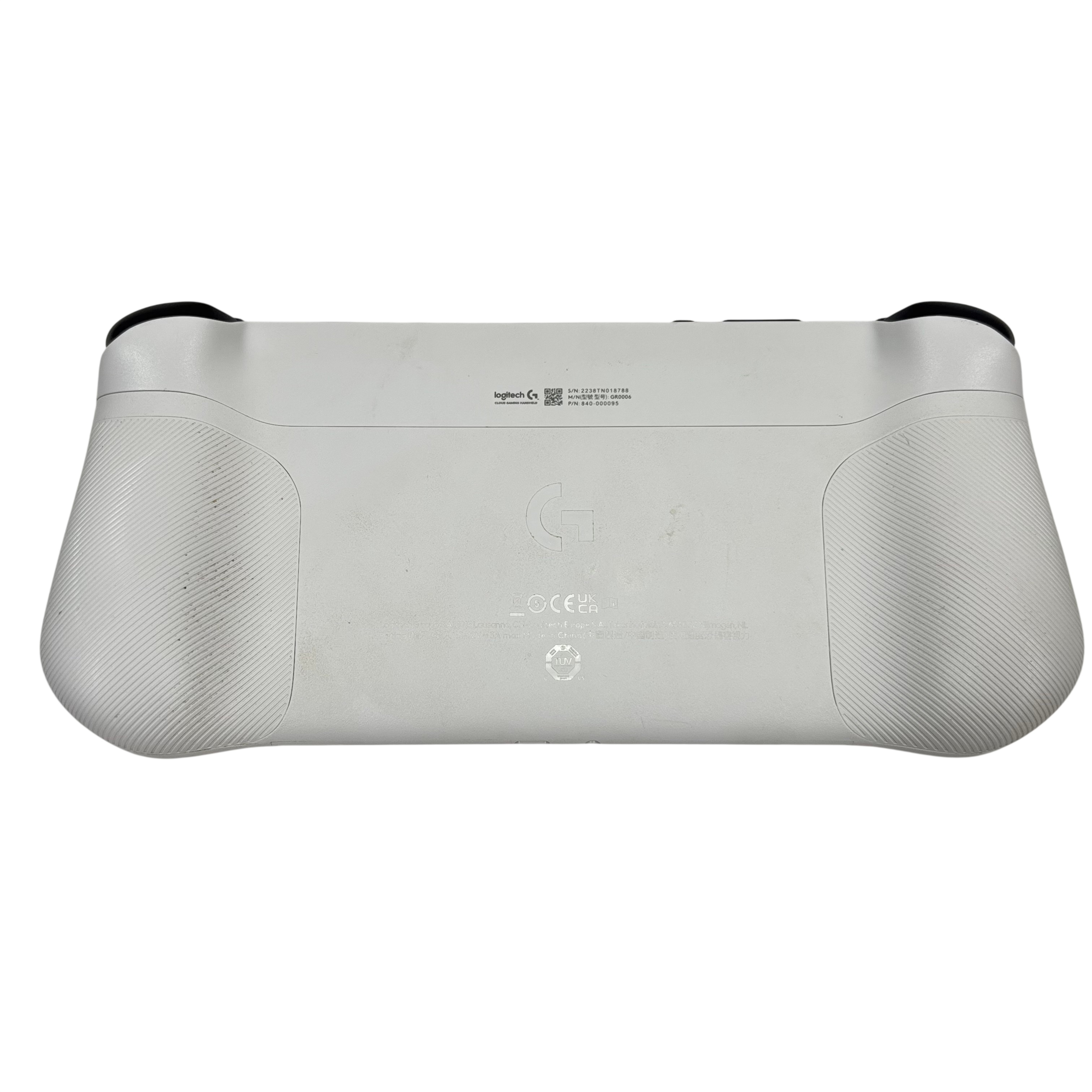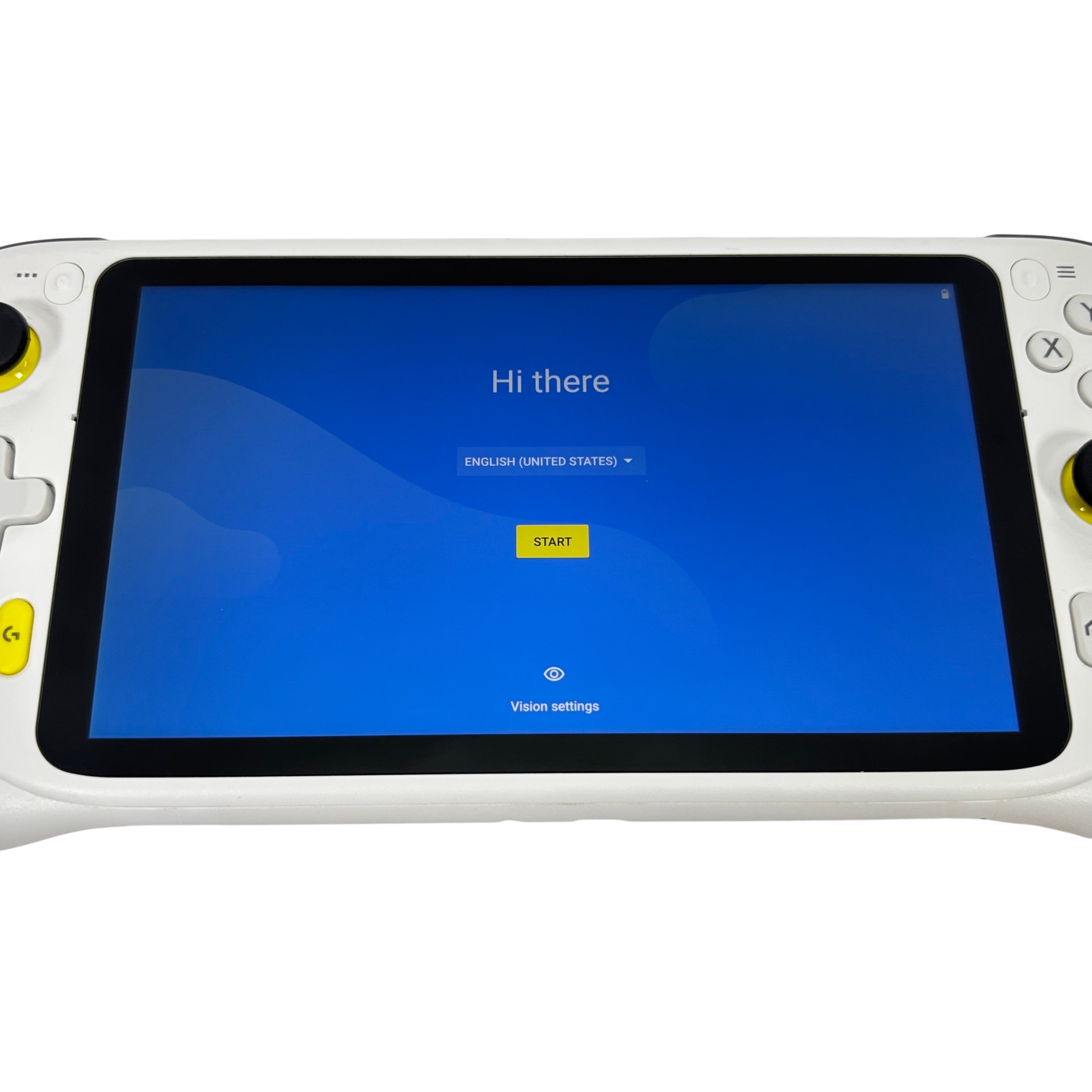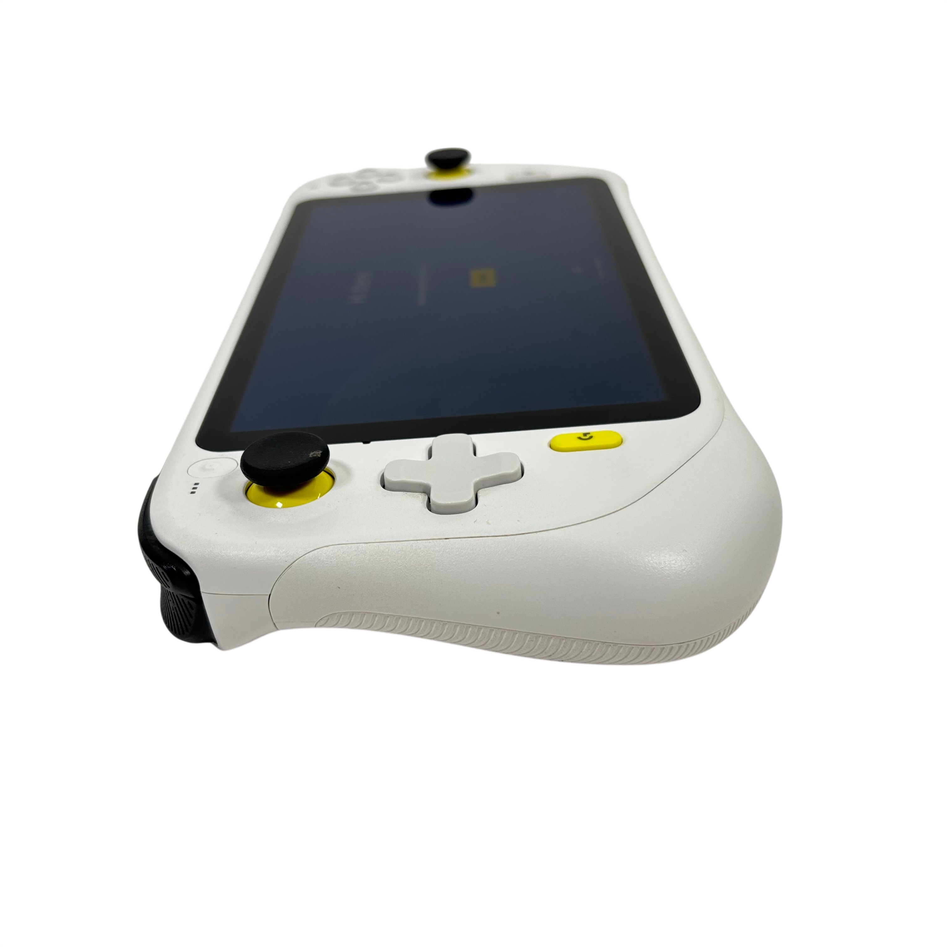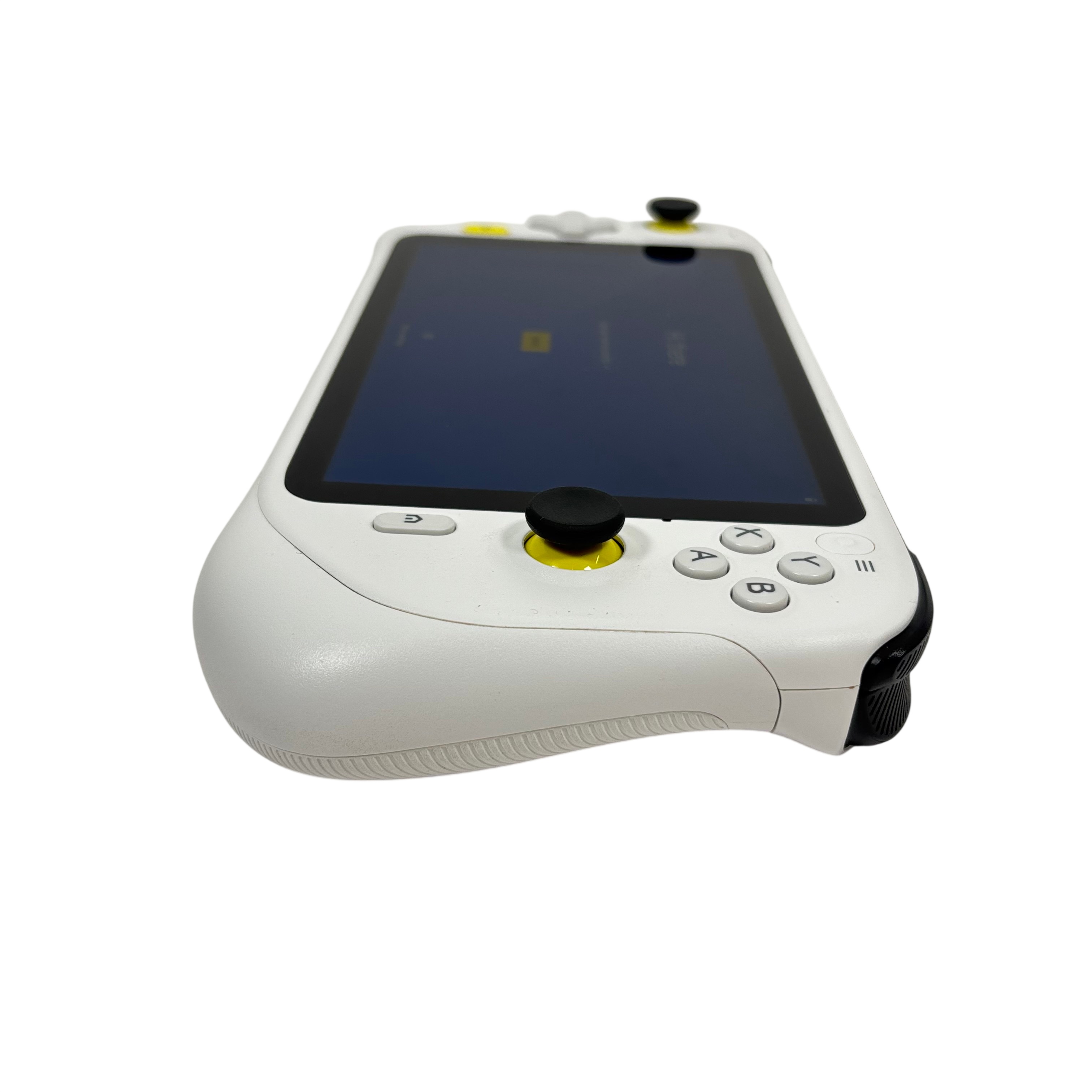 The Logitech GR0006 Cloud Gaming Handheld is a versatile portable gaming device designed for cloud-based gaming experiences. Featuring a 7-inch touchscreen and ergonomic white casing with yellow and black accents, this handheld console offers dual analog sticks, a D-pad, and ABXY buttons for precise control. Powered by a rechargeable battery and running an Android-based operating system, it enables access to a wide range of cloud gaming services. Compact and lightweight, it is ideal for gamers seeking mobility and convenience.