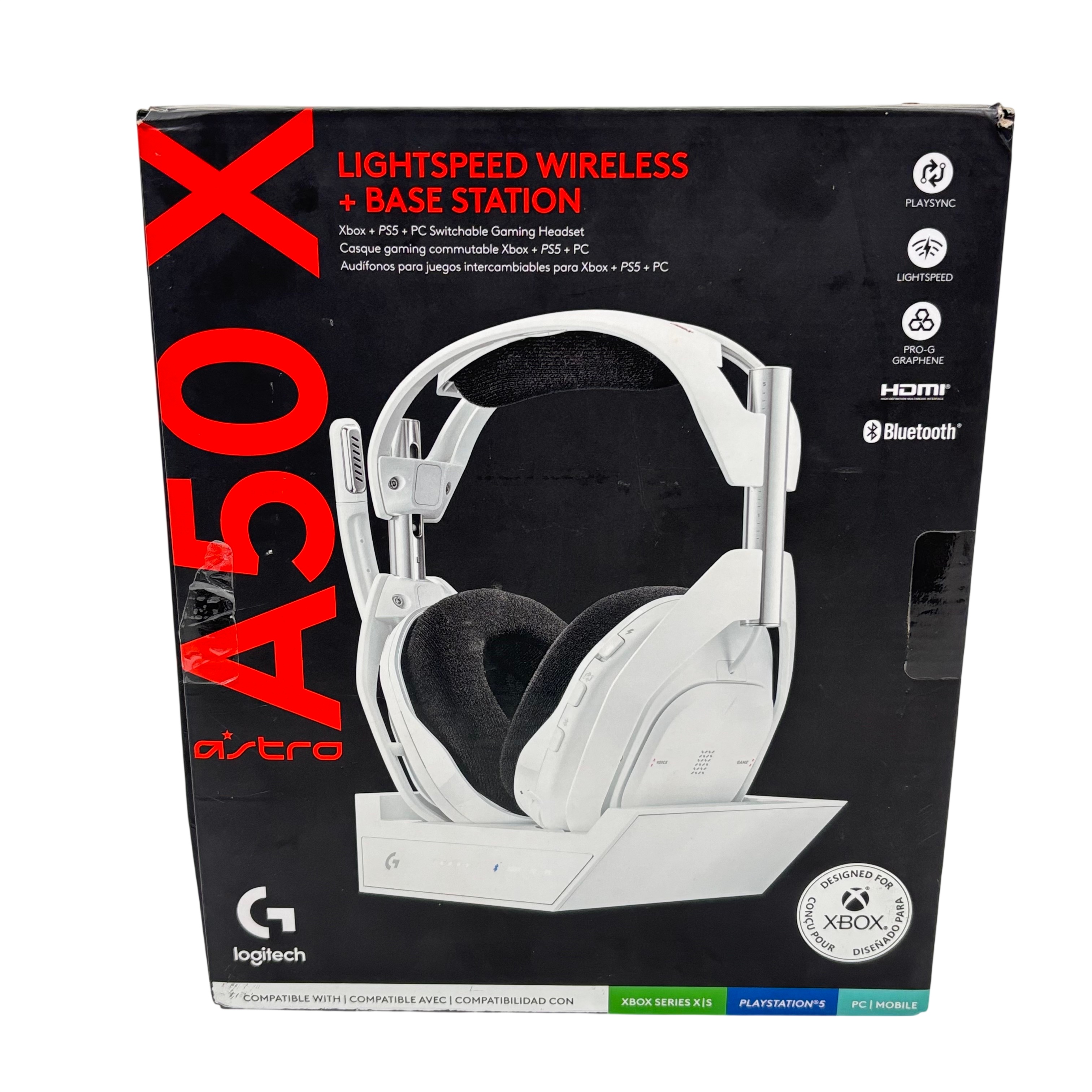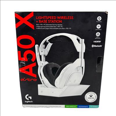 The Logitech Astro A50x Wireless Gaming Headset with Base Station offers premium audio performance and versatile compatibility with Xbox Series X|S, PlayStation 5, PC, and mobile devices. Featuring Lightspeed wireless technology and Bluetooth connectivity, this headset delivers low-latency, high-fidelity sound with Pro-G Graphene drivers. The included base station supports HDMI pass-through for seamless integration into your gaming setup. Designed for comfort and durability, the Astro A50x is ideal for immersive gaming sessions and clear communication.