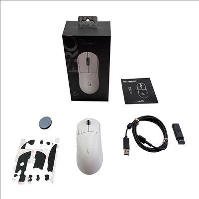 Logitech G PRO X SUPERLIGHT 2 Wireless Gaming Mouse in white delivers an ultra-lightweight design optimized for high-performance gaming with precision tracking and a seamless wireless connection. Its sleek white chassis features a black scroll wheel and button, combining style with ergonomic comfort for extended use. Engineered for esports professionals, this mouse offers exceptional responsiveness and minimal latency to enhance competitive gameplay.