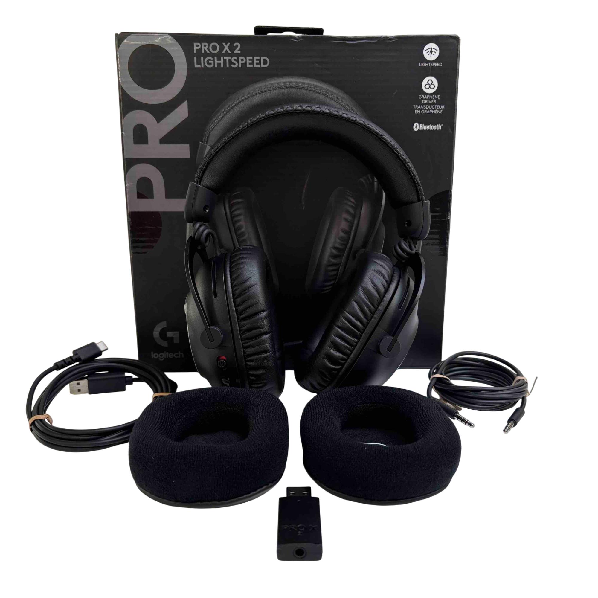 Experience unrivaled gaming performance with the Logitech G Pro X2 Lightspeed Wireless Gaming Headset. Featuring cutting-edge graphene drivers and seamless Bluetooth connectivity, these sleek black headphones deliver crystal-clear audio and immersive soundscapes for every gaming session. Elevate your gaming setup with this new in box masterpiece, designed for gamers who demand the best quality and style.
