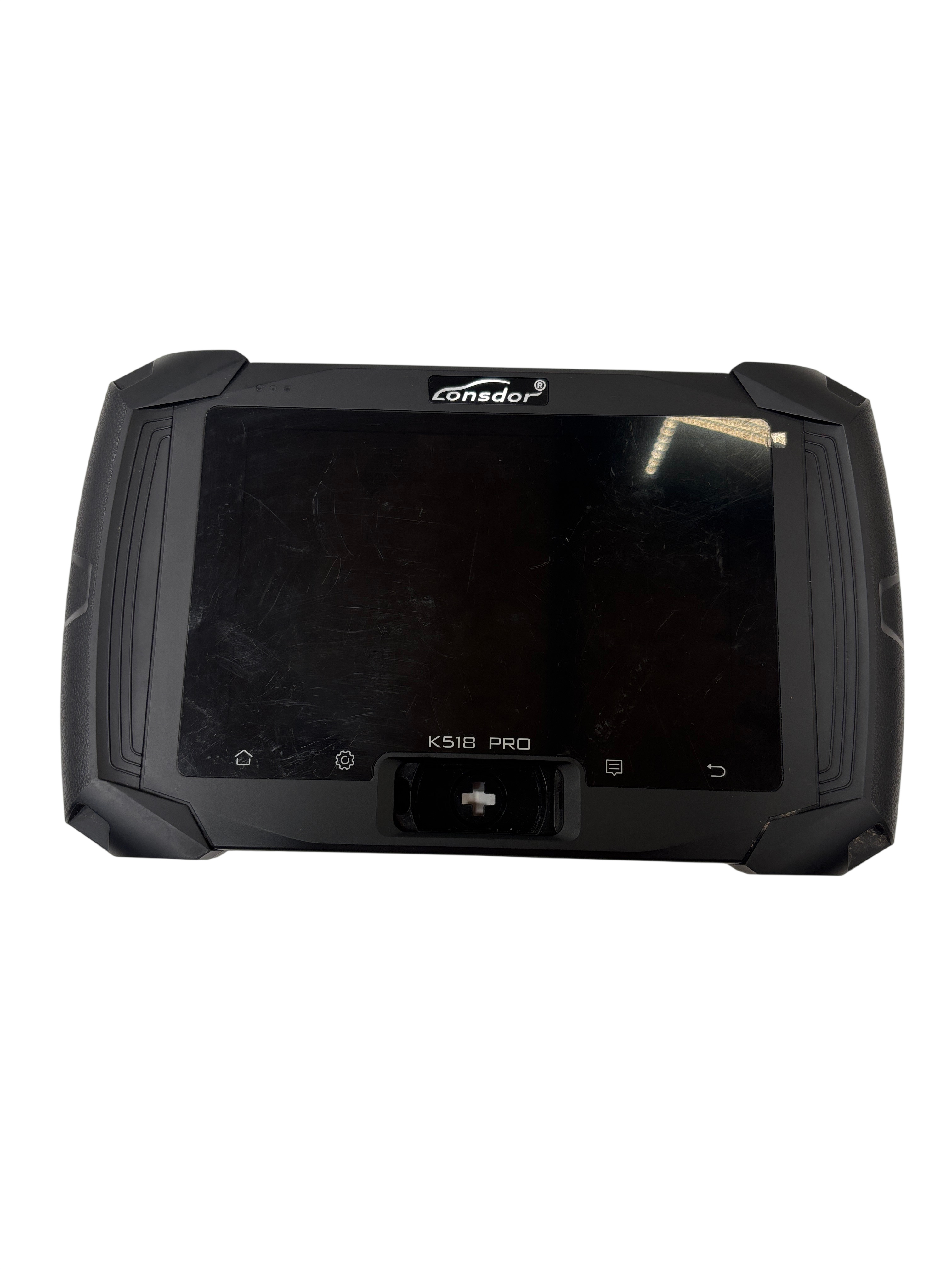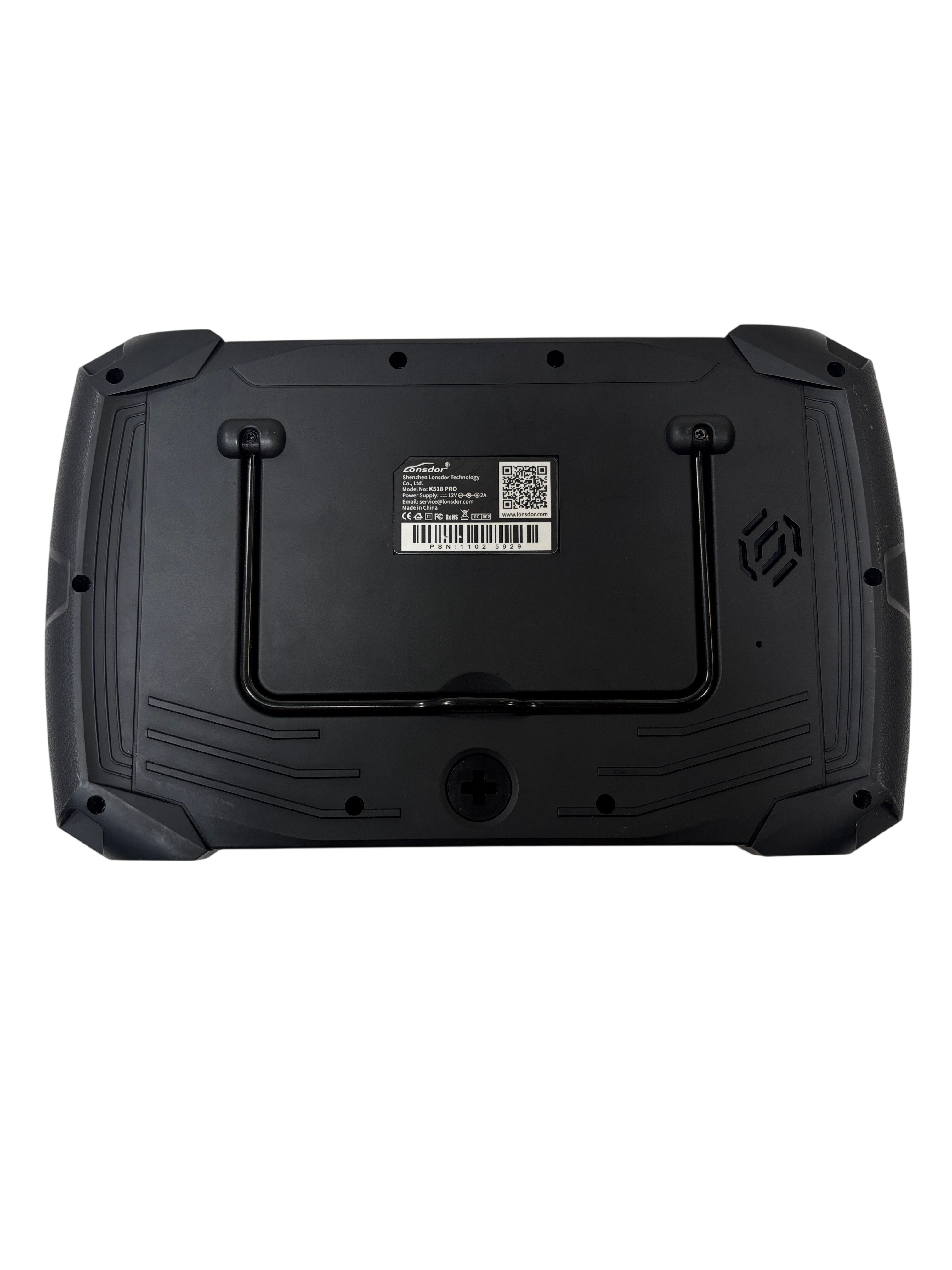The Lonsdor K518 PRO All in One Key Programmer is a professional-grade device designed for vehicle diagnostics and key programming. Powered by a 12V DC, 2A supply, this handheld tool features multiple connectivity options including PS2, DB15, T-Flash, and USB Type-C ports for versatile use. Its rugged black design with protective rubber corners ensures durability in workshop environments. Ideal for automotive technicians, the K518 PRO offers reliable performance for a wide range of diagnostic tasks.