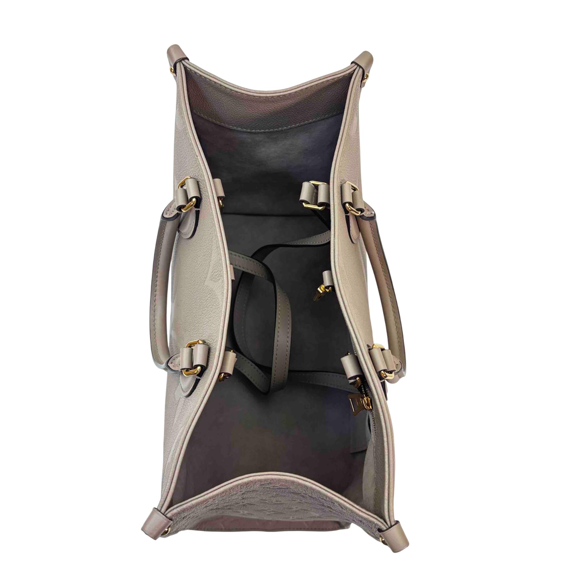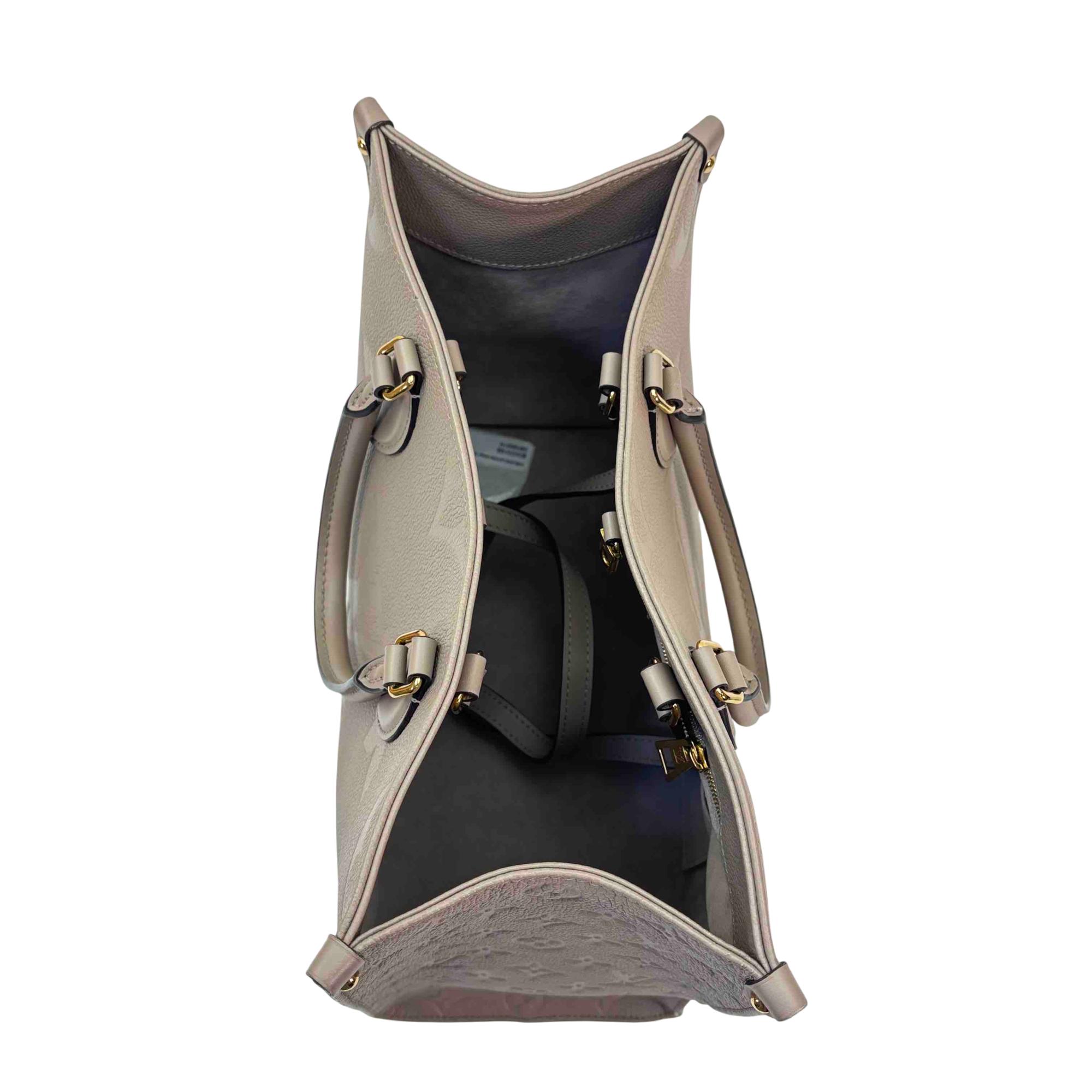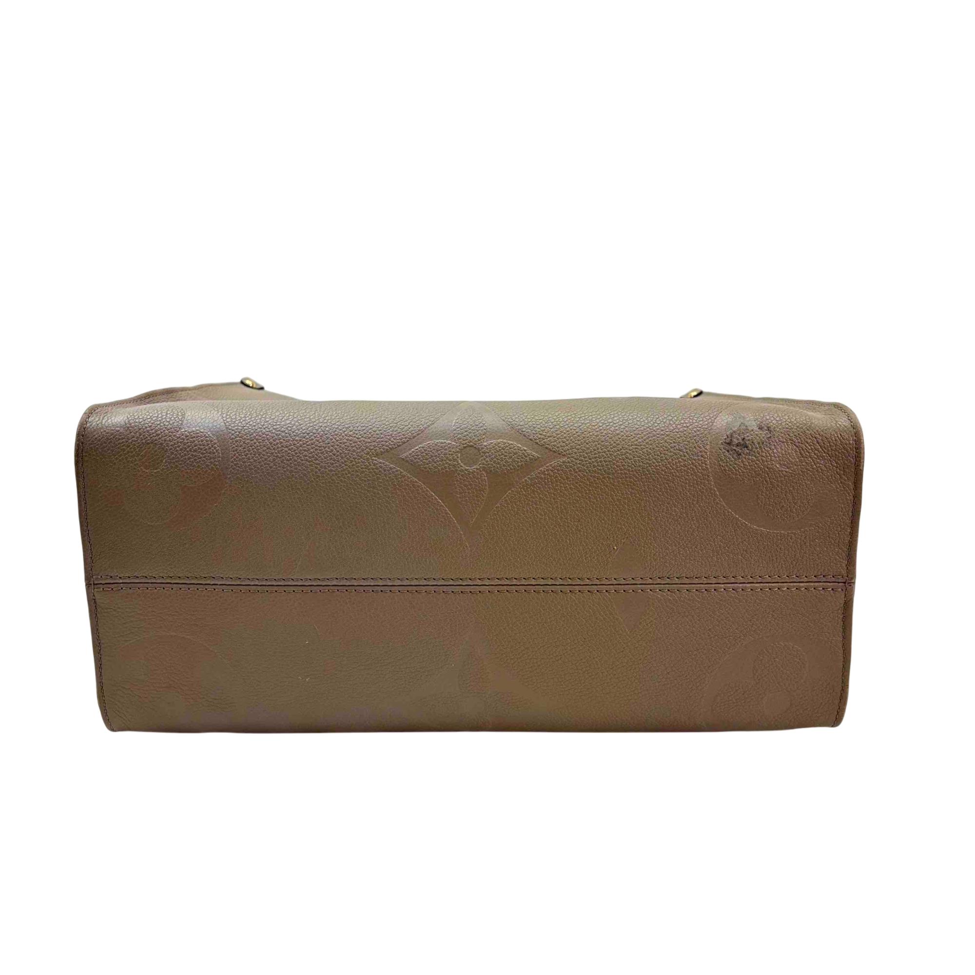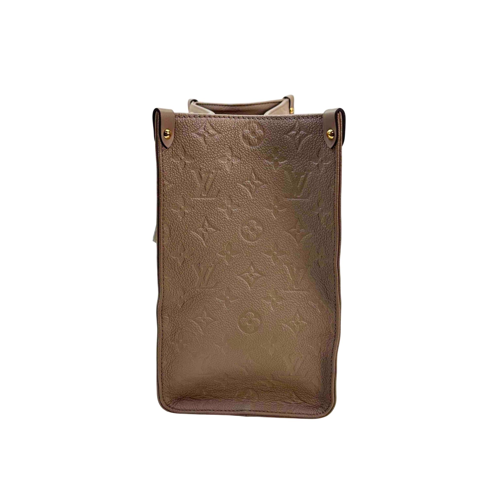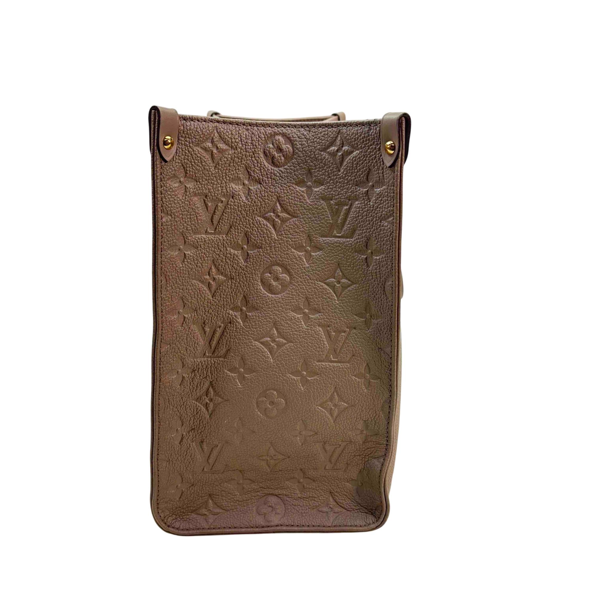 Elevate your style with the Louis Vuitton Onthego Tote Bag, crafted from luxurious Monogram Empreinte Leather. This statement piece, in a rich brown hue, features elegant black handles and iconic Louis Vuitton branding, making it the perfect companion for both everyday errands and special occasions. Its spacious interior and impeccable design will keep you effortlessly chic and organized.