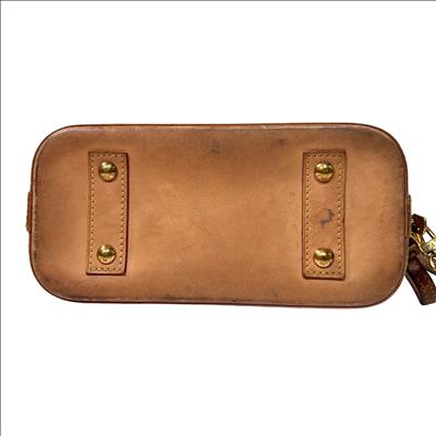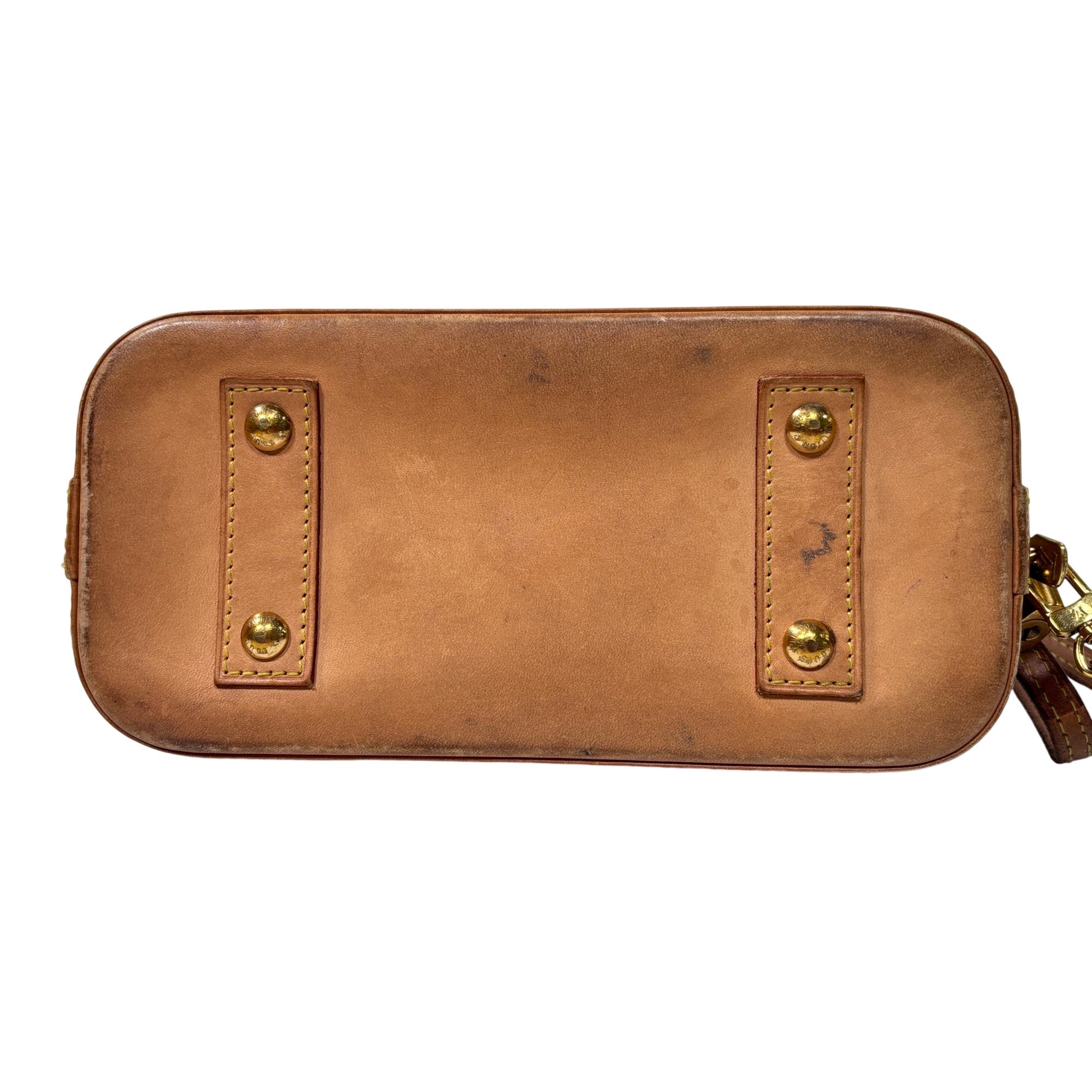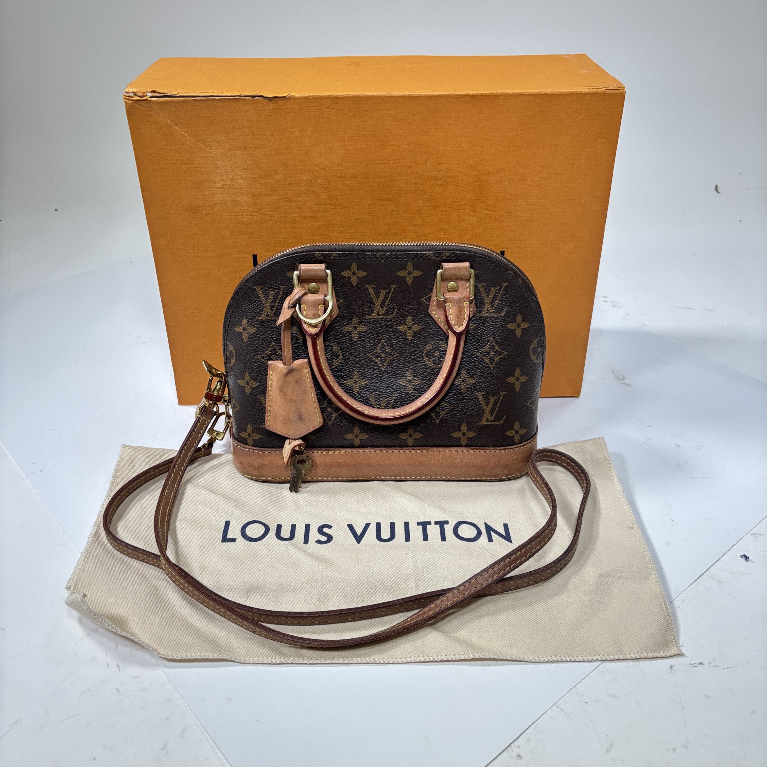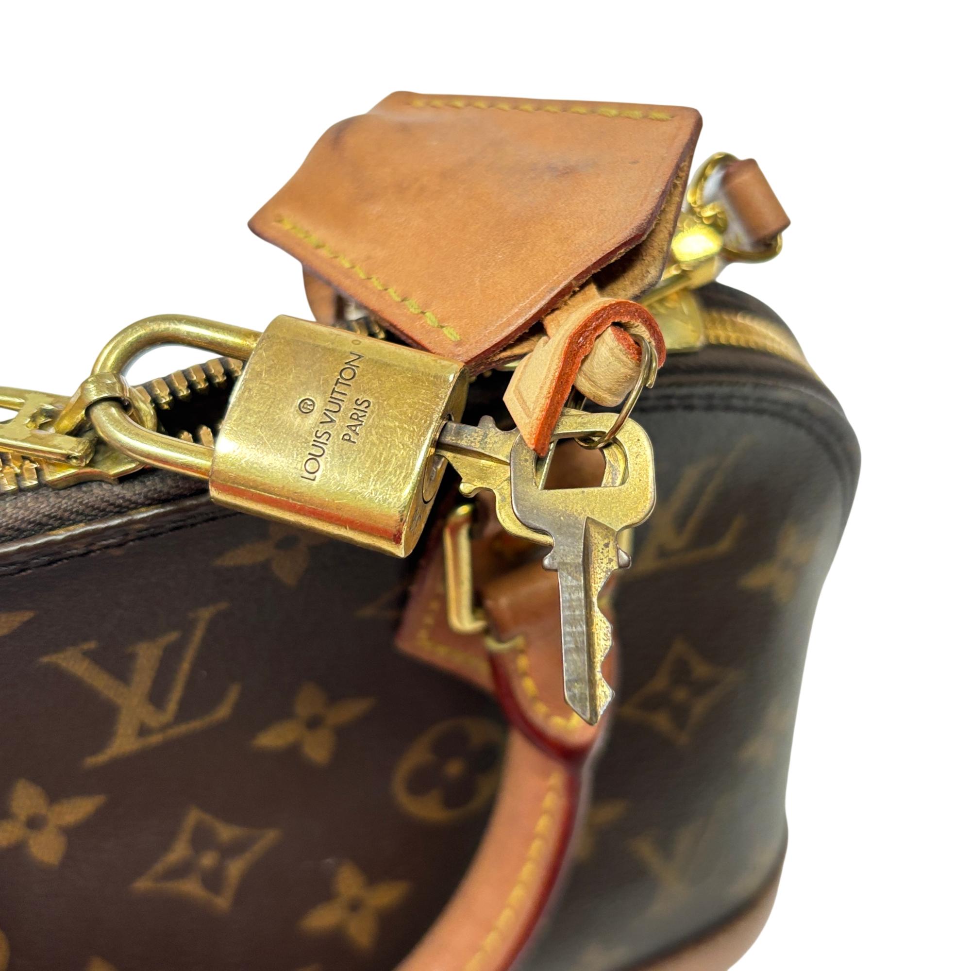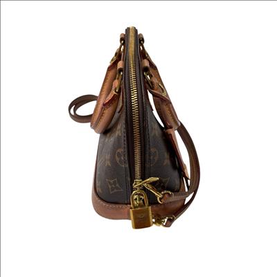 Louis Vuitton Alma BB Monogram Canvas Handbag features a compact and elegant design crafted from signature monogram canvas with natural cowhide leather trim. This small handbag includes a structured silhouette with dual top handles and a detachable shoulder strap, making it versatile for both hand carry and shoulder wear. Its detailed brass hardware and leather accents add a luxurious touch to this timeless accessory ideal for everyday use or special occasions.