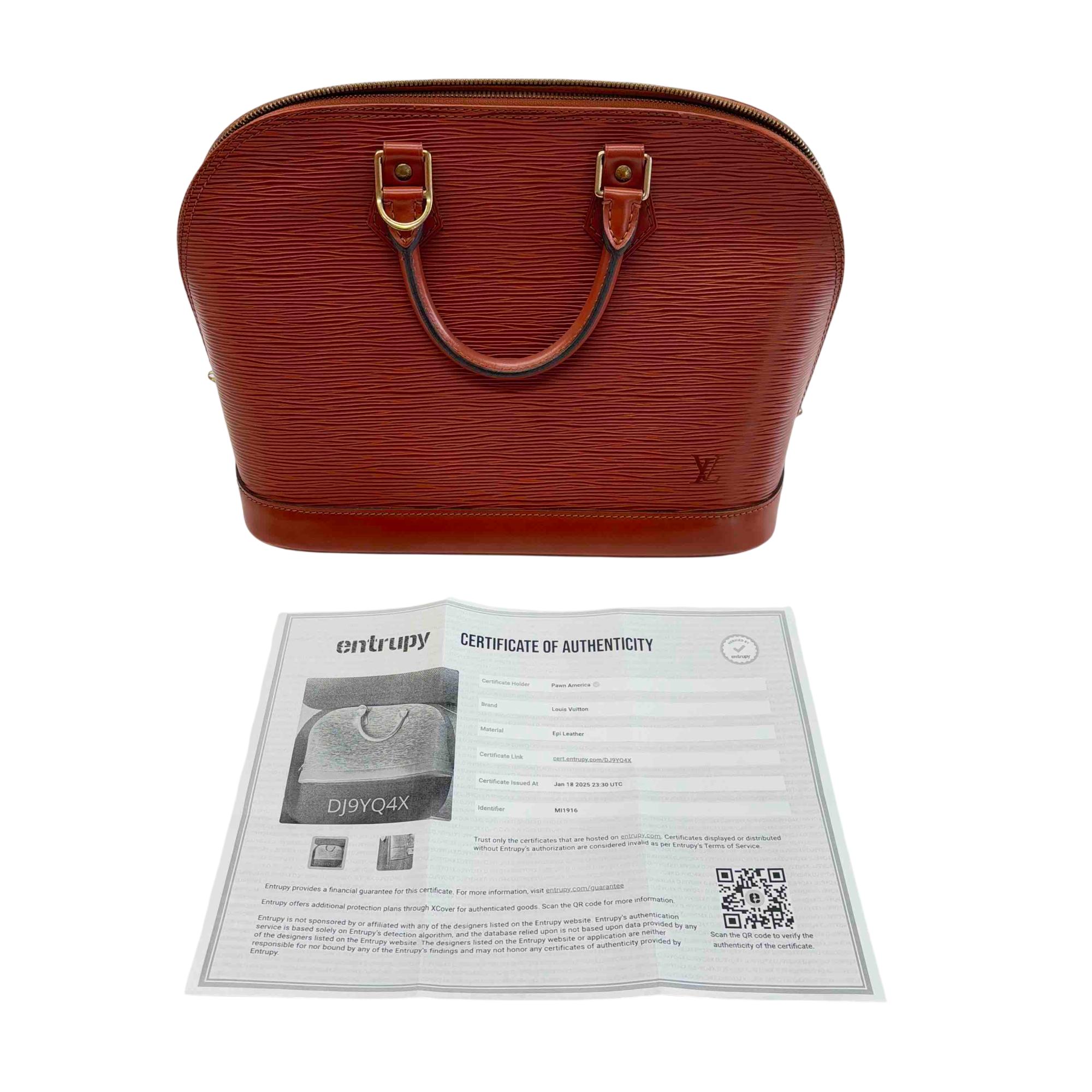 Experience the timeless elegance of the Louis Vuitton Alma Mll916, crafted from luxurious Epi Leather. This genuine designer handbag combines style and sophistication, perfect for any fashion-forward individual. The item comes with a Certificate of Authenticity, ensuring your investment in this iconic accessory.