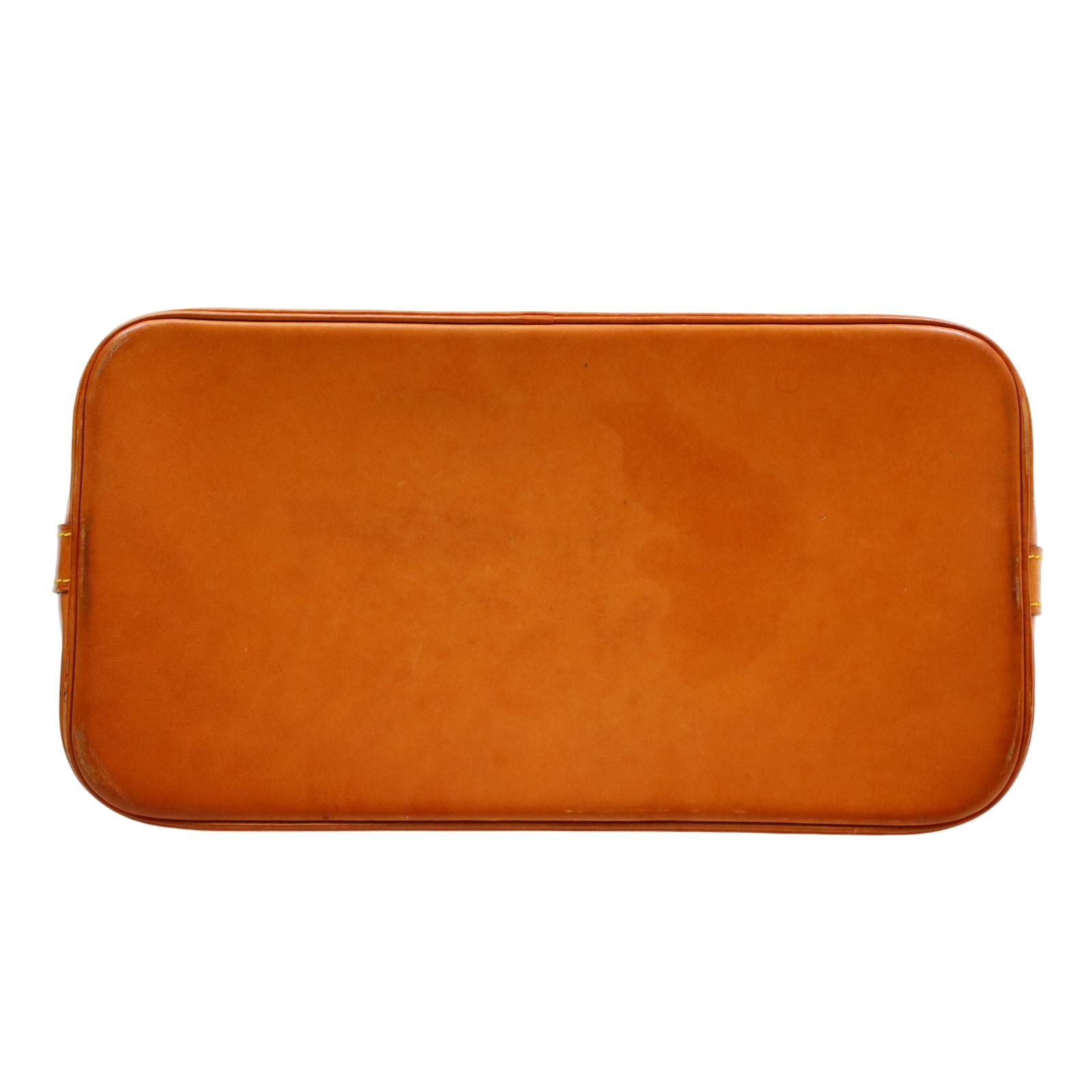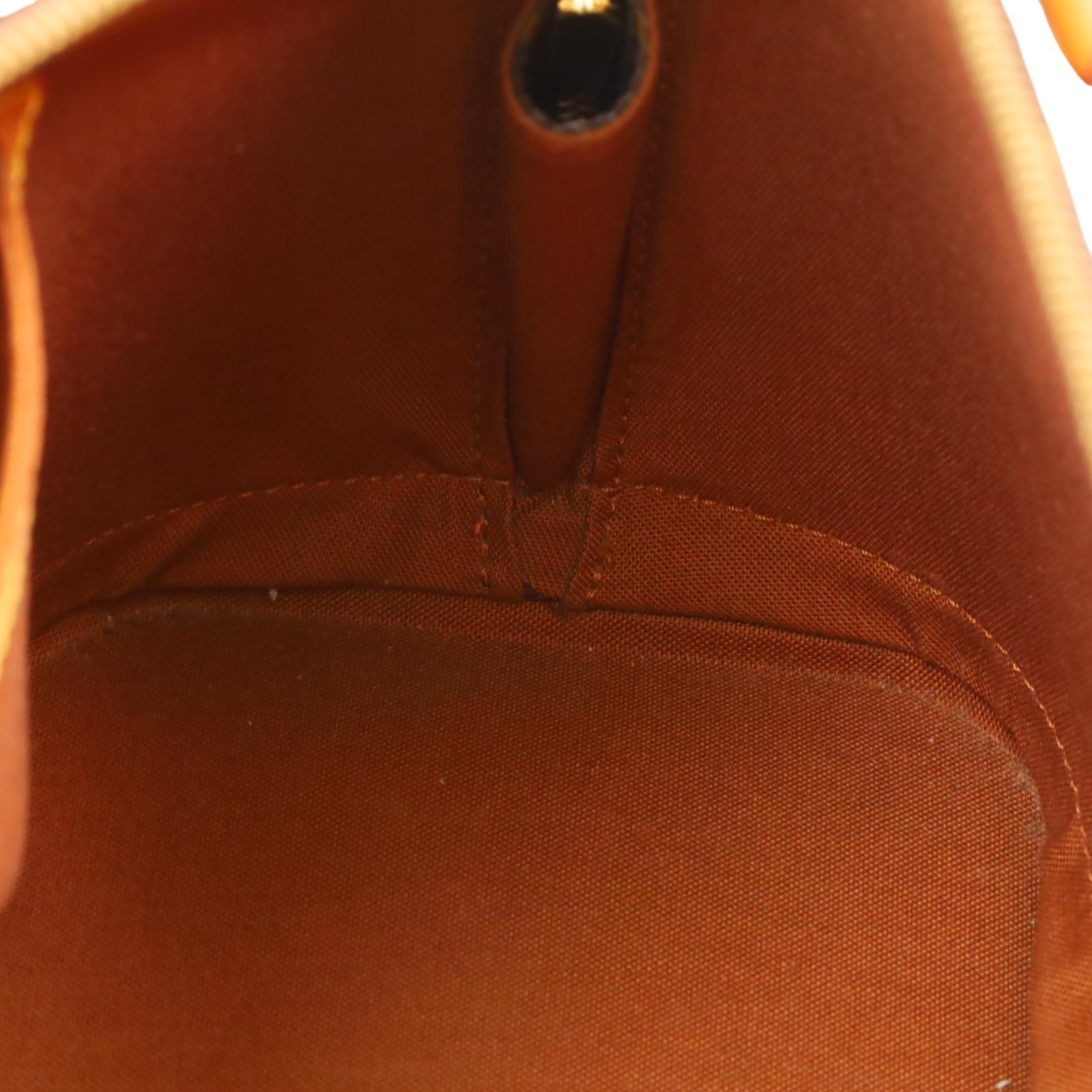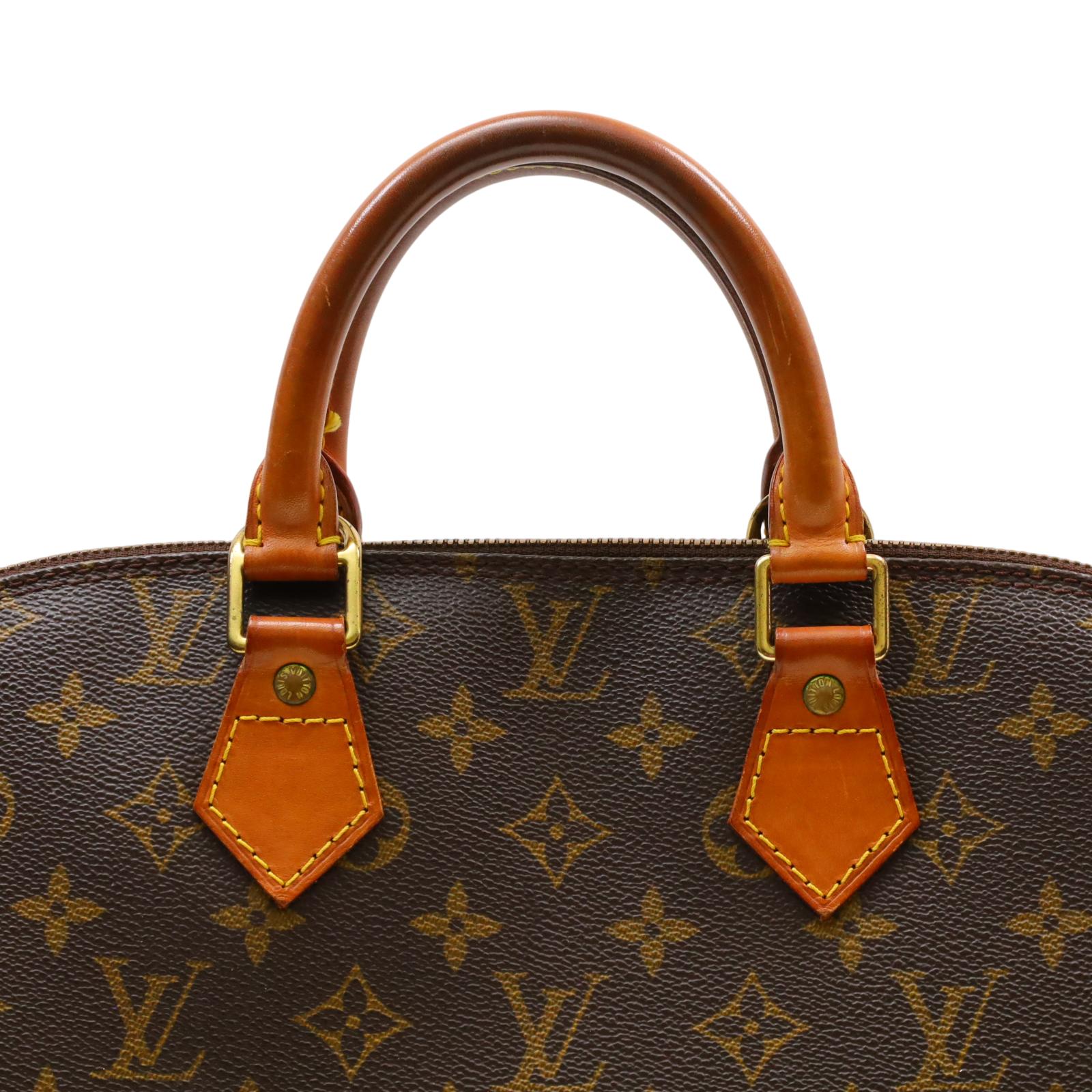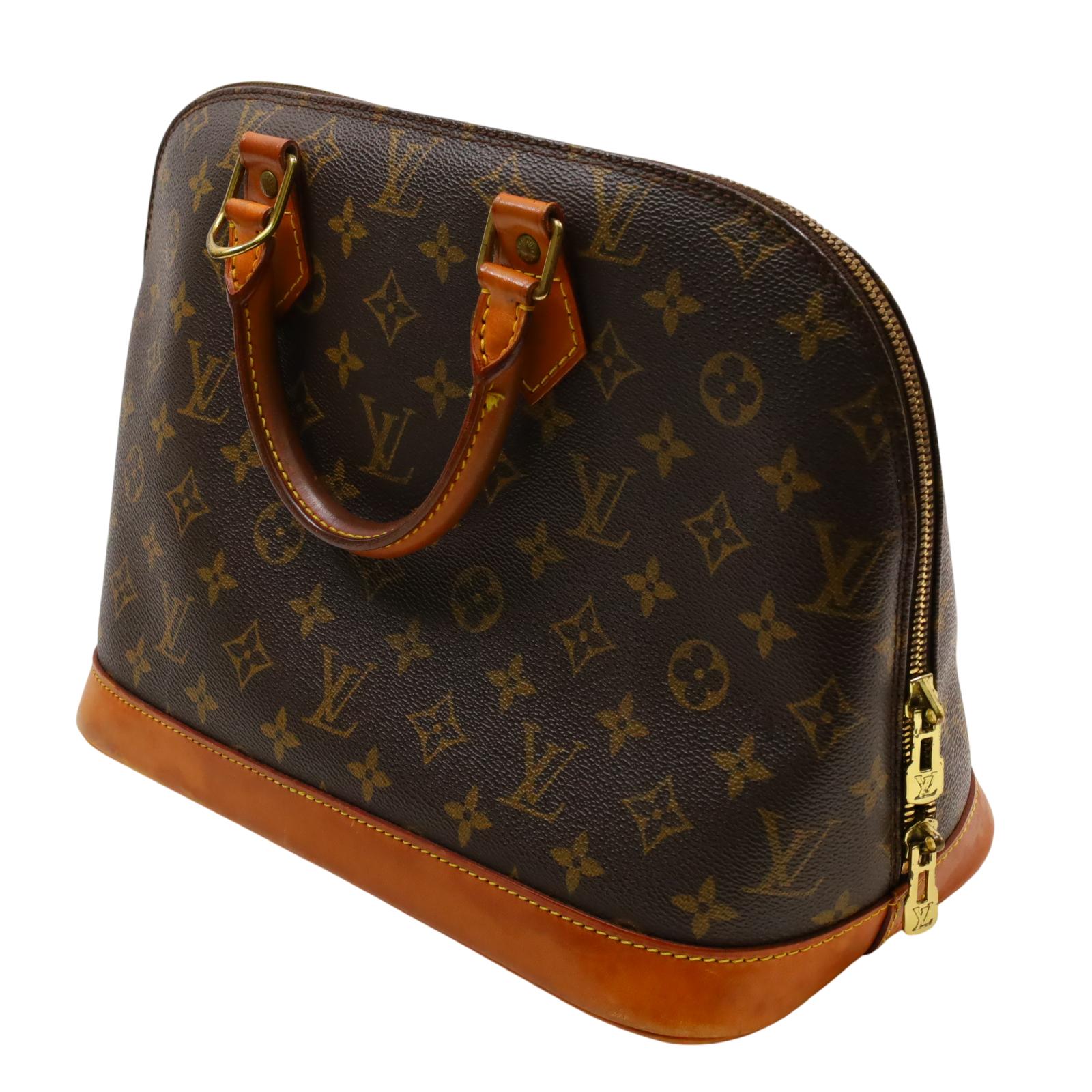 Constructed from signature monogram coated canvas and features natural vachetta leather trim, including rolled top handles and a structured base. Gold-tone hardware accents the exterior, while a wrap-around zipper secures the main compartment. Inside, the brown fabric-lined interior includes patch pockets for small item organization. Measuring approximately 12 inches in base length, 9.25 inches in height, and 6.5 inches in width, with a 3.25-inch handle drop, this structured design offers a timeless and recognizable silhouette.