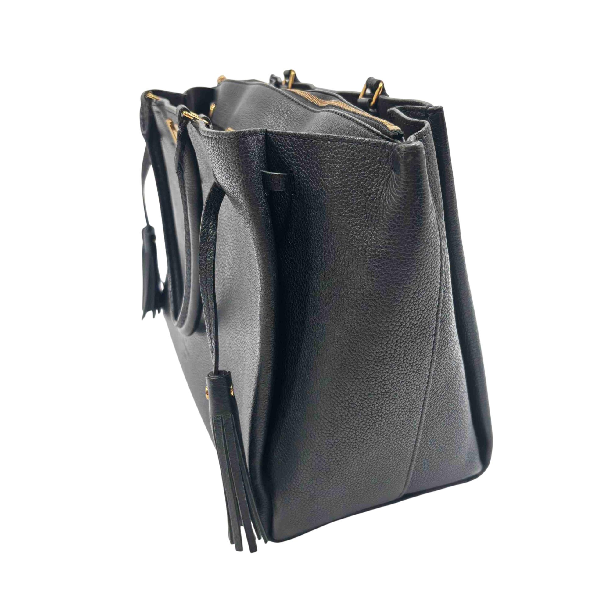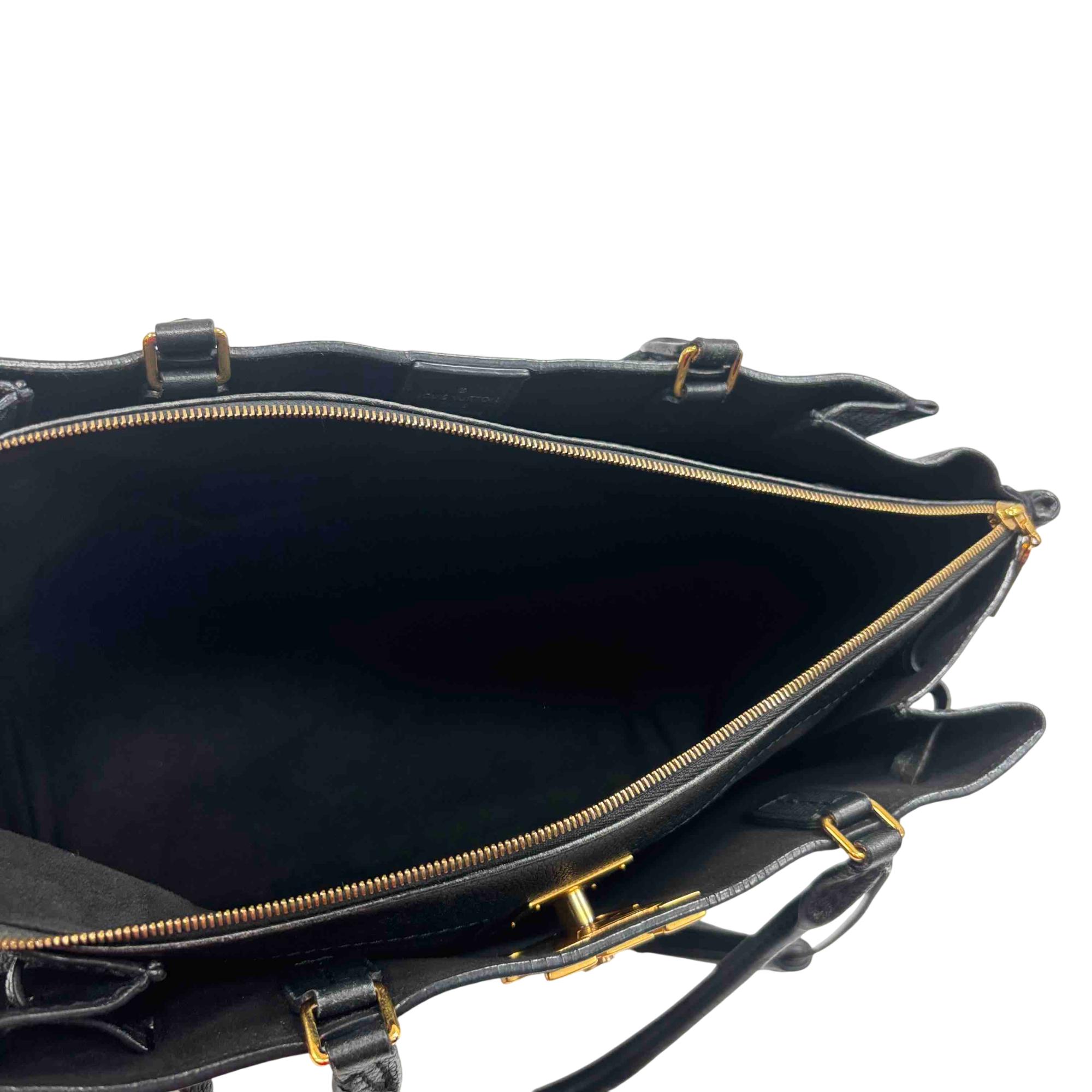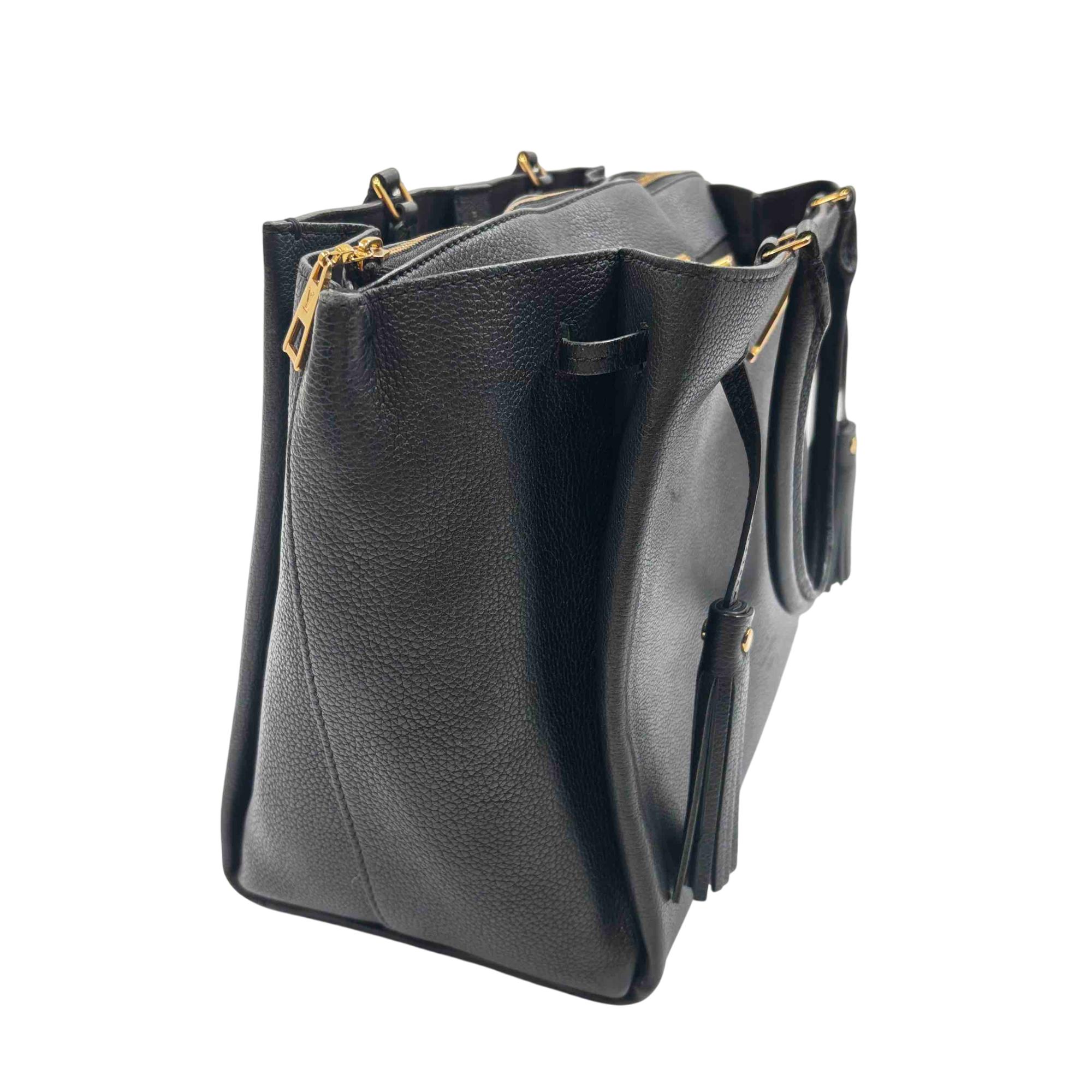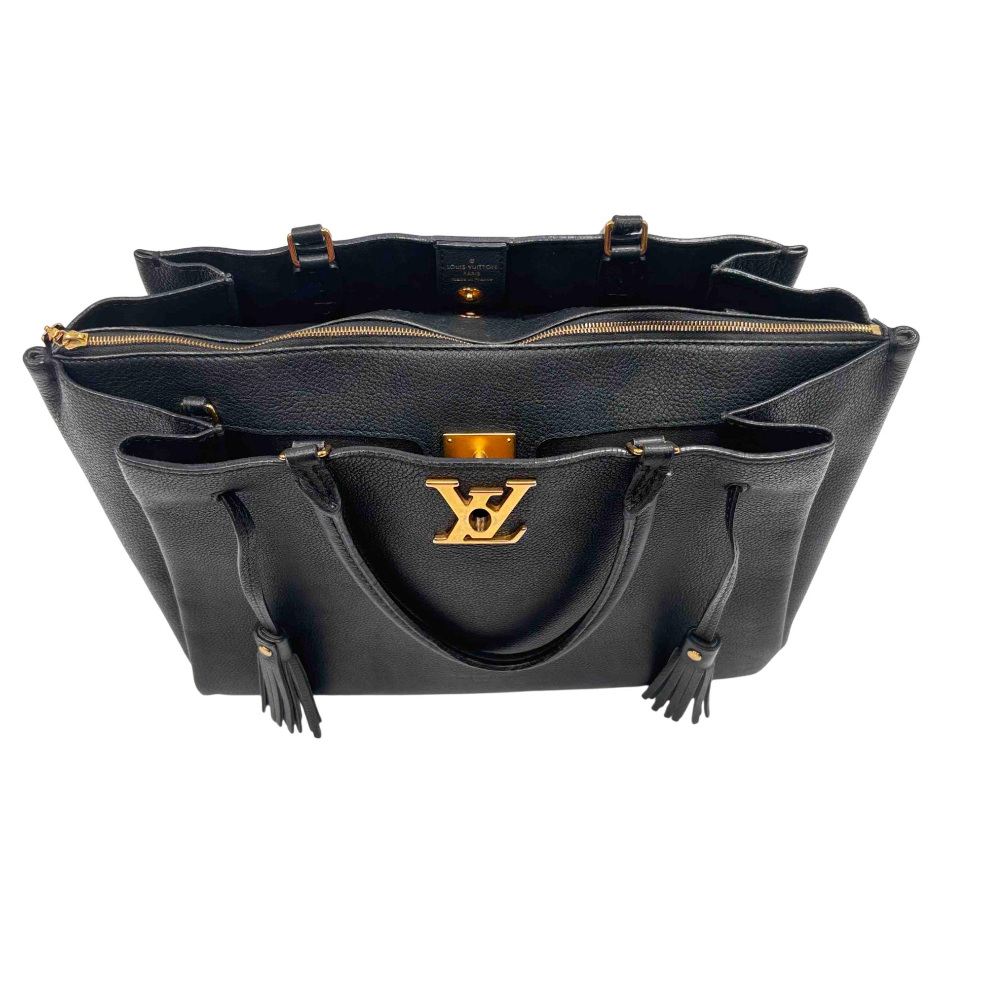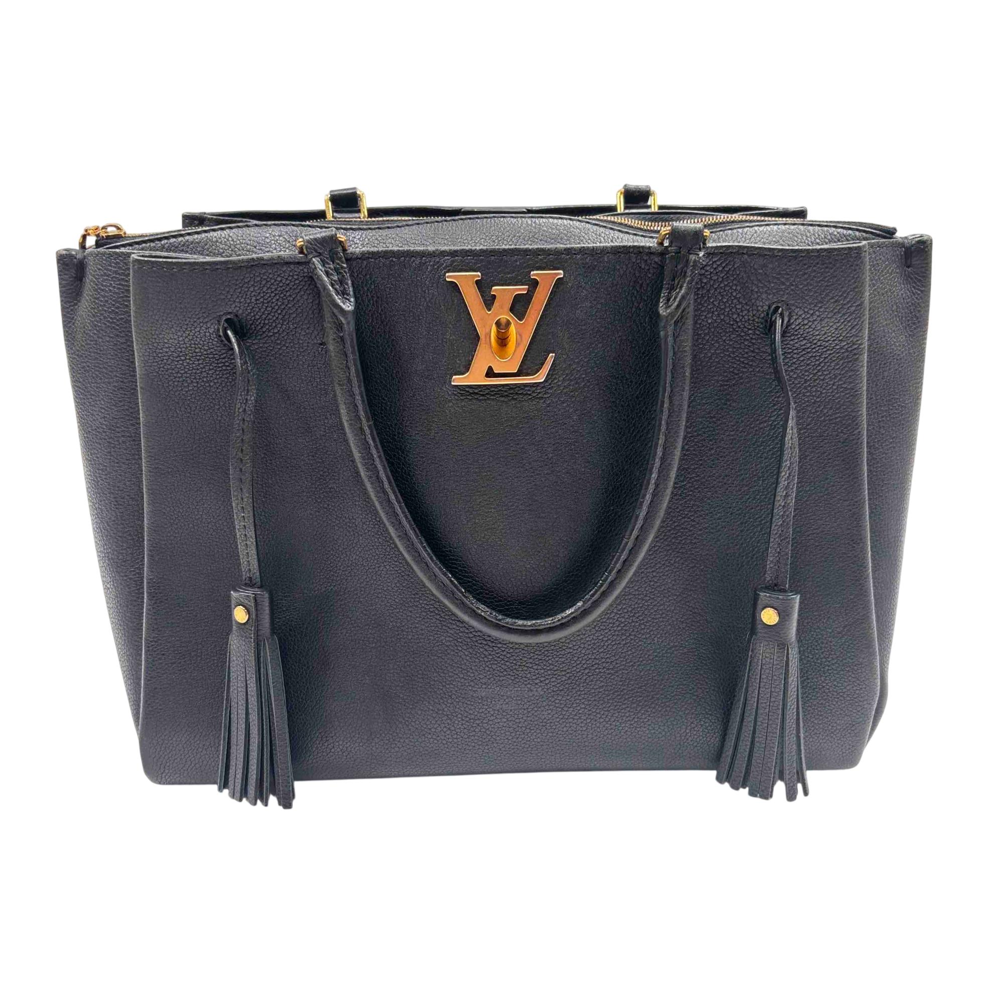 Elevate your style with the Louis Vuitton Black Leather Lockmeto Tote Bag, a perfect blend of luxury and functionality. Crafted from premium black leather, this elegant tote features striking gold accents and a chic tassel detail, providing a timeless yet modern look. Ideal for any occasion, this bag is both spacious and stylish, making it the ultimate accessory for the fashion-conscious individual.