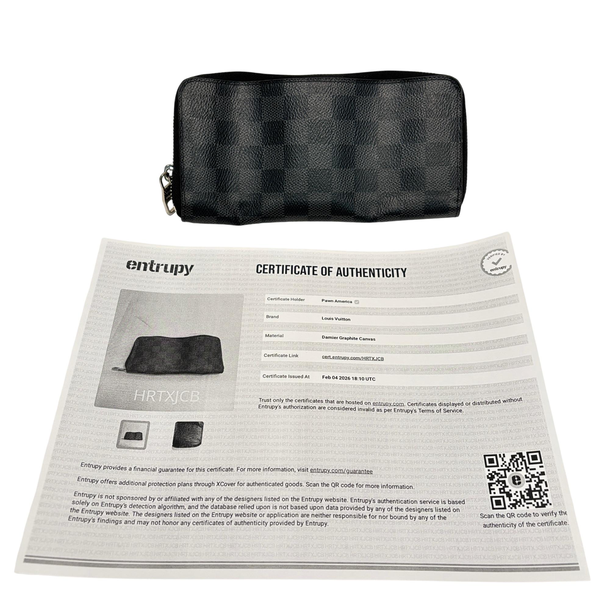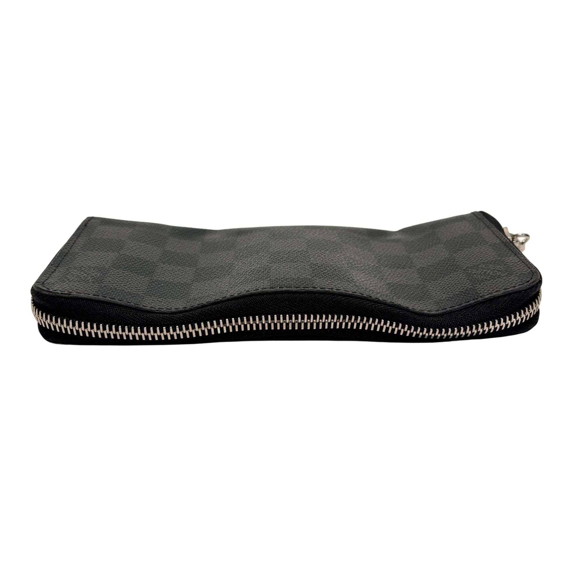 Louis Vuitton Damier Graphite Zippy Coin Purse Wallet features a sleek design crafted from durable Damier Graphite canvas with a distinctive checkered pattern in black and grey tones. This zippered wallet offers secure storage with a streamlined silhouette, making it an ideal accessory for carrying coins and essentials in style.