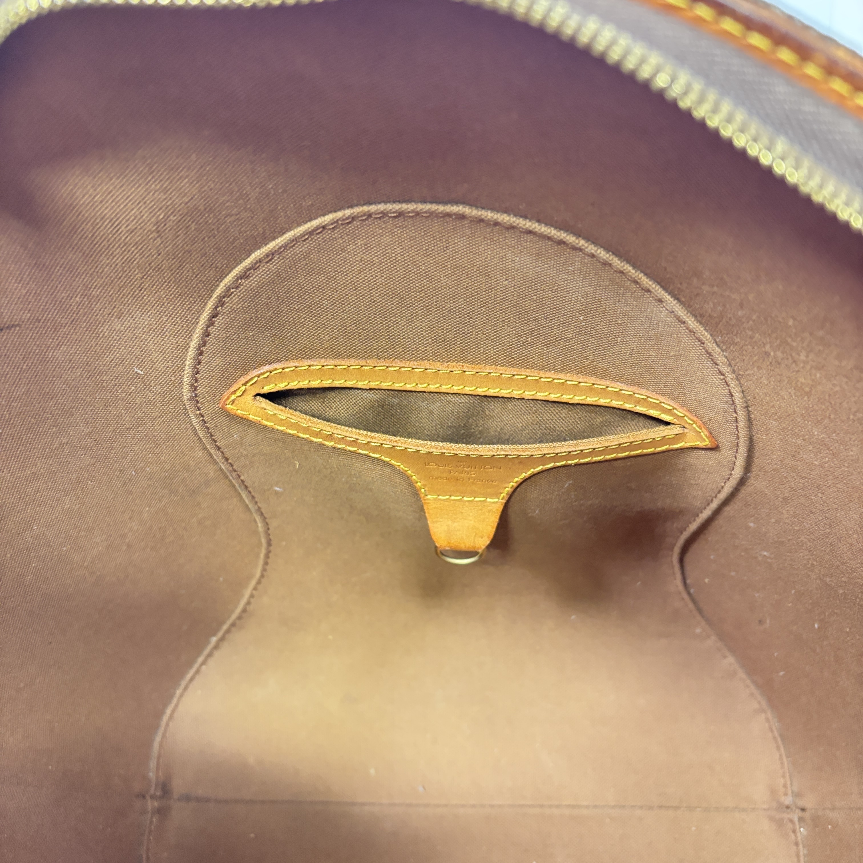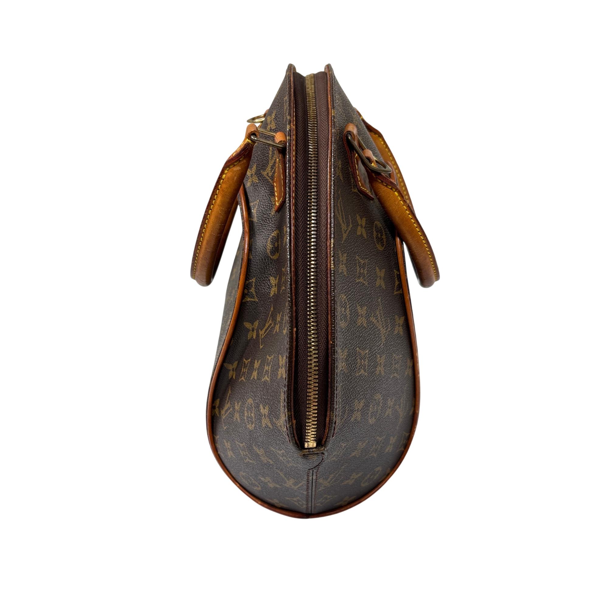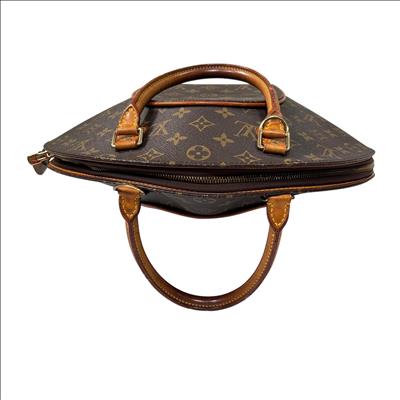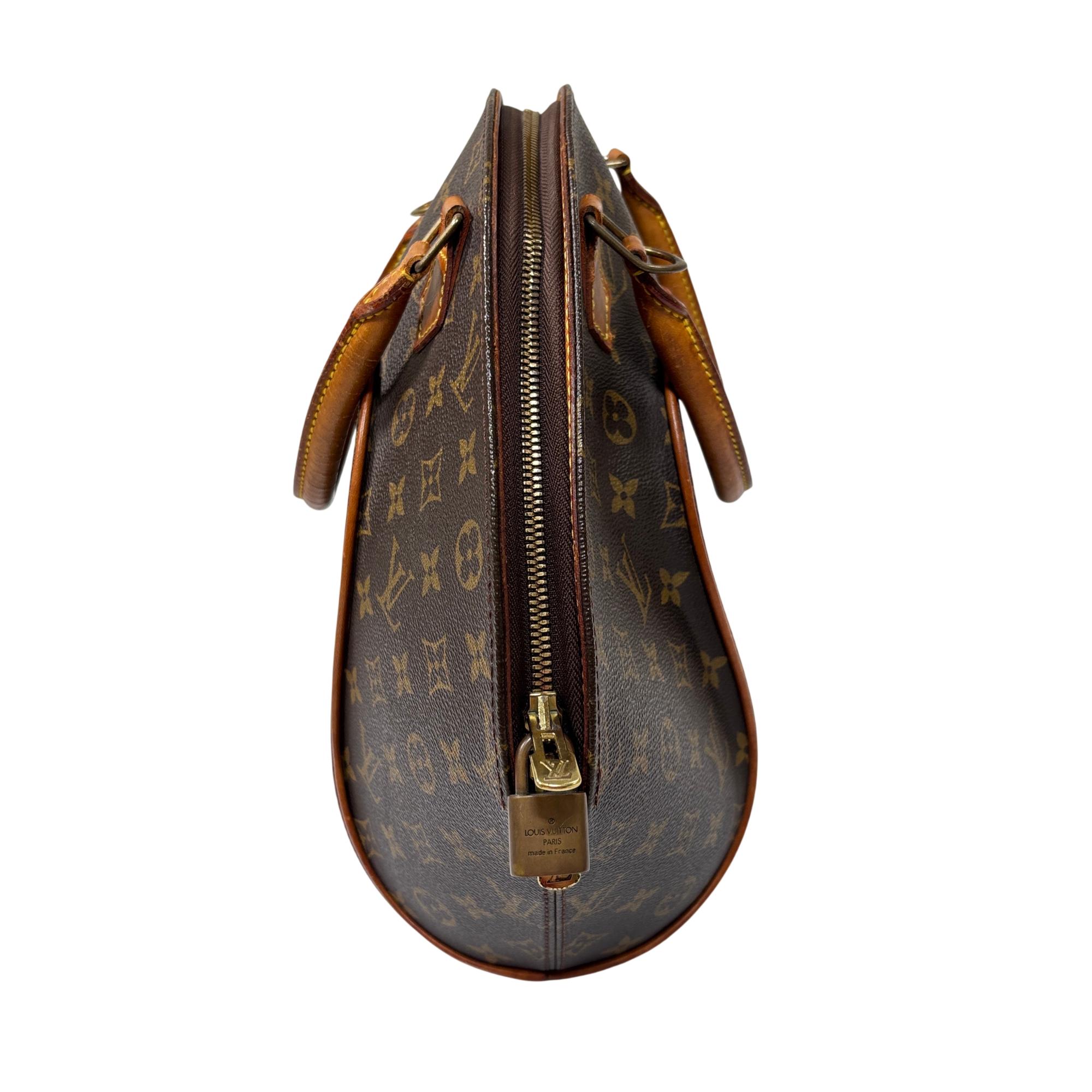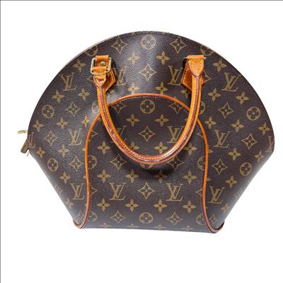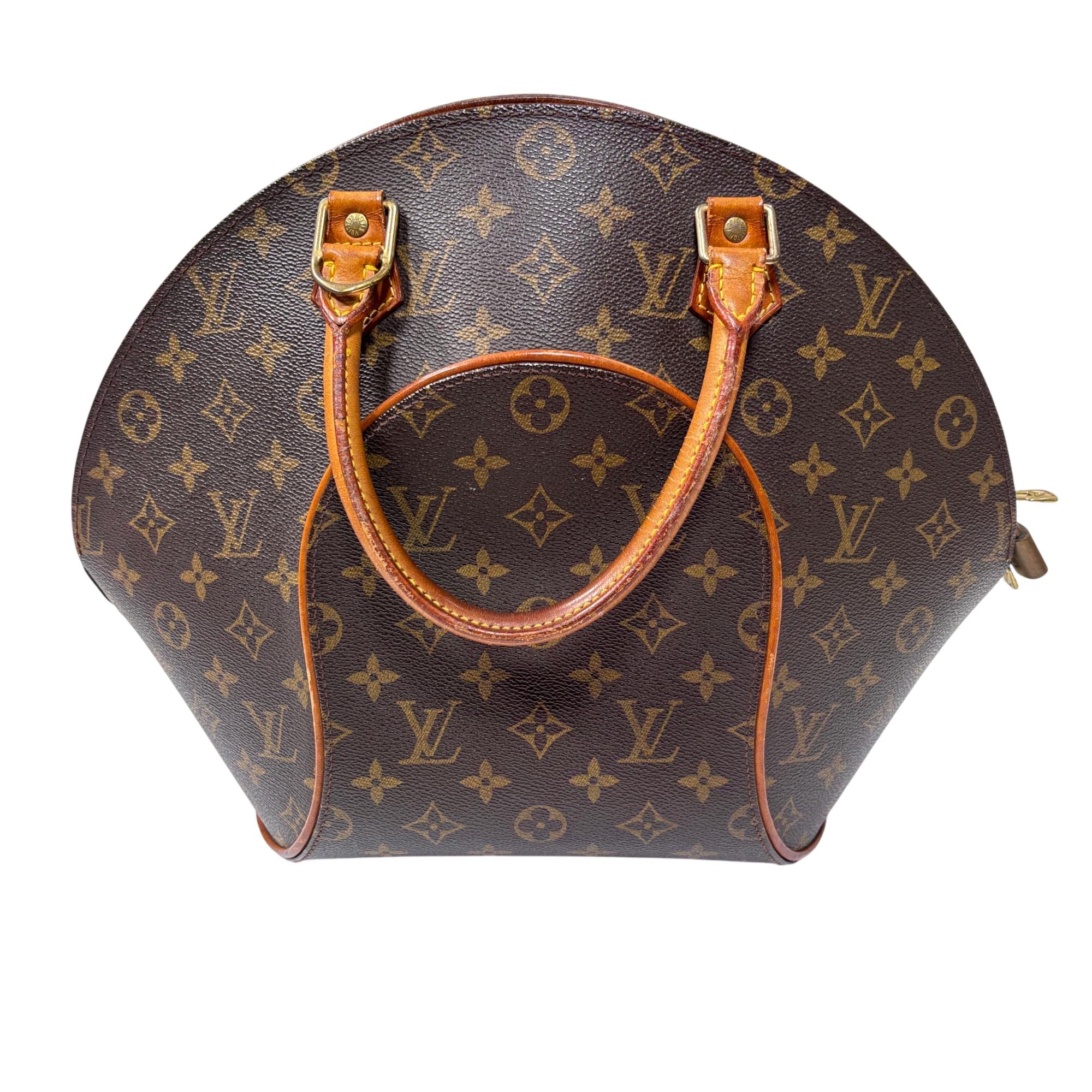 Louis Vuitton Ellipse MM Monogram Canvas Handbag M51126 showcases a distinctive curved silhouette crafted from iconic monogram canvas with natural cowhide leather trim. This stylish shoulder bag features a secure metal lock and durable leather straps, combining luxury design with practical function. Made in France, it is a sophisticated accessory suited for both everyday use and special occasions.