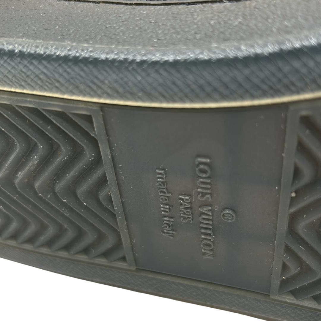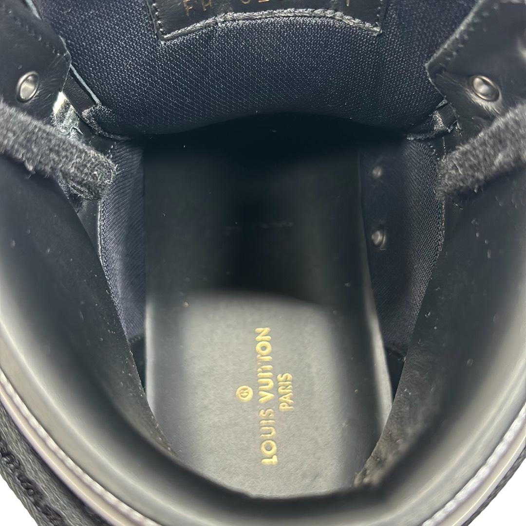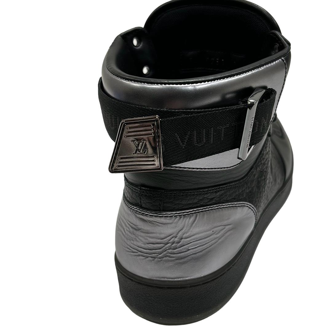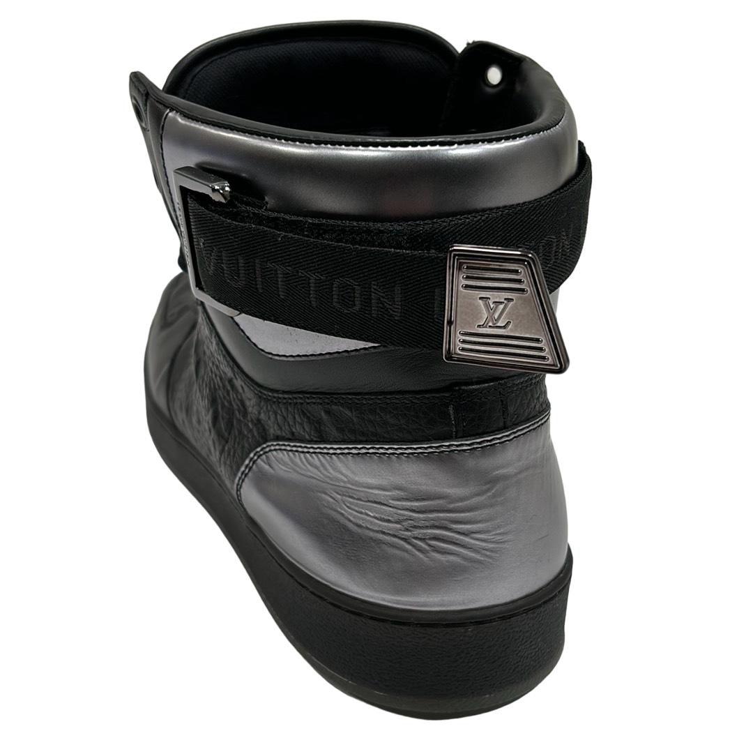 Indulge in luxury with the Louis Vuitton FA0231 Hi Top Rivoli Sneakers, a stunning blend of style and sophistication in black and silver. Crafted in Italy, these sneakers showcase the iconic Louis Vuitton logo, making them an emblem of elegance. Perfect for those who appreciate high fashion, these shoes come with their original box to complete your premium purchase.